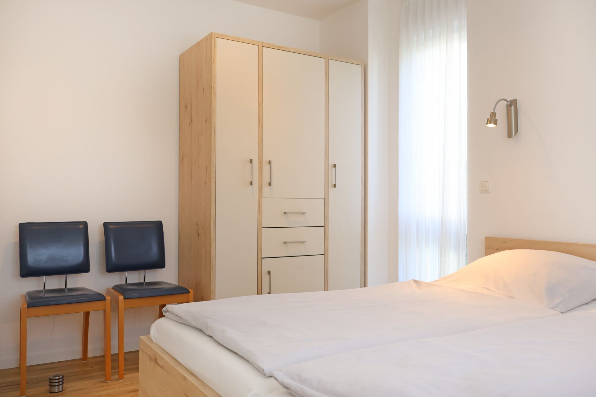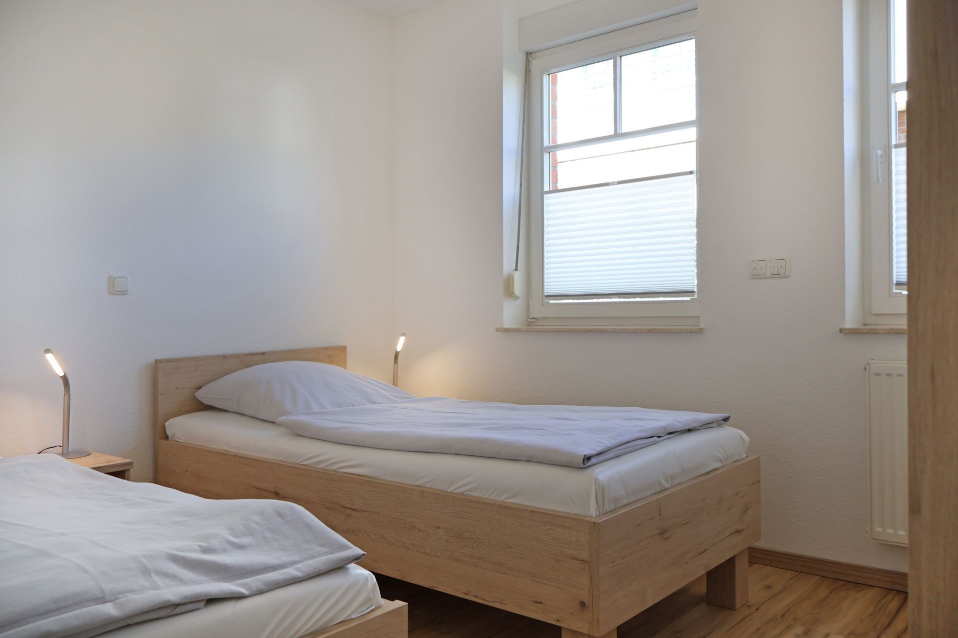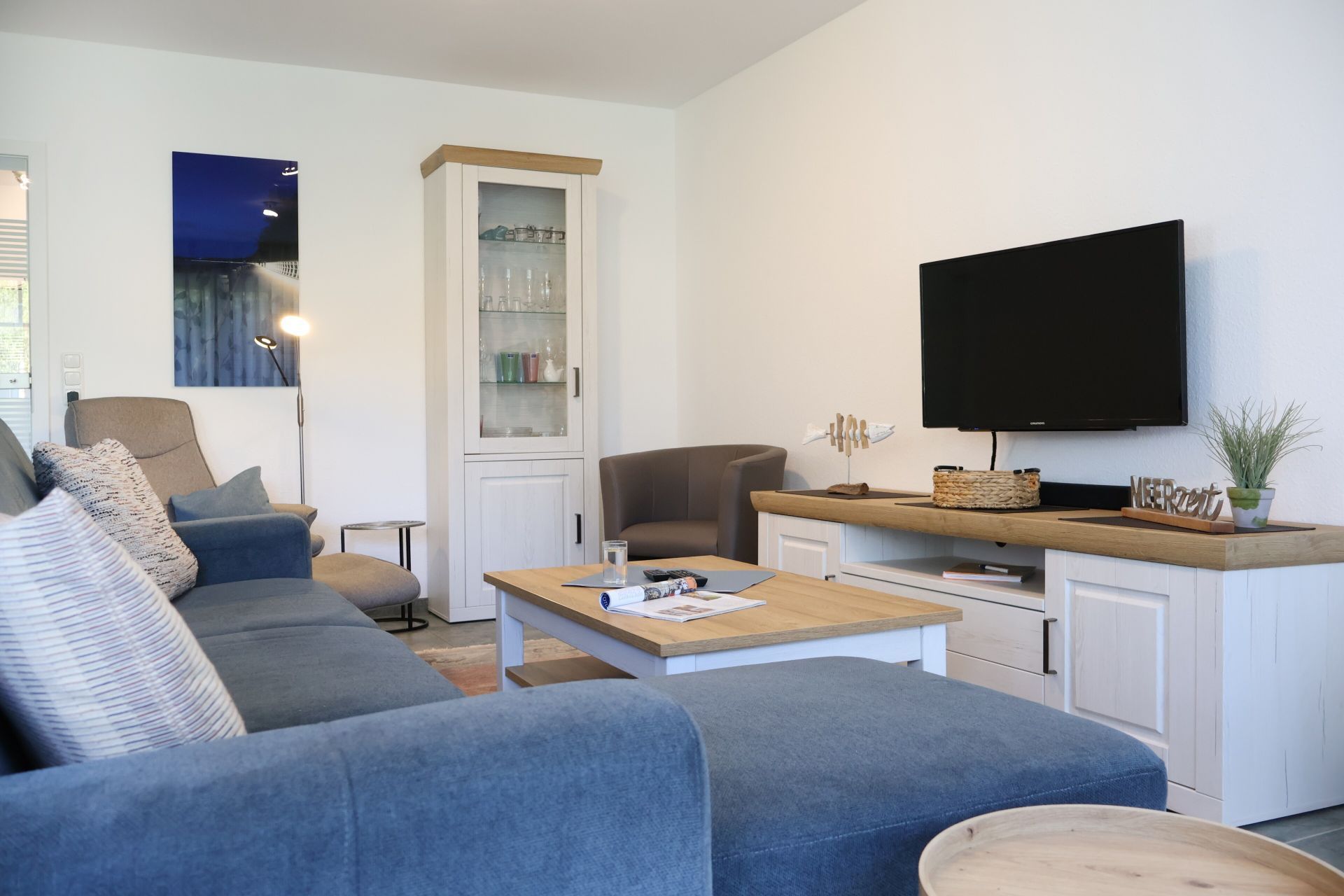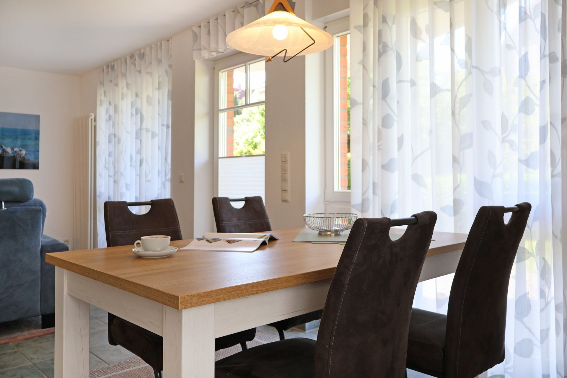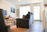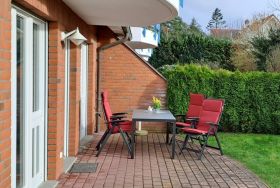 Nur 100 Meter zum feinsandigen Strand mit sehr guten Bademöglichkeiten befindet sich die 3- Zimmer Nichtraucher- Ferienwohnung 1 in der Residenz am Teich. Die zentrumsnahe, in einer Anliegerstraße liegende Wohnung, bietet mit einer schönen Terrasse Ruhe und Erholung. Auf einer Wohnfläche von 72 qm findet der Gast alles, was zu einem entspannten Aufenthalt gehört. Insbesondere die beiden separaten Schlafzimmer ? eines mit Doppelbett, das weitere mit zwei Einzelbetten- bieten bis zu 4 Personen erholsamen Schlaf. Der großzügige Wohnbereich beinhaltet eine offene, komplett ausgestattete Küchenzeile mit Geschirrspüler, Herd mit Ceranfeld, Dunstabzugshaube, Kühlschrank mit Gefrierfach, Kaffeemaschine, Toaster, Mikrowelle sowie ausreichend Geschirr und Töpfe. Die Mahlzeiten können bequem am großen Esstisch eingenommen werden. Der gemütliche Wohnbereich mit Zugang auf die Terrasse ist mit einem Sofa, zwei Sesseln sowie einer Regalwand eingerichtet. Selbstverständlich sind auch Fernsehgerät und Musikanlage vorhanden. Ein Duschbad ist vorhanden. Im Ferienhaus befinden sich Fahrradkeller, Wasch- und Trockenraum. Waschmaschinennutzung gegen Gebühr.