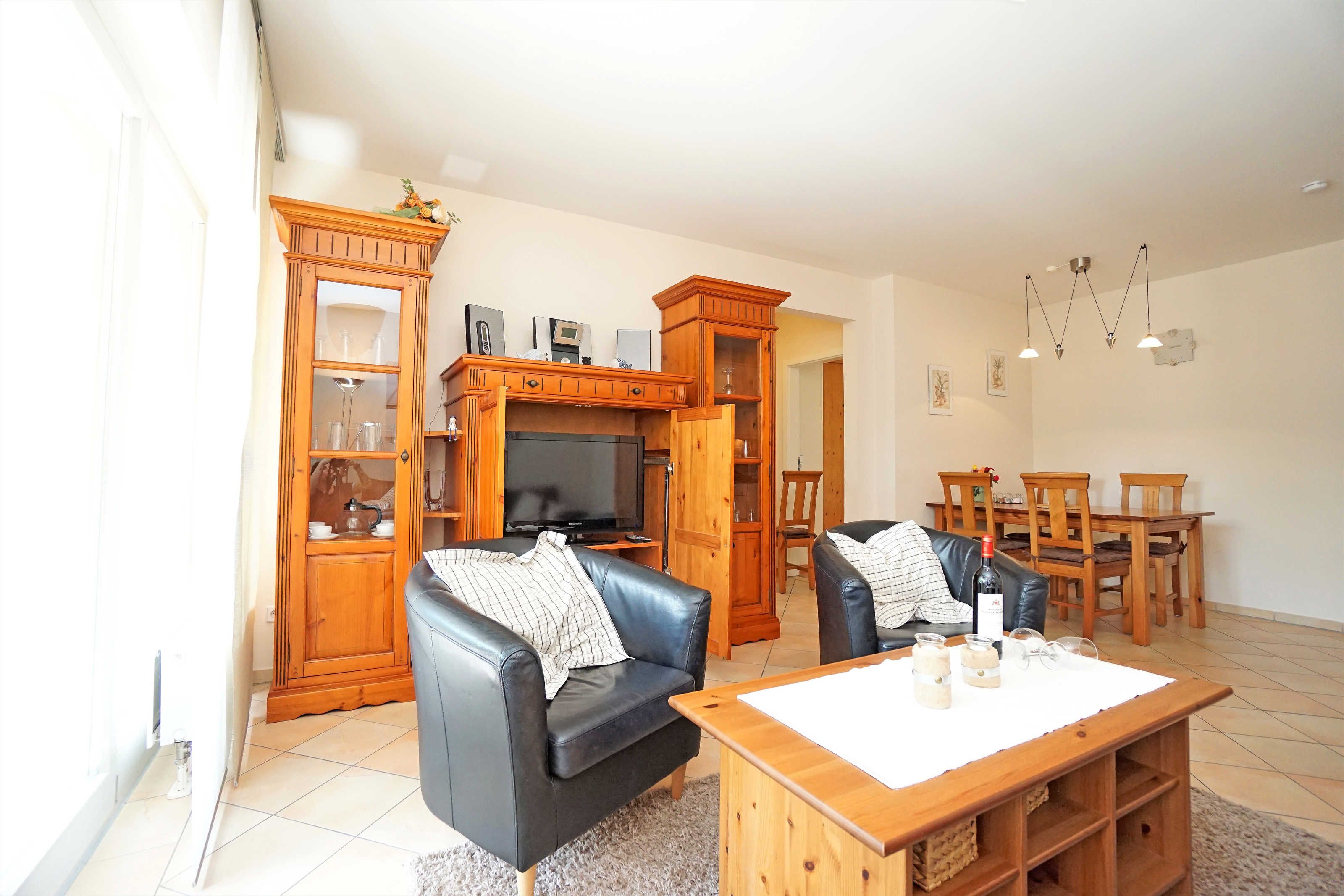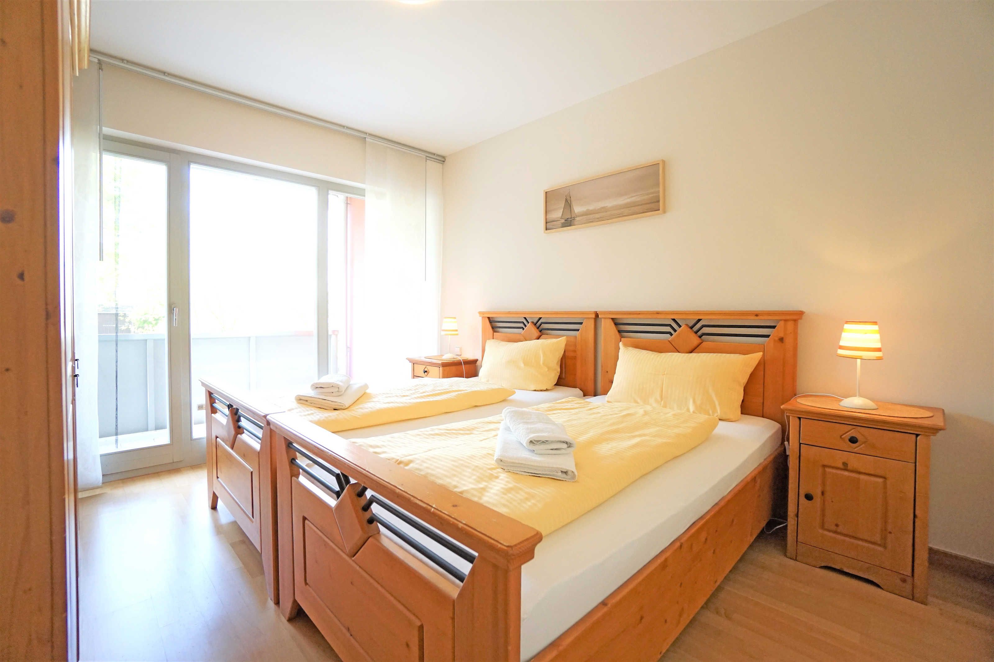 Die hochwertig eingerichtete 3-Zimmer Ferienwohnung (65m²) befindet sich im Hochparterre des Hauses Villa Marlen. Das geräumige Wohnzimmer mit offener, vollausgestatteter Küchenzeile, großem Esstisch und gemütlicher Couch lässt keine Wünsche offen. Vom Wohnzimmer aus erreicht man den großen Balkon mit einer Treppe zum Grundstück. Zwei Schlafzimmer mit jeweils einem großen Doppelbett (180x200) und einem großen Kleiderschrank bieten genug Platz für bis zu 4 Personen. Eines der beiden Schlafzimmer ist mit einem Flachbildfernseher (im Schrank) ausgestattet und das zweite Schlafzimmer hat einen eigenen Balkon. Unter anderem verfügt diese Ferienwohnung über ein Duschbad und einem weiteren Badezimmer mit Badewanne.