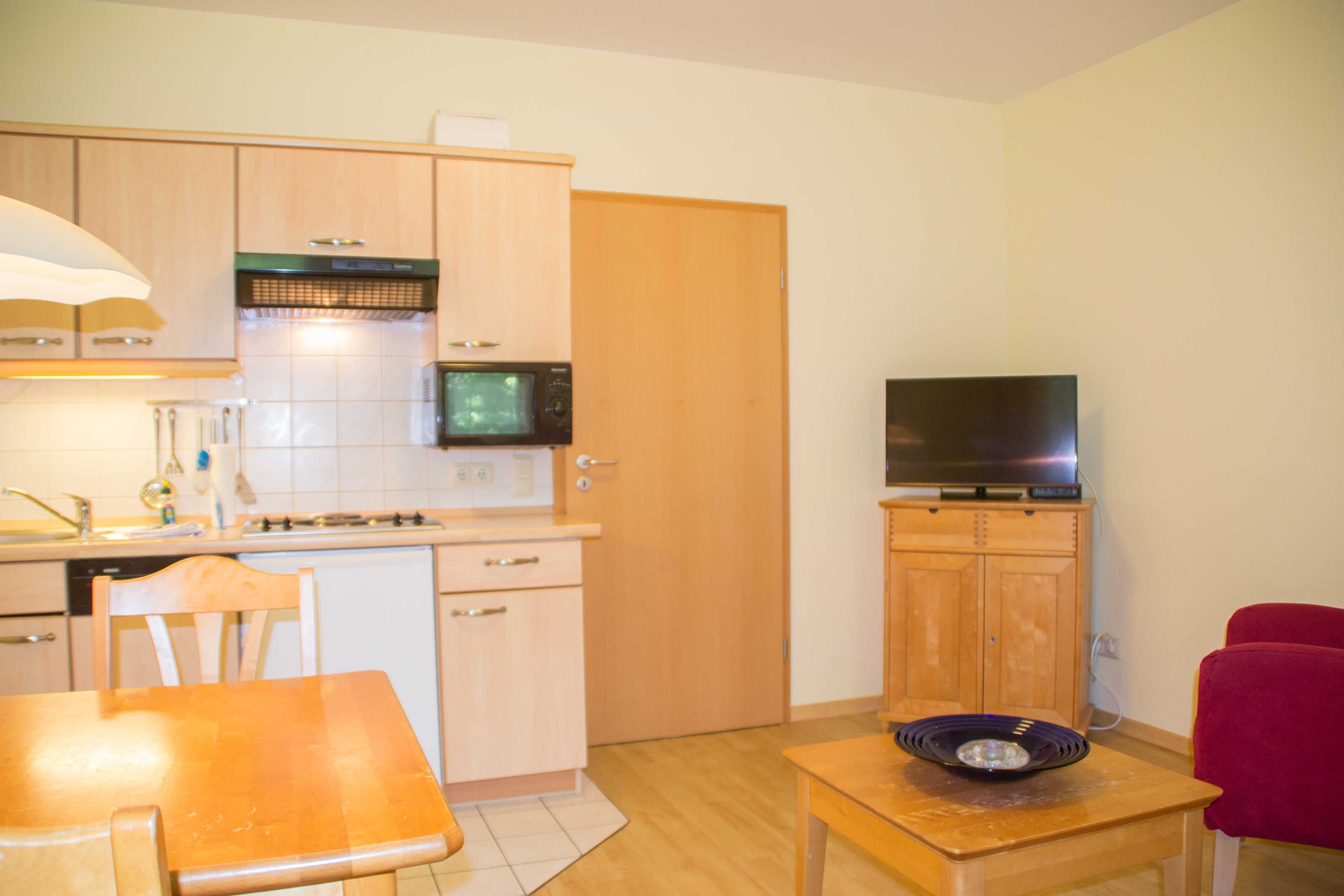 Diese Liebevoll eingerichtete Ferienwohnung für 2 Pers.,Terrasse, Wohnzimmer mit integrieter Küche, Bad und Schlafzimmer mit TV. auf ca. 42 m².