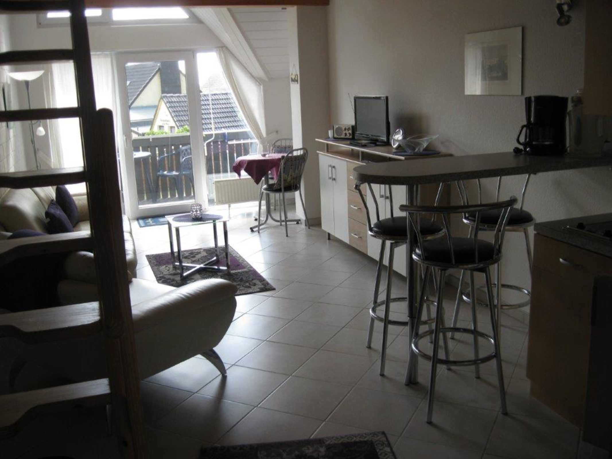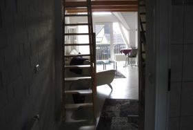 1-Zimmer-Appartment über 2 Ebenen mit Balkon, ca. 45m², Bad mit Dusche und WC, voll ausgestattete Küche, hochwertige und moderne Möblierung, Schlafraum mit einem Doppelbett. Aufbettung möglich. PKW-Stellplatz, Grill, Herd mit Ceranfeld, Mikrowelle, Kühlschrank mit Gefrierfach, Kaffeemaschine, Wasserkocher, Toaster, Geschirr komplett für 4 Personen. Waschen auf Anfrage. Radio, Kabel-TV, W-LAN kostenlos