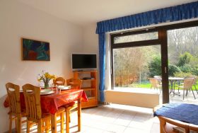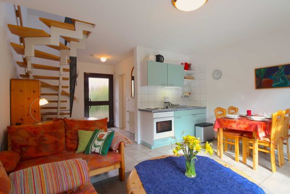 Im Ferienhaus des Vermieters befinden sich zwei identisch eingerichtete Ferienwohnungen. Diese haben jeweils eine Größe von ca. 50 qm. Im Erdgeschoss der Wohnung befindet sich jeweils ein Bad mit Dusche/WC, ein großer heller Wohnraum mit komplett ausgestatteter Küchenzeile, einem Essplatz und gemütlicher Sitzecke. Ein Kinderhochstuhl, Fußbodenheizung, Flachbild-TV mit Satellitenempfang und ein kostenloser Internetzugang (DSL) runden die Ausstattung ab.