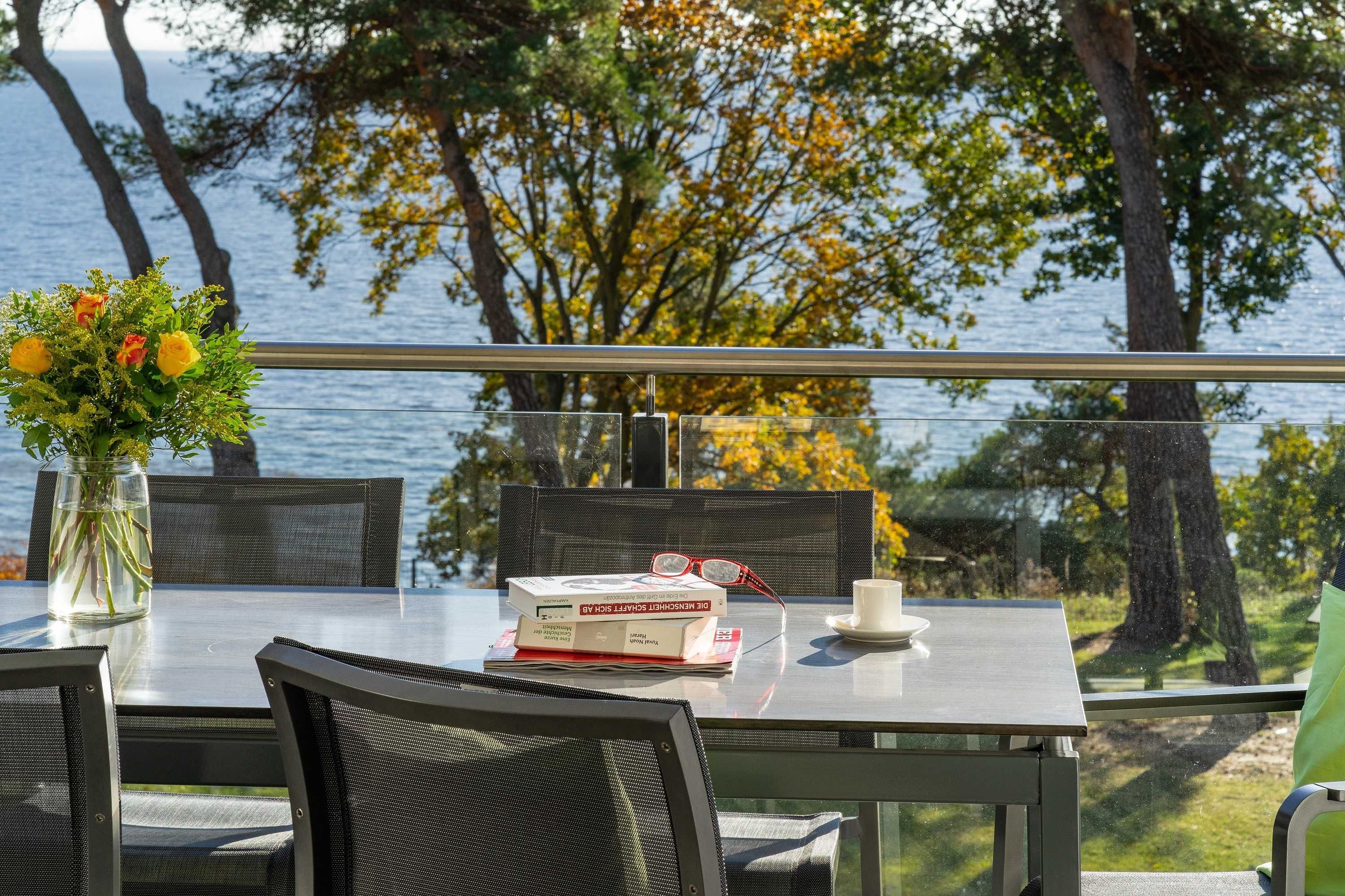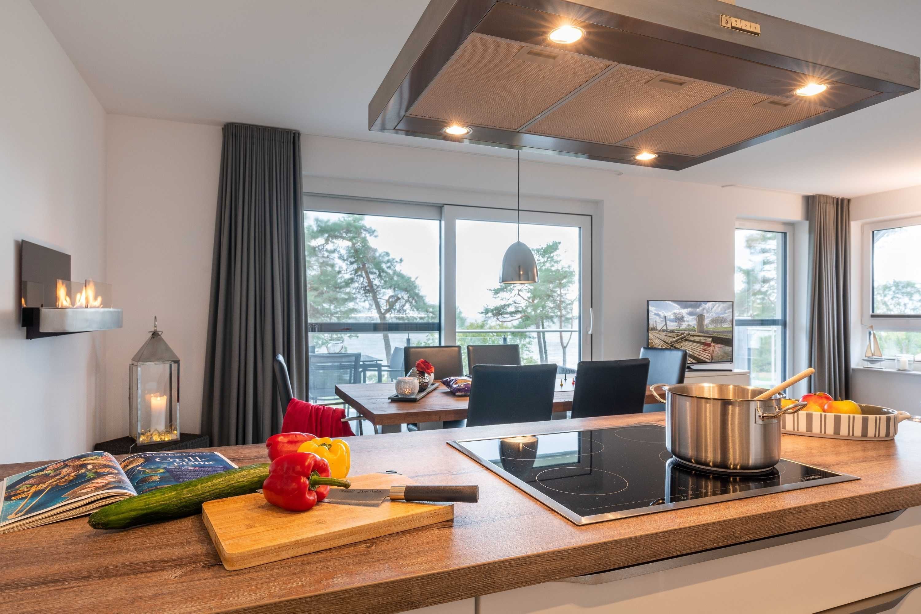 Alle Terrassenwohnungen und Appartements sind in hochwertiger Ausstattung eingerichtet. Von großen Rasenflächen und ebenen Gehwegen umgeben, stehen unsere sieben Ferienhäuser auf die Haffküste ausgerichtet auf einer weitflächigen Außenanlage zueinander. Unsere Haffterrassen laden mit Sitzgelegenheiten an der Steilküste zum Entspannen ein.