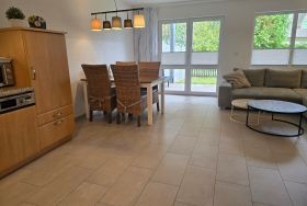 Das Ferienhaus, in welchem sich diese 2-Raum-Erdgeschoss-Wohnung mit einem Schlafzimmern befindet, liegt in der Dünenresidenz mit nur 150 Metern im sehr nahen Strandbereich.