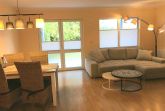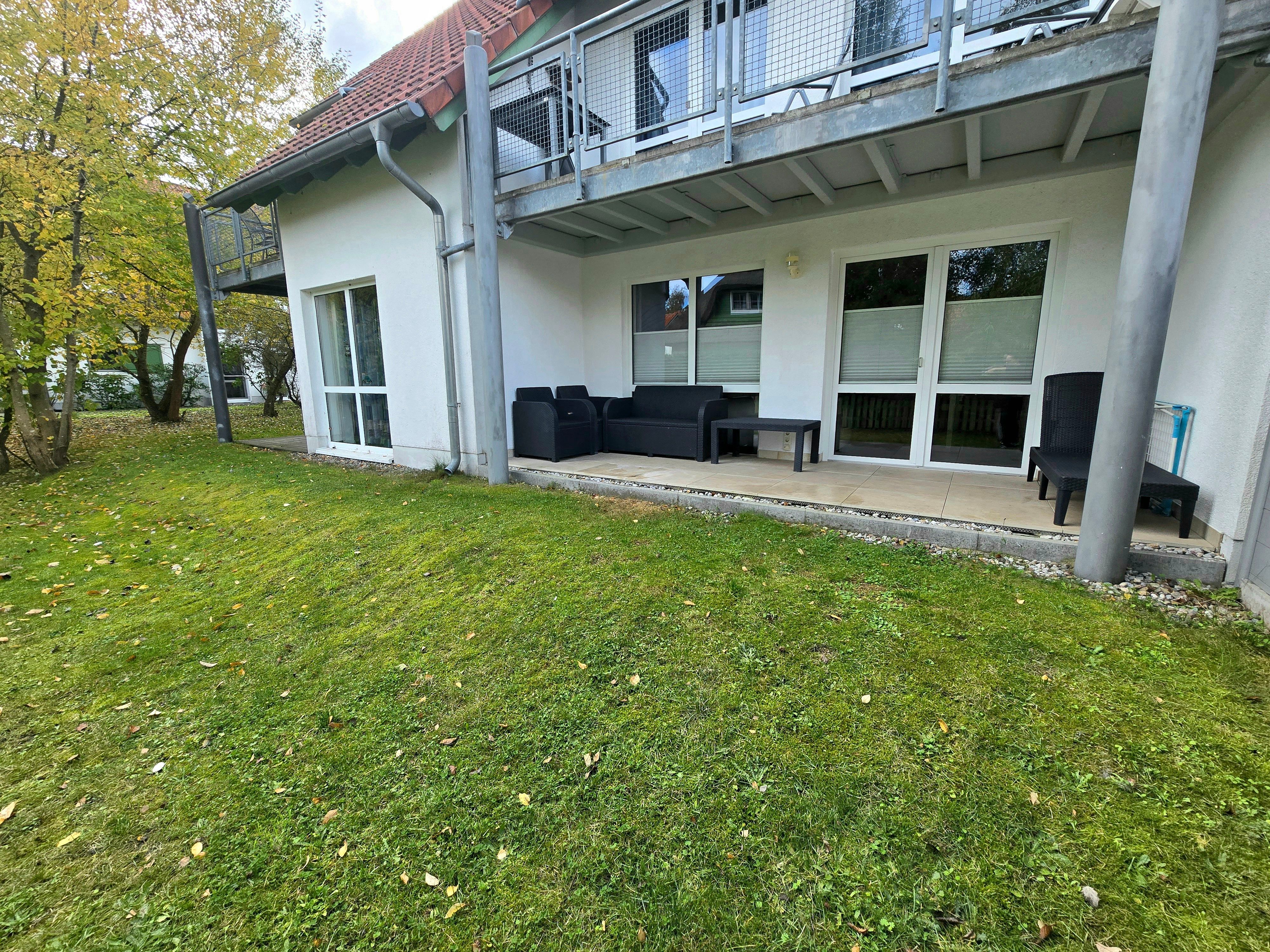 Das Apartment Strandgold verfügt über eine schöne - überdachte - Terrasse mit Sitzmöbeln, auf welcher Sie gemütlich frühstücken oder grillen können. Ein kleiner Gartenbereich, mit Hecken als Sichtschutz, schließt sich der Terrasse direkt an und darf von den Gästen genutzt werden.
