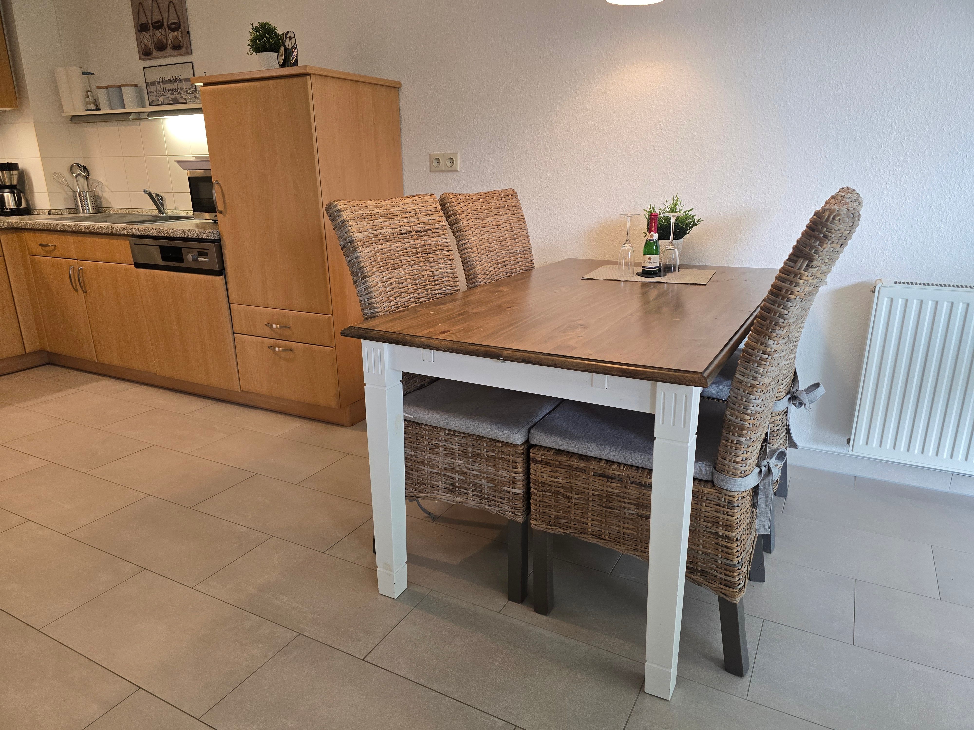 Die Wohnung empfehlen wir für 2 Erwachsene plus 1 Baby. Sie verfügt zusätzlich über eine Schlafcouch (Liegefläche: 150 x 200 cm) wodurch die Belegung um 1-2 Personen, gegen Gebühr aufgestockt werden kann. Zu der Wohnung gehört ein kostenfreier Parkplatz direkt vor dem Haus.
