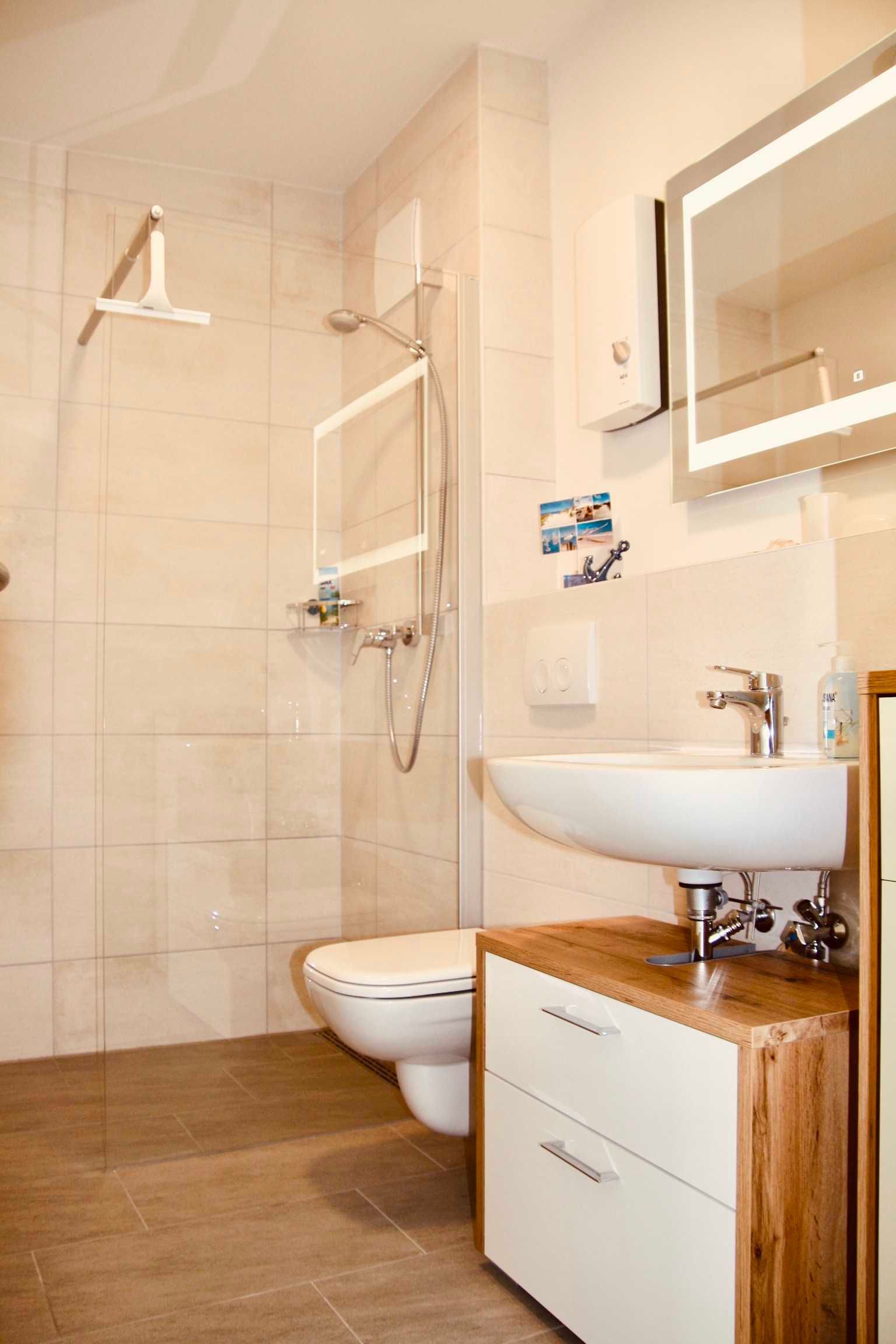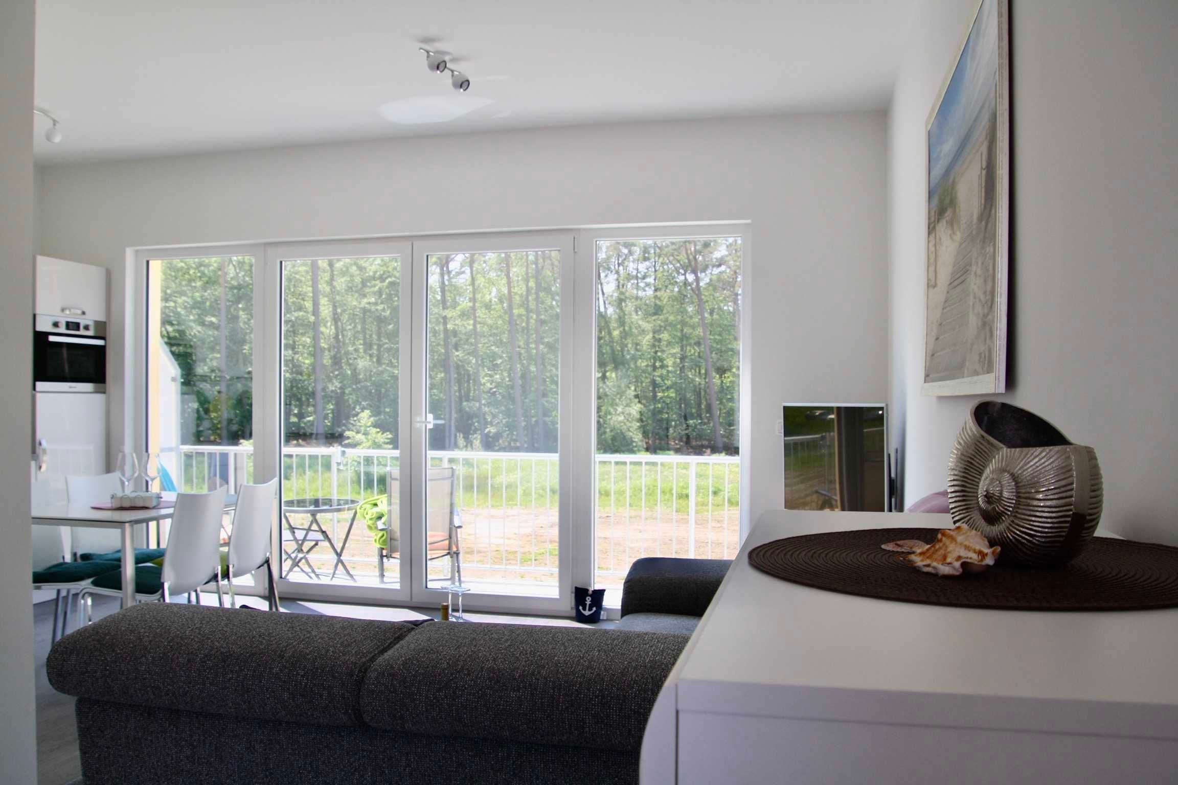 Ankommen, abschalten und genießen - dort wo sich Meer und Wald begegnen. Freuen Sie sich auf unsere, für Sie neu eingerichtete, moderne und hochwertige Nichtraucher-Ferienwohnung. Die Wohnung befindet sich im 1.OG mit herrlichem Waldblick und ist über eine separate Außentreppe erreichbar. Das Bad, mit begehbarer Dusche, verfügt über Fußbodenheizung und Handtuchwärmekörper. Die Küche ist eingerichtet mit vollwertiger Spülmaschine, Induktionsherd und Backofen-/Mikrowelle.