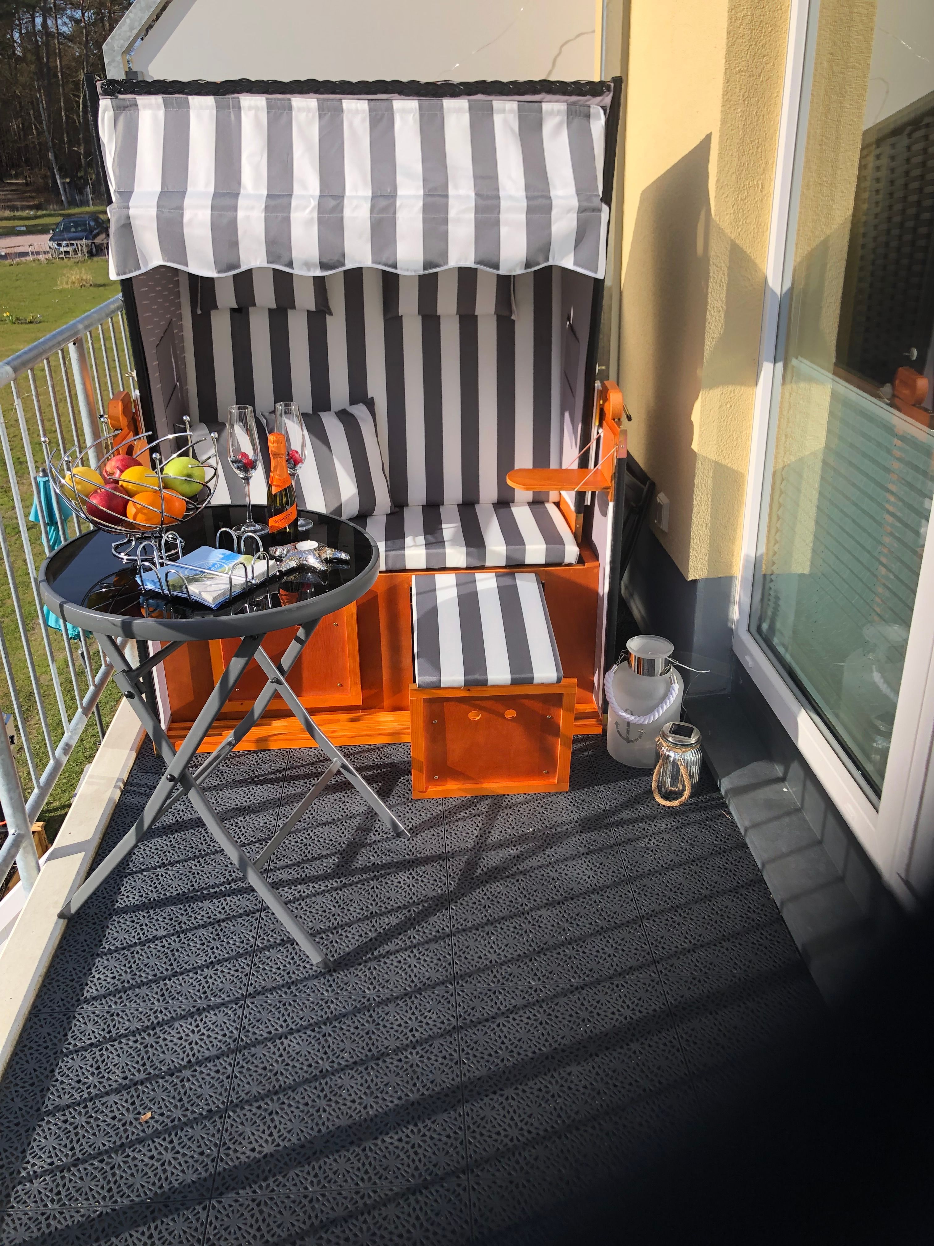 • Den Balkon haben wir für Sie mit einem Strandkorb ausgestattet.