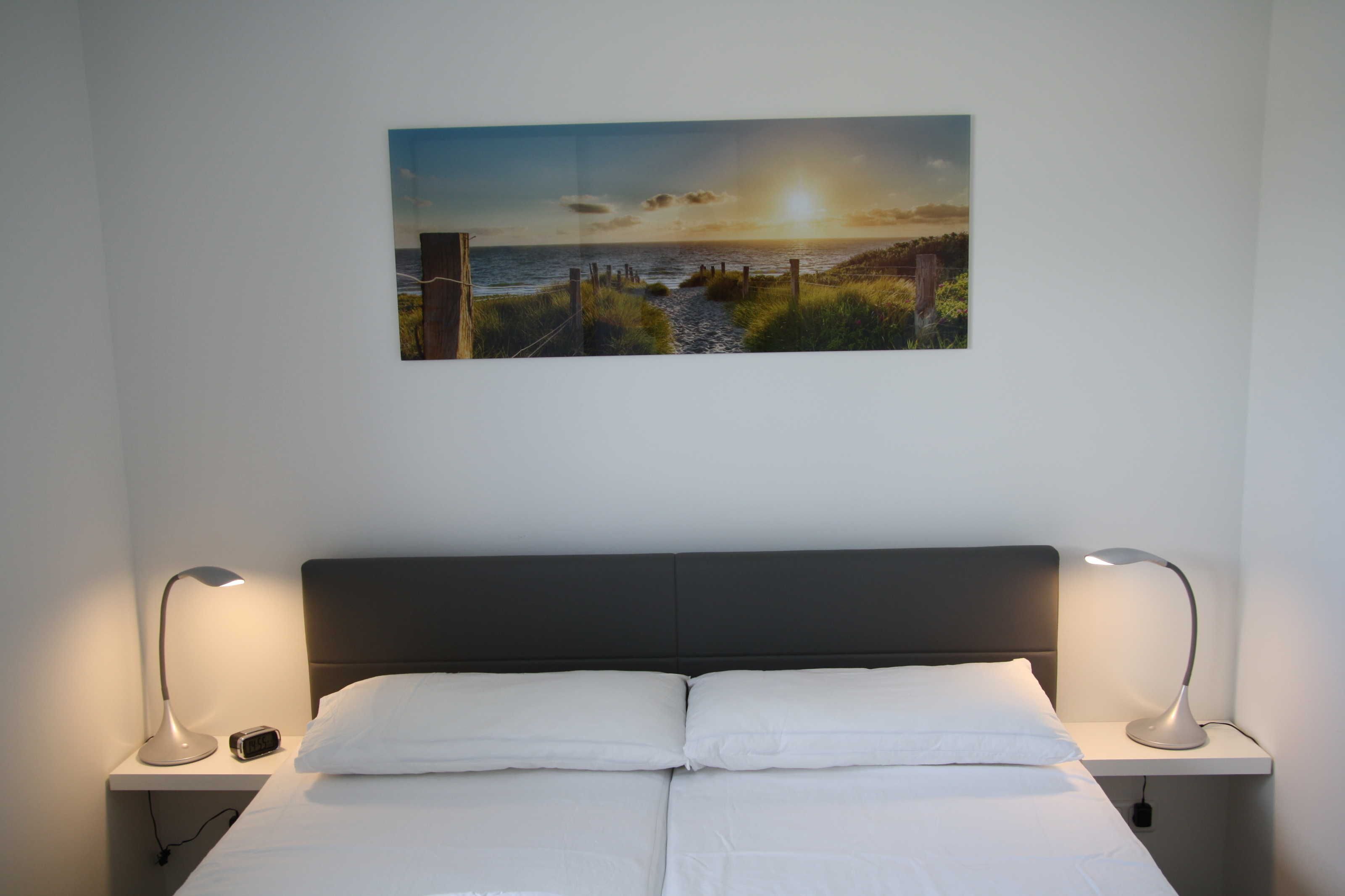 • In der Wohnung haben wir den Schlafraum mit einem 160 x 200 cm Doppelbett mit 2 hochwertigen, allergikerfreundlichen Matratzen, 2 Bettdecken (135x200 cm) und Kopfkissen ausgestattet. Ein Wäschepaket mit Bettzeug, Handtuch, Duschtuch, Geschirrtuch und Duschmatte kann zugebucht werden.