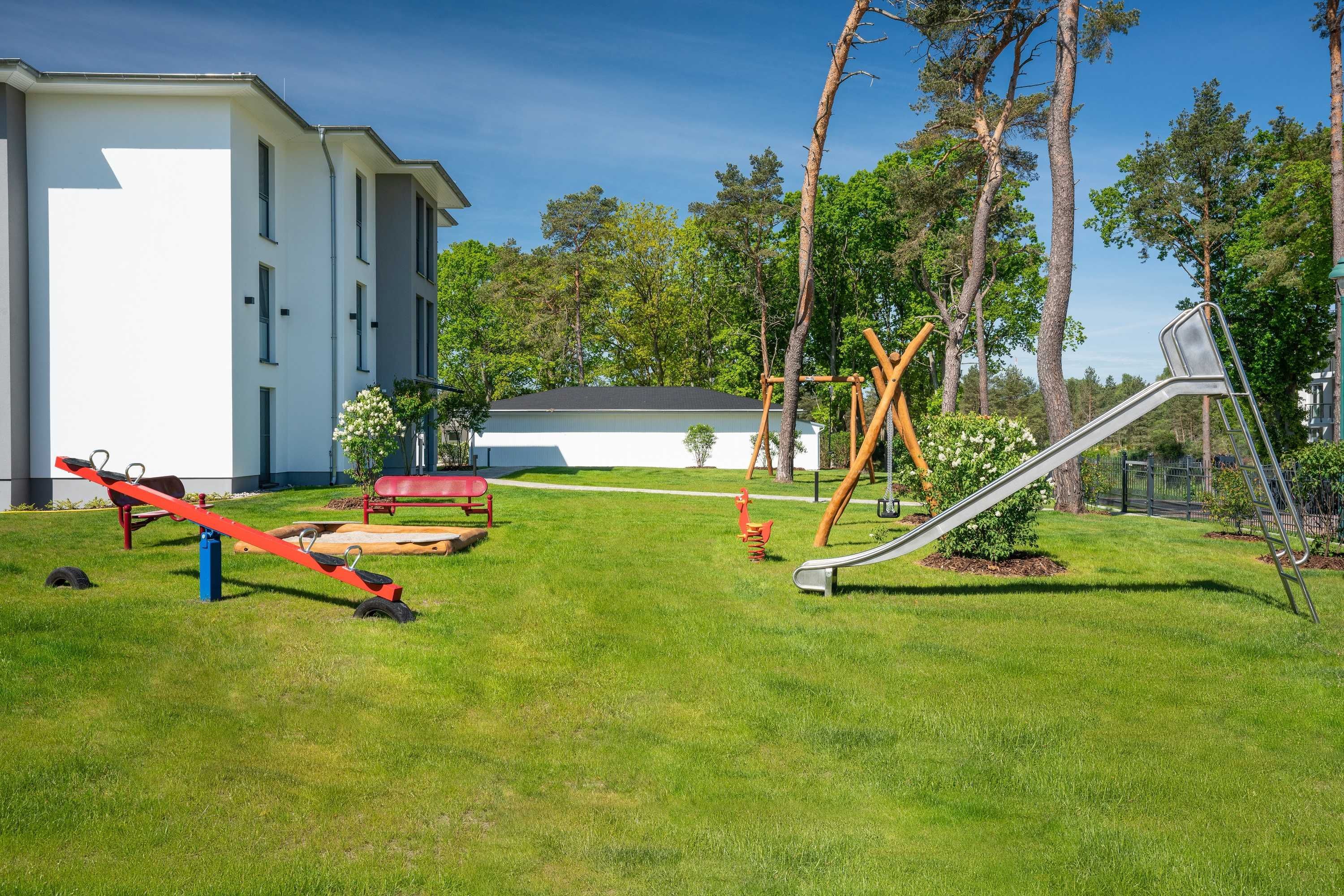 Auf mehreren Außenspielplätzen mit Kletterturm, Seilbahn und Spielgeräten können sich Ihre Kinder austoben. Außerhalb der Ferienanlage gibt es einen Bolzplatz und in den Souterrainbereichen unserer Häuser einen kindgerecht ausgestatteten Innenspielraum.