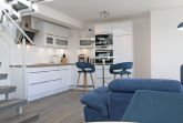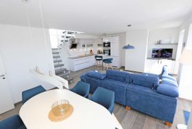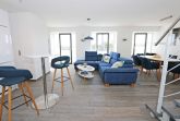 Ihr Strandapartment 5.3 befindet sich im sanierten, denkmalgeschützten Koloss von Rügen hoch oben mit großer Dachterrasse (23 m²). Die mit dem Fahrstuhl erreichbare Wohnung liegt nur wenige Schritte, getrennt durch Strandkiefern und sanften Dünen, vom wohl schönsten Strand Rügens entfernt. Der feinsandige, breite Strand lockt zu ausgiebigen Spaziergängen und Aktivitäten im wohltuenden Meeresrauschen ein. Ihr Urlaubsort Prora liegt ca. 3 km entfernt von Binz, dem lebhaften Urlaubsmagneten von Rügen mit seiner bekannten Bäderarchitektur. Lassen Sie sich faszinieren von der Sie umschließende Natur Rügens, mit den malerischen Kreidefelsen und satten Wäldern. Das im Erdgeschoss gelegene kleine Café mit Bäckerei sorgt für Ihr weiteres Wohl. In der Nähe sind Restaurants, Bars und Pizzerien. Erholung und Entspannung finden Sie in Ihrer wohnungseigenen Sauna und beim grandiosen Weitblick von 2 Balkonen sowie der mit Strandkorb ausgestatteten privaten Dachterrasse. Das wird Ihren Urlaub unvergesslich machen.