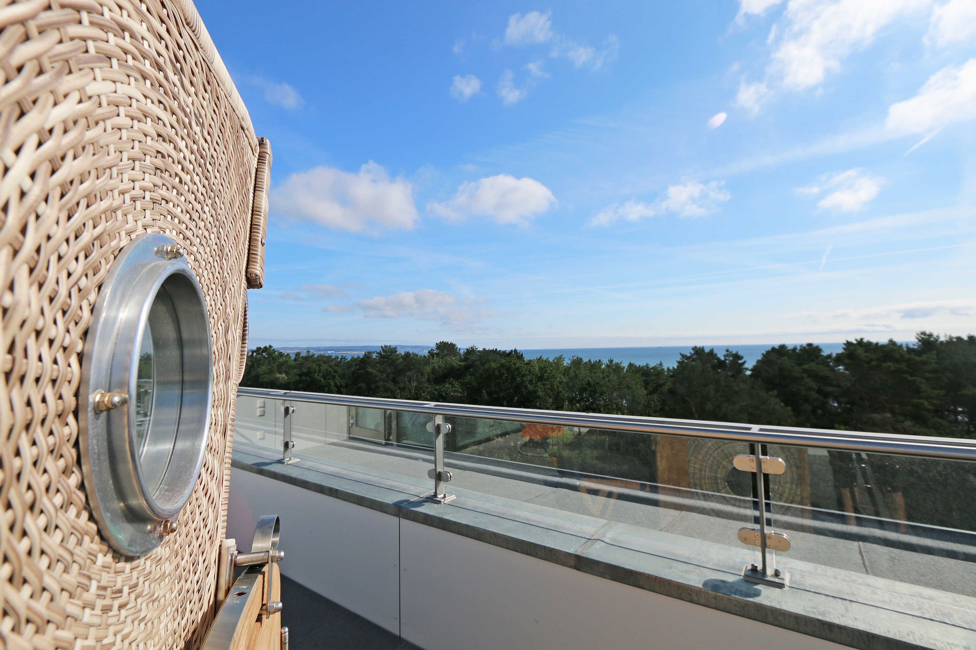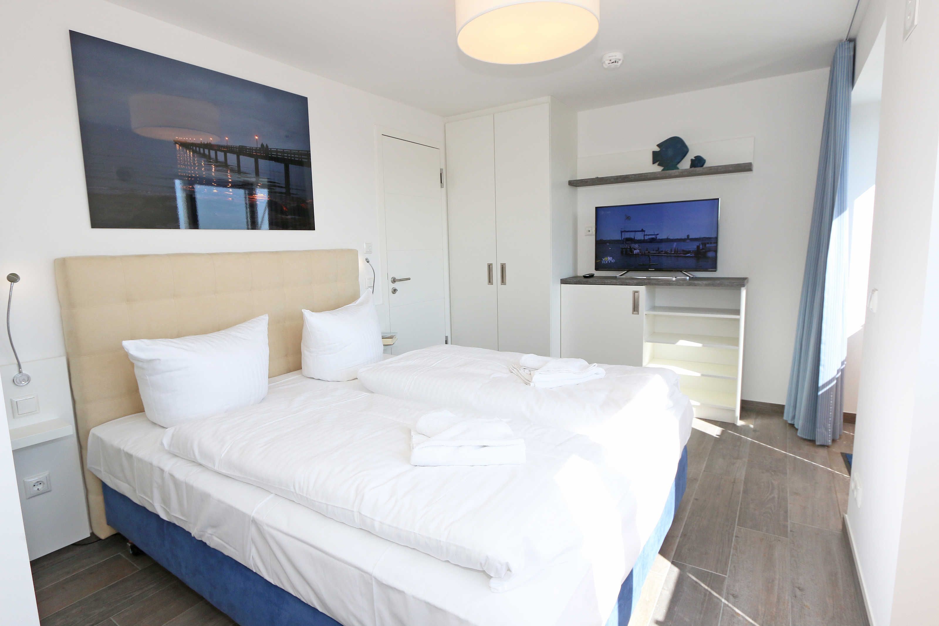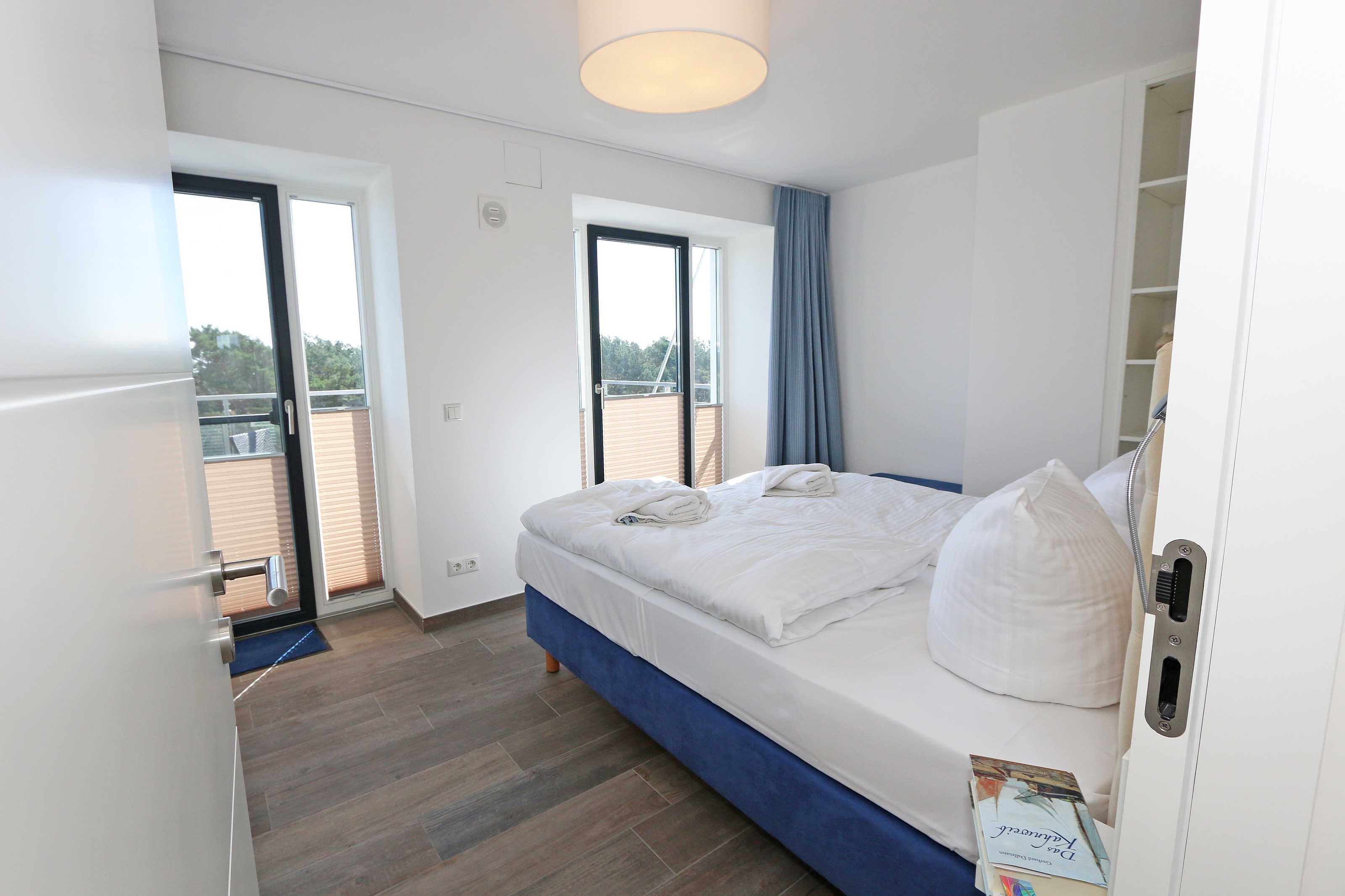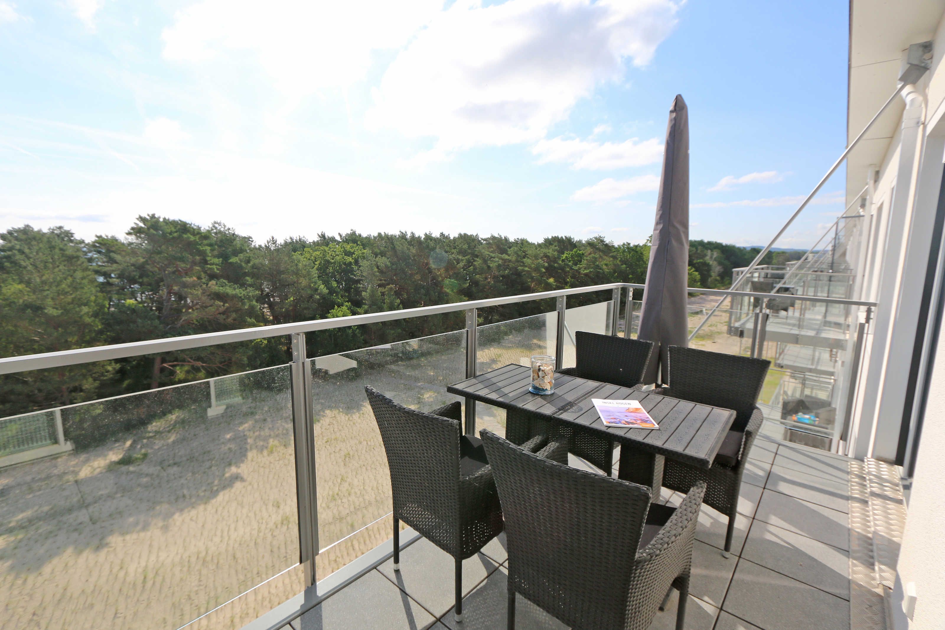 Die ca. 100 m² große 3-Raumferienwohnung (Nichtraucher) bietet Ihnen durch ihre erstklassige, stilsichere Ausstattung mit 2 Balkonen (Seeseite) und einer Dachterrasse beste Voraussetzungen für einen unvergesslichen Urlaub. Der Aufgang „Haus Granitz“ verfügt über einen Fahrstuhl, mit welchem Sie bequem in die Ferienwohnung gelangen. Dank einer gelungenen Raumaufteilung bietet die Wohnung Platz für max. 4 Erwachsene und 2 Kleinkinder bis 3 Jahre im Kinderreisebett. Im großzügigen Wohn-/Essbereich können Sie durch die komfortable Eck-Couch mit Couchtisch, Sideboard, Stehlampe und großem Essplatz gemütliche Tage verbringen. Drei Smart-TVs, Blu-ray Player und eine Mini-Stereo-Anlage mit Bluetooth und USB-Anschluss sowie das in der Wohnung kostenlos zur Verfügung gestellte W-LAN sorgen für Ihre Unterhaltung. Vom Wohnbereich führt Sie eine Treppe auf die große möblierte Dachterrasse mit zusätzlichem Strandkorb, von welcher Sie einen 360° Blick über die eindrucksvolle Landschaft genießen können. Ein Schlafzimmer und der Wohn/Essbereich bieten Zugang zu den bestuhlten Balkonen (Osten) mit einmaligem Blick auf die Ostsee. Die moderne Küchenzeile, welche dem Wohnbereich anpasst bietet Ihnen ein 4-Zonen-Cerankochfeld, Backofen, Spülmaschine, Kühlschrank mit separaten Gefrierfach, Kaffeemaschine, Nespresso Kaffeemaschine, Toaster, Wasserkocher, Mixer sowie diverse Küchenutensilien und lädt so zu gemütlichen Kochabenden ein. Die Schlafzimmer sind mit Boxspringbetten (Doppelbett 1,60m x 2,00m und zwei Betten 0,90m x 2,00m), Nachttischablagen mit Beleuchtung und USB- Anschlüssen sowie Kleiderschränken für Ihre Urlaubsgarderobe ausgestattet. Verdunklungsmöglichkeiten durch Vorhänge sowie Plissees und Insektenschutz erlauben einen geruhsamen Schlaf. Beide Schlafzimmer verfügen über je ein Smart-TV. Beide Bäder sind jeweils mit WC, ebenerdigen Duschen, Kosmetikspiegel, Fön, Handtuchtrockner sowie einem Waschplatz mit großzügigen Spiegeln und Ablageflächen eingerichtet. Das erste Badezimmer lockt zusätzlich mit einer Sauna zur Entspannung ein. Ein Bidet rundet das Erscheinungsbild ab. Im wohnungsinternen Abstellraum finden Sie auch Waschmaschine, Staubsauger und Wäscheständer sowie Bügelbrett mit Bügeleisen. Haustiere, ein kleinerer Hund ist gegen eine Gebühr, gestattet. Ein Stellplatz für Ihren PKW ist auf den gegenüberliegenden Parkplätzen für Sie reserviert. Ihre mitgebrachten Fahrräder können Sie in einem Gemeinschaftsabstellraum unterstellen. Die Erstausstattung eines Wäschepaketes (komplette Bettwäsche, 1 Duschhandtuch, 1 kleines Handtuch) können Sie bis 14 Tage vor Anreise gegen einen Aufpreis dazu buchen oder durch eigene ergänzen. Ab 2 gebuchten Paketen erhalten Sie einmalig 1 Geschirrhandtuch und 1 Duschvorleger hinzu.