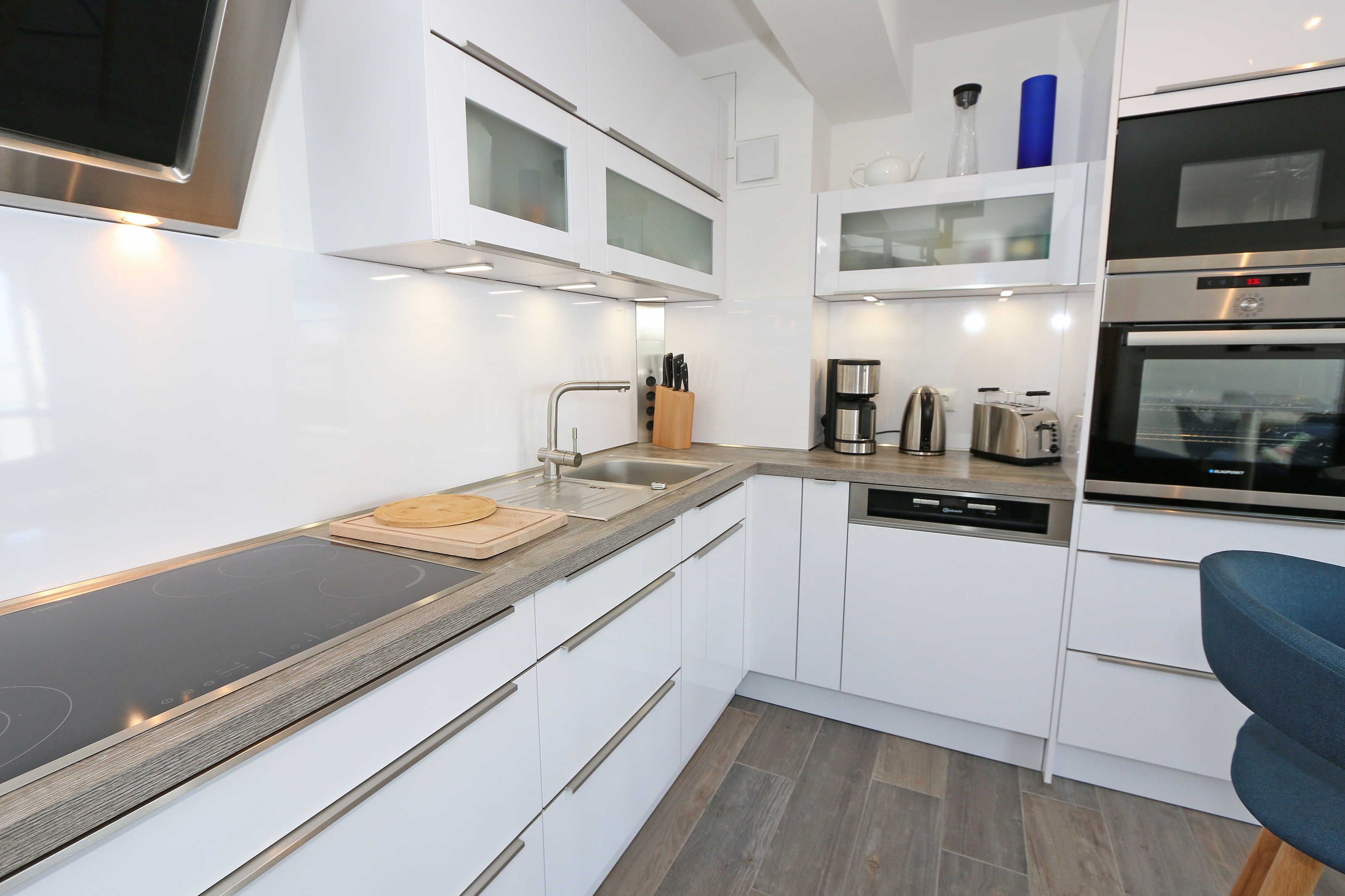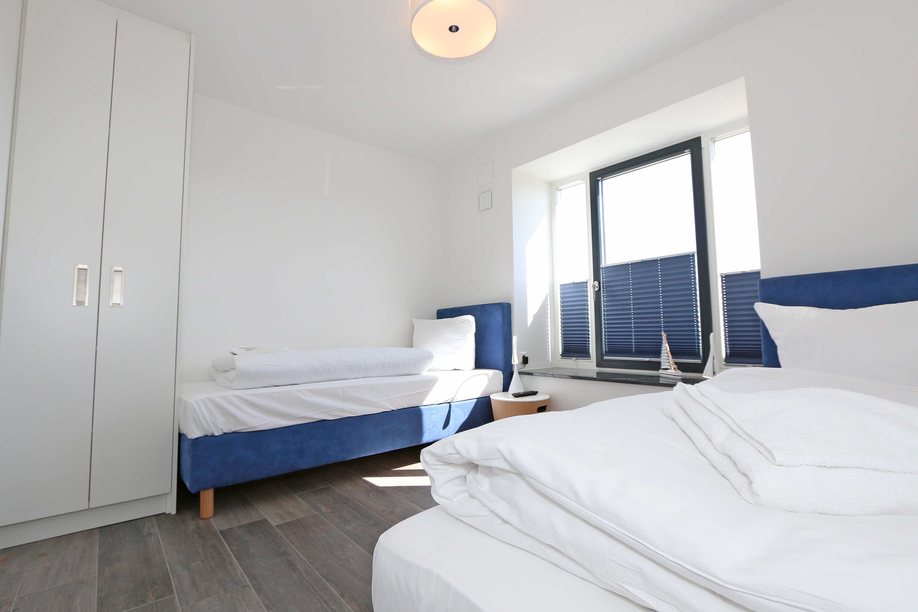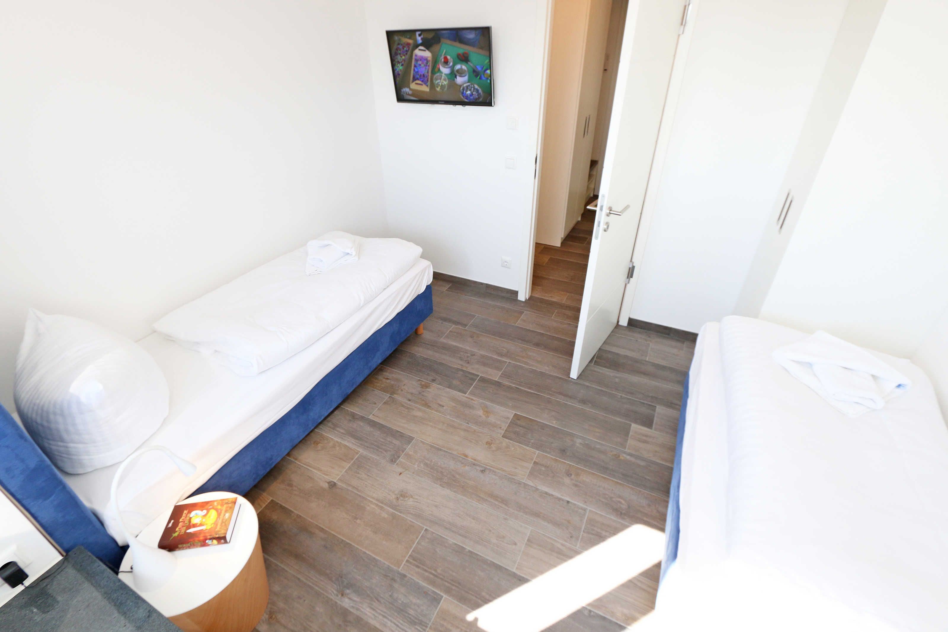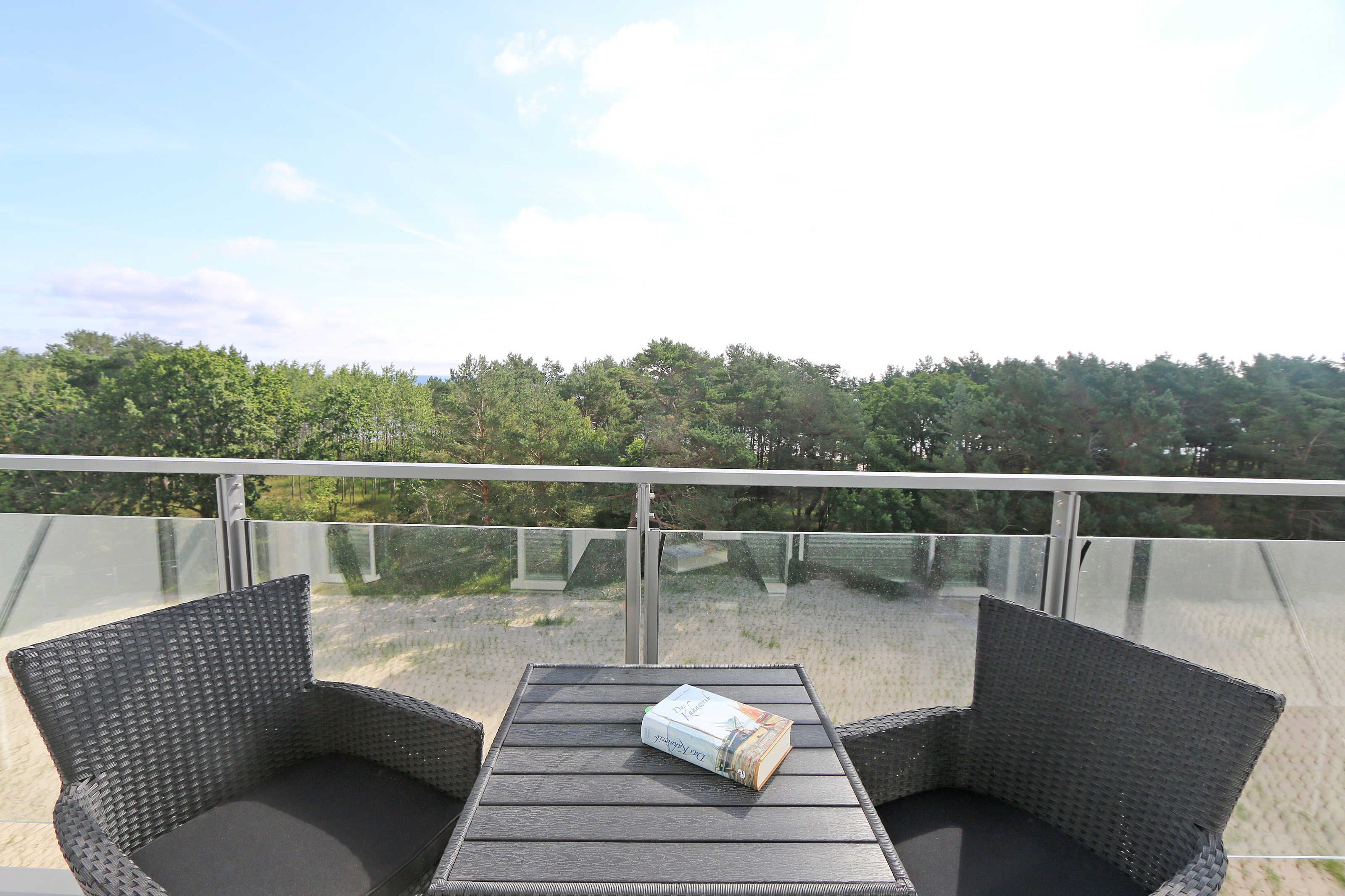 Die ca. 100 m² große 3-Raumferienwohnung (Nichtraucher) bietet Ihnen durch ihre erstklassige, stilsichere Ausstattung mit 2 Balkonen (Seeseite) und einer Dachterrasse beste Voraussetzungen für einen unvergesslichen Urlaub. Der Aufgang „Haus Granitz“ verfügt über einen Fahrstuhl, mit welchem Sie bequem in die Ferienwohnung gelangen. Dank einer gelungenen Raumaufteilung bietet die Wohnung Platz für max. 4 Erwachsene und 2 Kleinkinder bis 3 Jahre im Kinderreisebett. Im großzügigen Wohn-/Essbereich können Sie durch die komfortable Eck-Couch mit Couchtisch, Sideboard, Stehlampe und großem Essplatz gemütliche Tage verbringen. Drei Smart-TVs, Blu-ray Player und eine Mini-Stereo-Anlage mit Bluetooth und USB-Anschluss sowie das in der Wohnung kostenlos zur Verfügung gestellte W-LAN sorgen für Ihre Unterhaltung. Vom Wohnbereich führt Sie eine Treppe auf die große möblierte Dachterrasse mit zusätzlichem Strandkorb, von welcher Sie einen 360° Blick über die eindrucksvolle Landschaft genießen können. Ein Schlafzimmer und der Wohn/Essbereich bieten Zugang zu den bestuhlten Balkonen (Osten) mit einmaligem Blick auf die Ostsee. Die moderne Küchenzeile, welche dem Wohnbereich anpasst bietet Ihnen ein 4-Zonen-Cerankochfeld, Backofen, Spülmaschine, Kühlschrank mit separaten Gefrierfach, Kaffeemaschine, Nespresso Kaffeemaschine, Toaster, Wasserkocher, Mixer sowie diverse Küchenutensilien und lädt so zu gemütlichen Kochabenden ein. Die Schlafzimmer sind mit Boxspringbetten (Doppelbett 1,60m x 2,00m und zwei Betten 0,90m x 2,00m), Nachttischablagen mit Beleuchtung und USB- Anschlüssen sowie Kleiderschränken für Ihre Urlaubsgarderobe ausgestattet. Verdunklungsmöglichkeiten durch Vorhänge sowie Plissees und Insektenschutz erlauben einen geruhsamen Schlaf. Beide Schlafzimmer verfügen über je ein Smart-TV. Beide Bäder sind jeweils mit WC, ebenerdigen Duschen, Kosmetikspiegel, Fön, Handtuchtrockner sowie einem Waschplatz mit großzügigen Spiegeln und Ablageflächen eingerichtet. Das erste Badezimmer lockt zusätzlich mit einer Sauna zur Entspannung ein. Ein Bidet rundet das Erscheinungsbild ab. Im wohnungsinternen Abstellraum finden Sie auch Waschmaschine, Staubsauger und Wäscheständer sowie Bügelbrett mit Bügeleisen. Haustiere, ein kleinerer Hund ist gegen eine Gebühr, gestattet. Ein Stellplatz für Ihren PKW ist auf den gegenüberliegenden Parkplätzen für Sie reserviert. Ihre mitgebrachten Fahrräder können Sie in einem Gemeinschaftsabstellraum unterstellen. Die Erstausstattung eines Wäschepaketes (komplette Bettwäsche, 1 Duschhandtuch, 1 kleines Handtuch) können Sie bis 14 Tage vor Anreise gegen einen Aufpreis dazu buchen oder durch eigene ergänzen. Ab 2 gebuchten Paketen erhalten Sie einmalig 1 Geschirrhandtuch und 1 Duschvorleger hinzu.