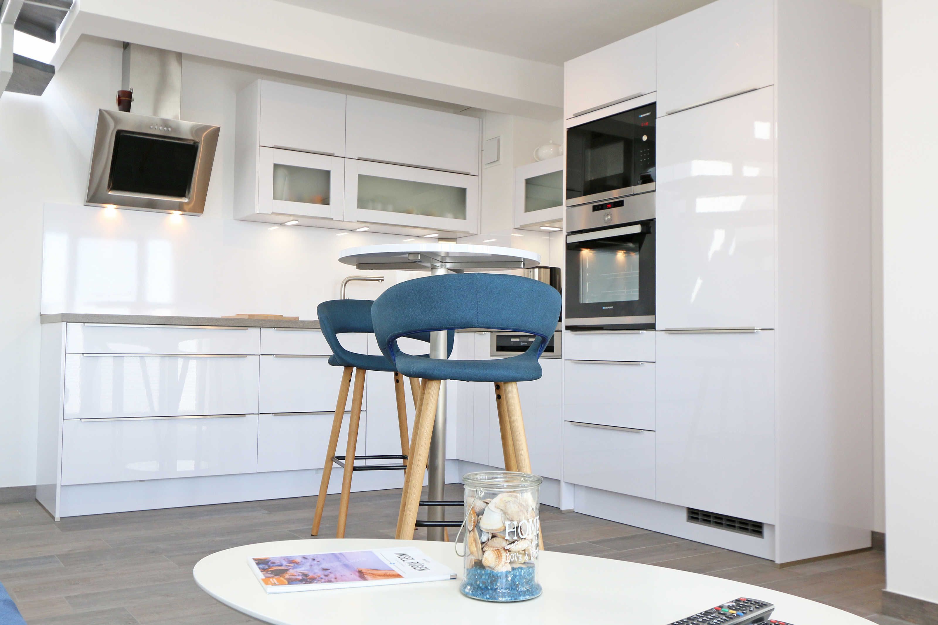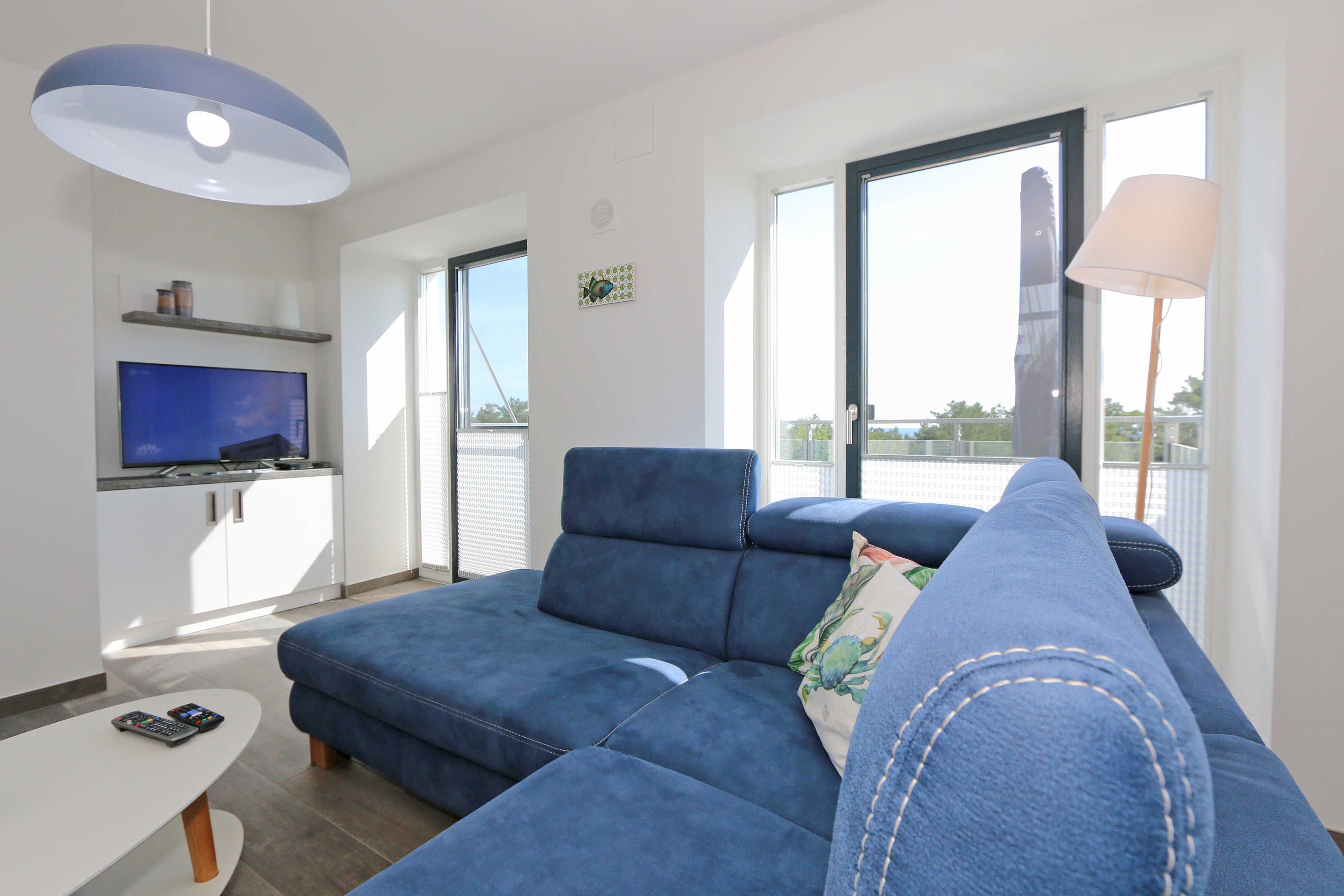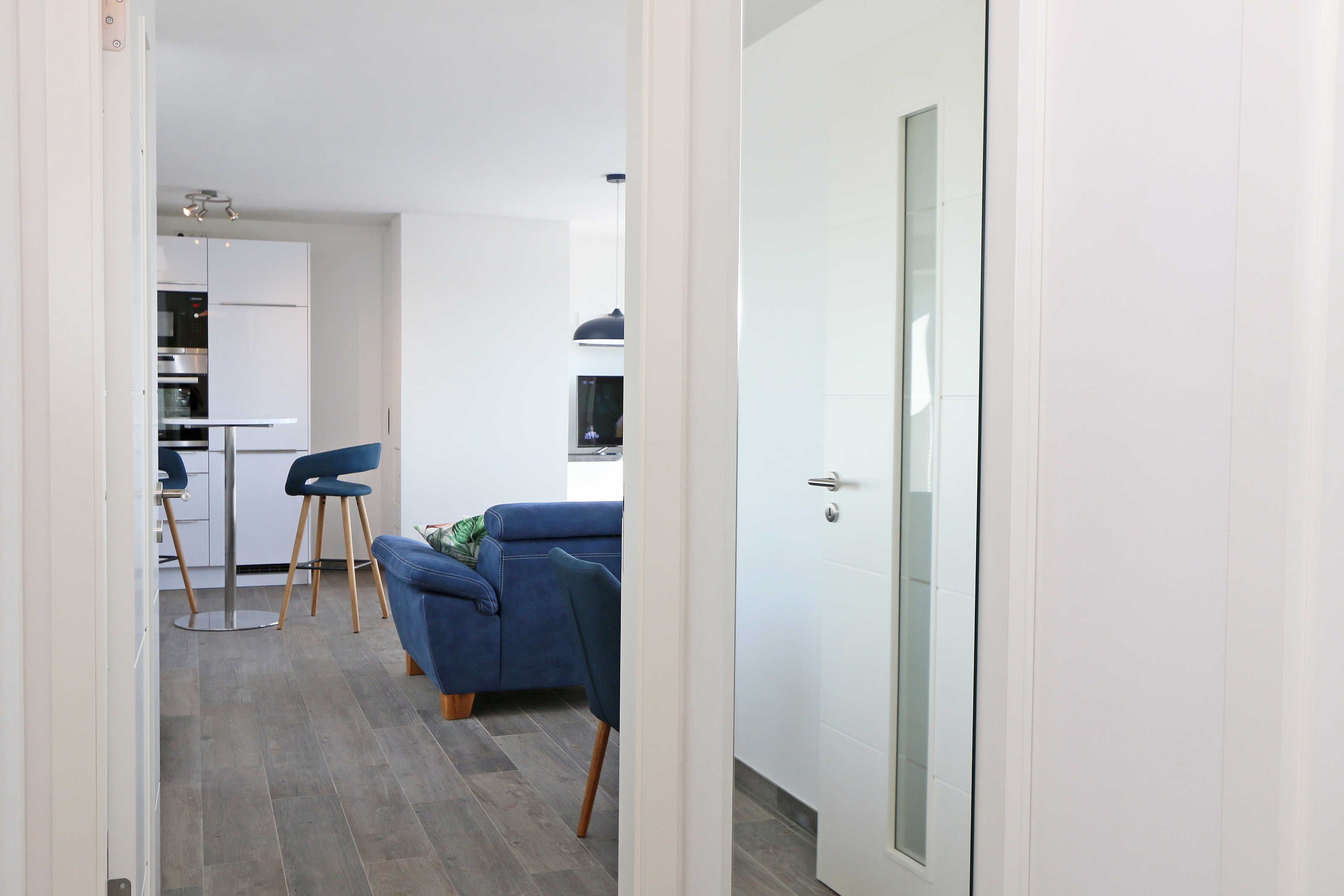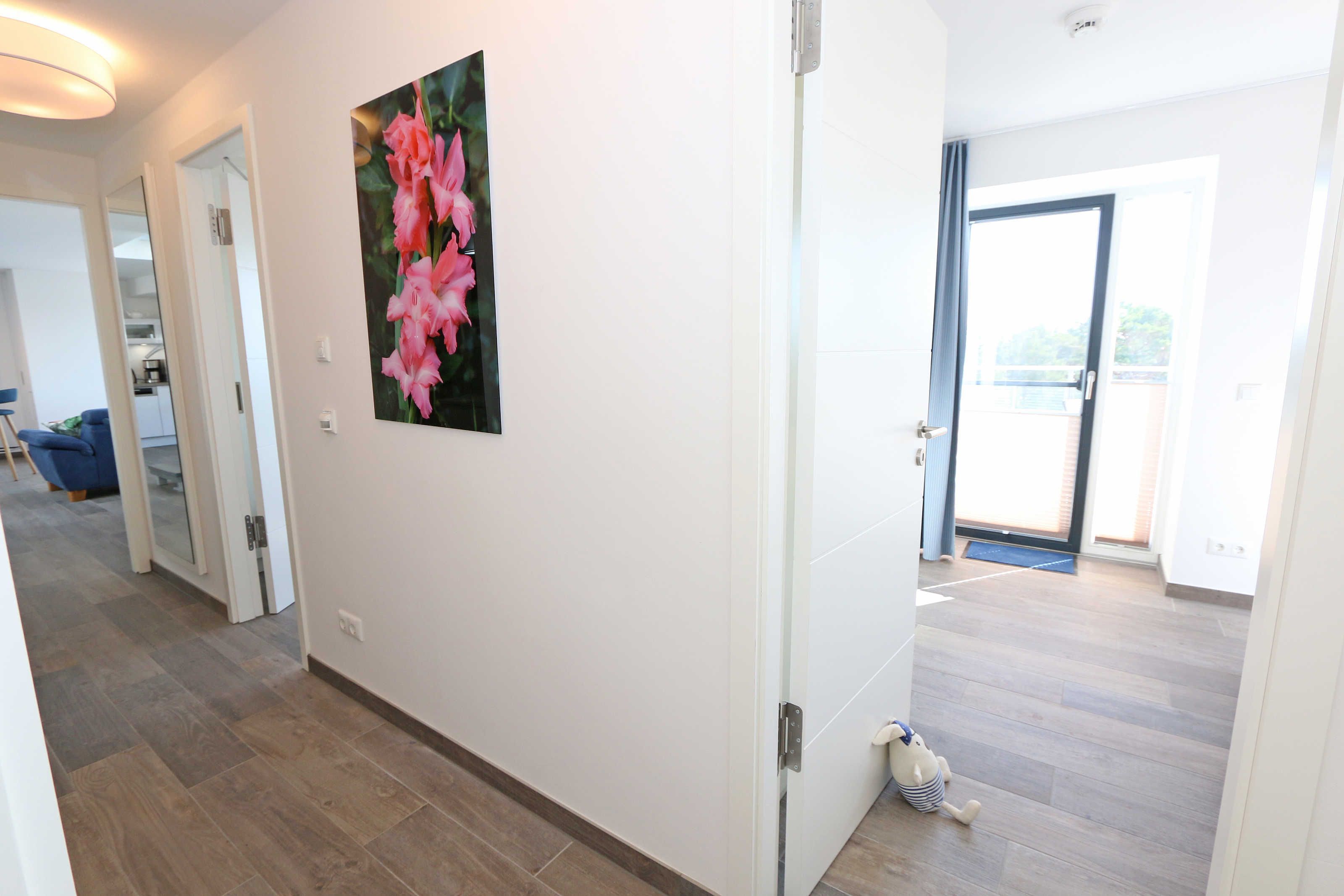 Die ca. 100 m² große 3-Raumferienwohnung (Nichtraucher) bietet Ihnen durch ihre erstklassige, stilsichere Ausstattung mit 2 Balkonen (Seeseite) und einer Dachterrasse beste Voraussetzungen für einen unvergesslichen Urlaub. Der Aufgang „Haus Granitz“ verfügt über einen Fahrstuhl, mit welchem Sie bequem in die Ferienwohnung gelangen. Dank einer gelungenen Raumaufteilung bietet die Wohnung Platz für max. 4 Erwachsene und 2 Kleinkinder bis 3 Jahre im Kinderreisebett. Im großzügigen Wohn-/Essbereich können Sie durch die komfortable Eck-Couch mit Couchtisch, Sideboard, Stehlampe und großem Essplatz gemütliche Tage verbringen. Drei Smart-TVs, Blu-ray Player und eine Mini-Stereo-Anlage mit Bluetooth und USB-Anschluss sowie das in der Wohnung kostenlos zur Verfügung gestellte W-LAN sorgen für Ihre Unterhaltung. Vom Wohnbereich führt Sie eine Treppe auf die große möblierte Dachterrasse mit zusätzlichem Strandkorb, von welcher Sie einen 360° Blick über die eindrucksvolle Landschaft genießen können. Ein Schlafzimmer und der Wohn/Essbereich bieten Zugang zu den bestuhlten Balkonen (Osten) mit einmaligem Blick auf die Ostsee. Die moderne Küchenzeile, welche dem Wohnbereich anpasst bietet Ihnen ein 4-Zonen-Cerankochfeld, Backofen, Spülmaschine, Kühlschrank mit separaten Gefrierfach, Kaffeemaschine, Nespresso Kaffeemaschine, Toaster, Wasserkocher, Mixer sowie diverse Küchenutensilien und lädt so zu gemütlichen Kochabenden ein. Die Schlafzimmer sind mit Boxspringbetten (Doppelbett 1,60m x 2,00m und zwei Betten 0,90m x 2,00m), Nachttischablagen mit Beleuchtung und USB- Anschlüssen sowie Kleiderschränken für Ihre Urlaubsgarderobe ausgestattet. Verdunklungsmöglichkeiten durch Vorhänge sowie Plissees und Insektenschutz erlauben einen geruhsamen Schlaf. Beide Schlafzimmer verfügen über je ein Smart-TV. Beide Bäder sind jeweils mit WC, ebenerdigen Duschen, Kosmetikspiegel, Fön, Handtuchtrockner sowie einem Waschplatz mit großzügigen Spiegeln und Ablageflächen eingerichtet. Das erste Badezimmer lockt zusätzlich mit einer Sauna zur Entspannung ein. Ein Bidet rundet das Erscheinungsbild ab. Im wohnungsinternen Abstellraum finden Sie auch Waschmaschine, Staubsauger und Wäscheständer sowie Bügelbrett mit Bügeleisen. Haustiere, ein kleinerer Hund ist gegen eine Gebühr, gestattet. Ein Stellplatz für Ihren PKW ist auf den gegenüberliegenden Parkplätzen für Sie reserviert. Ihre mitgebrachten Fahrräder können Sie in einem Gemeinschaftsabstellraum unterstellen. Die Erstausstattung eines Wäschepaketes (komplette Bettwäsche, 1 Duschhandtuch, 1 kleines Handtuch) können Sie bis 14 Tage vor Anreise gegen einen Aufpreis dazu buchen oder durch eigene ergänzen. Ab 2 gebuchten Paketen erhalten Sie einmalig 1 Geschirrhandtuch und 1 Duschvorleger hinzu.
