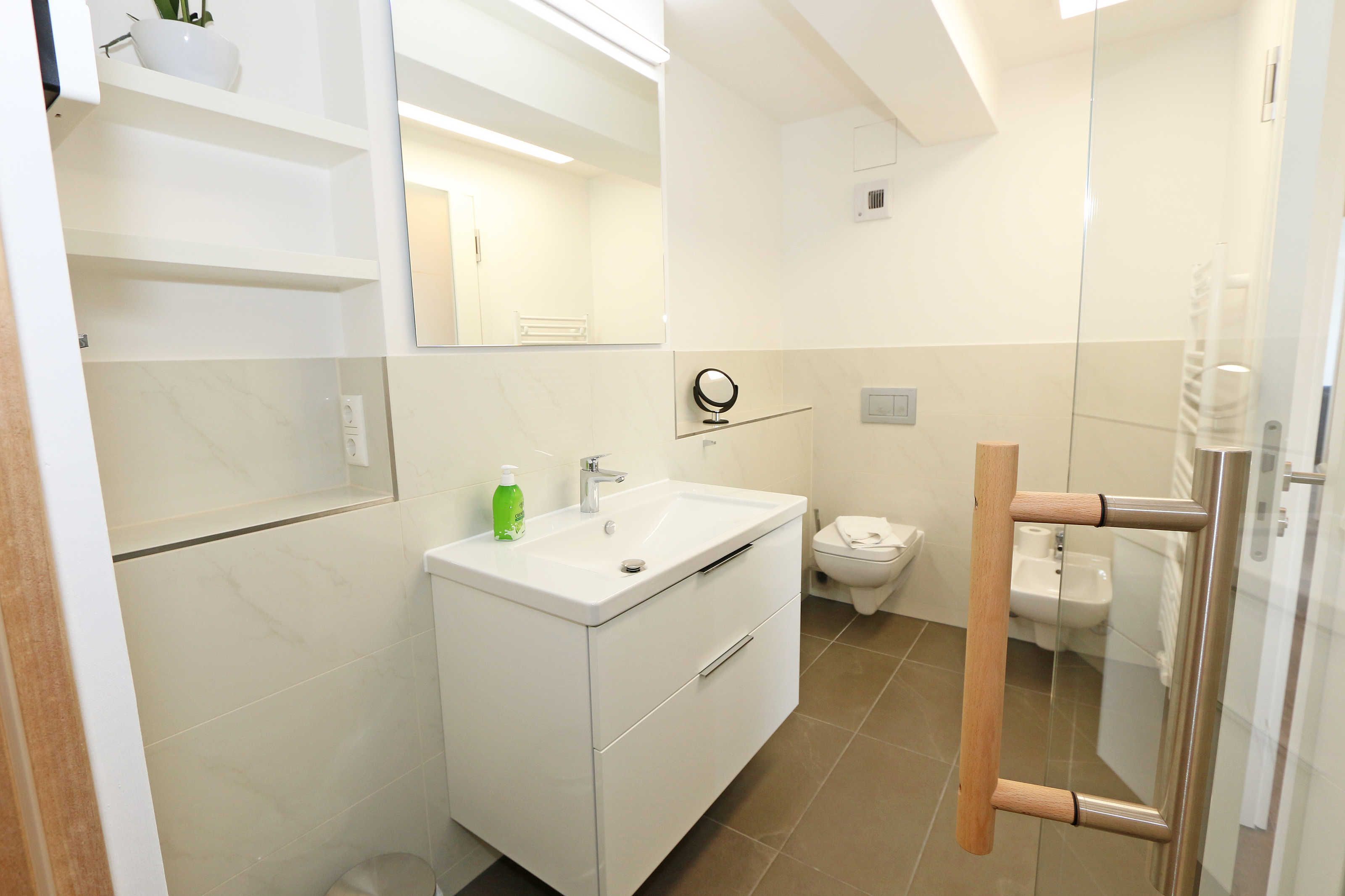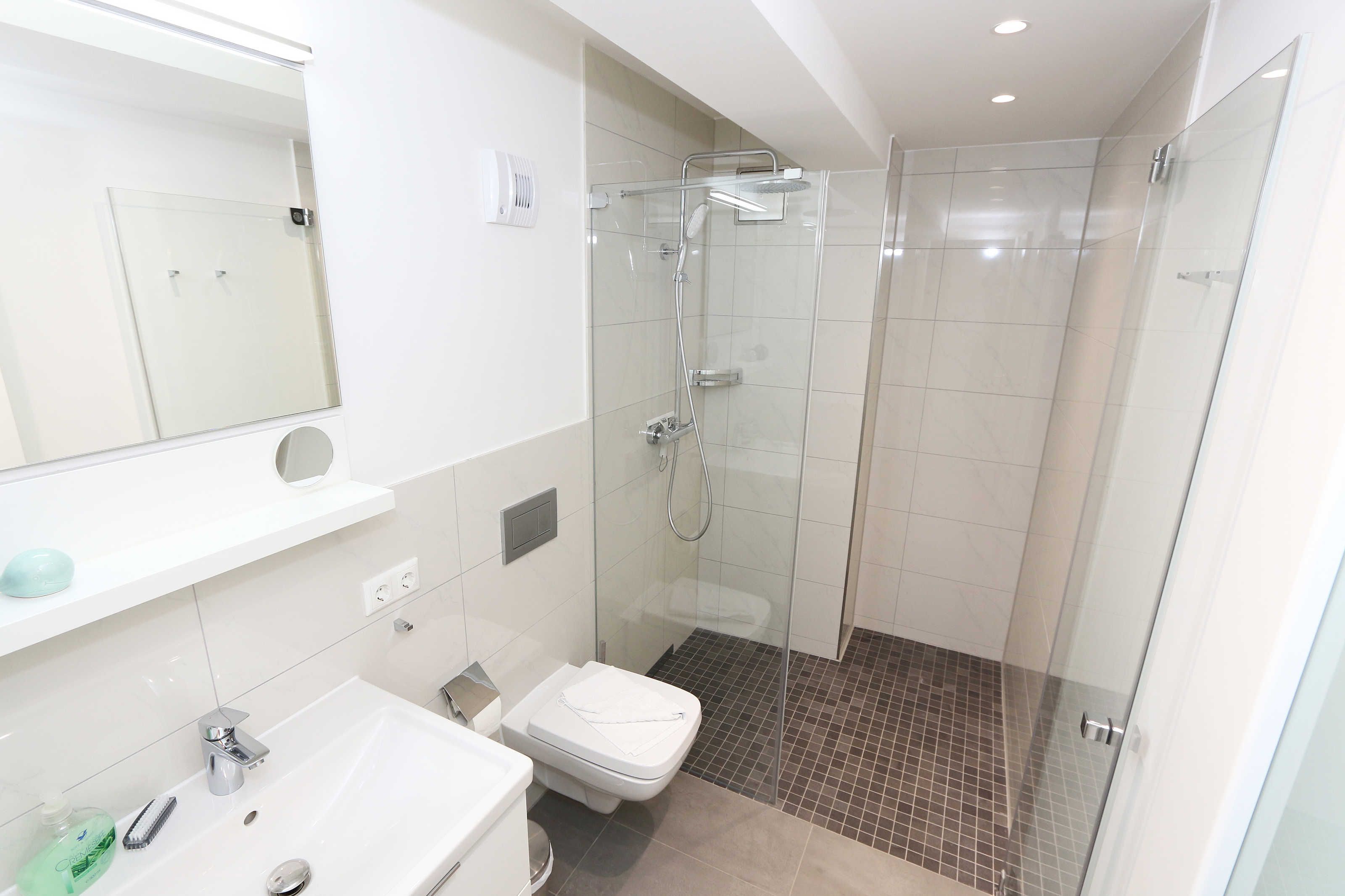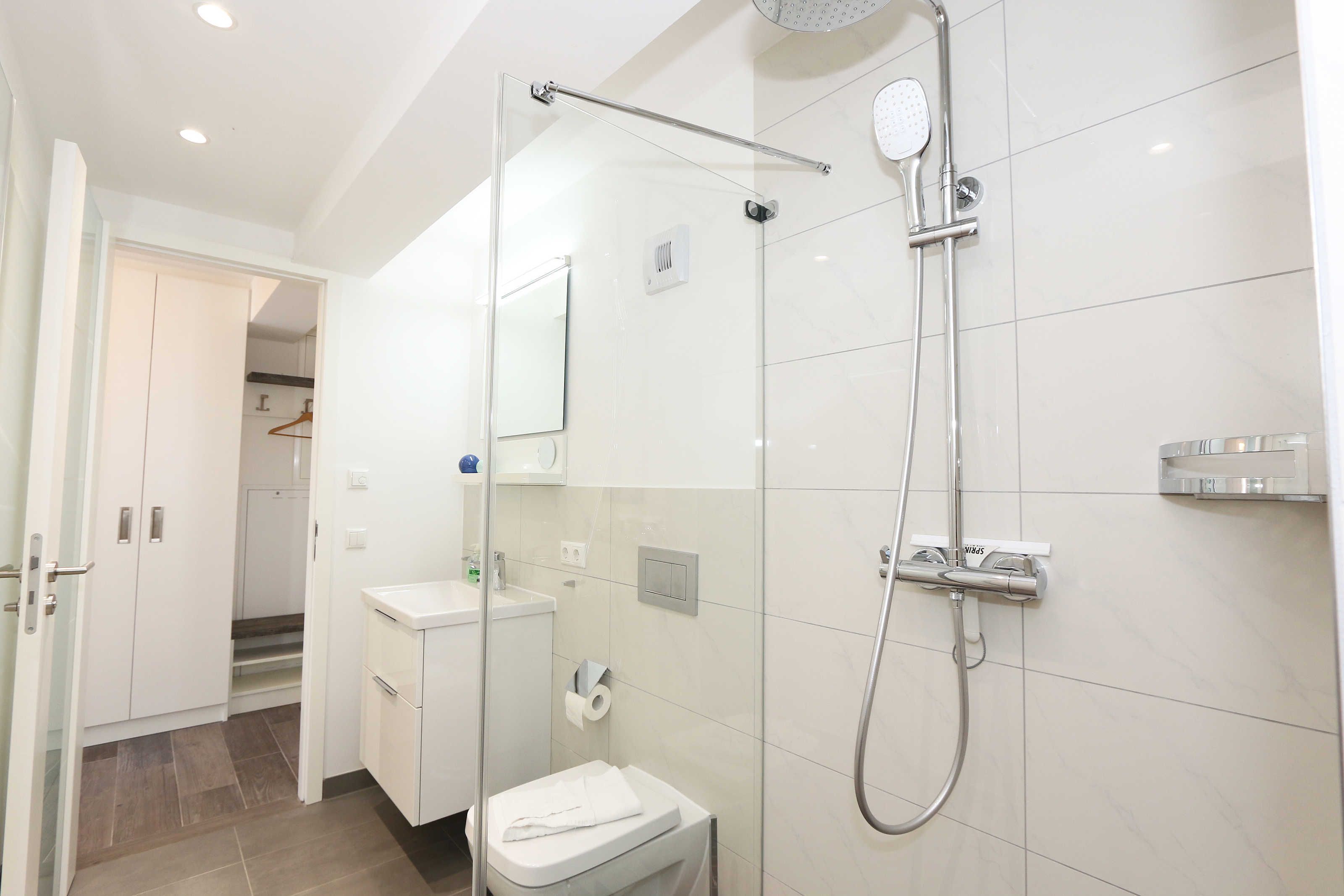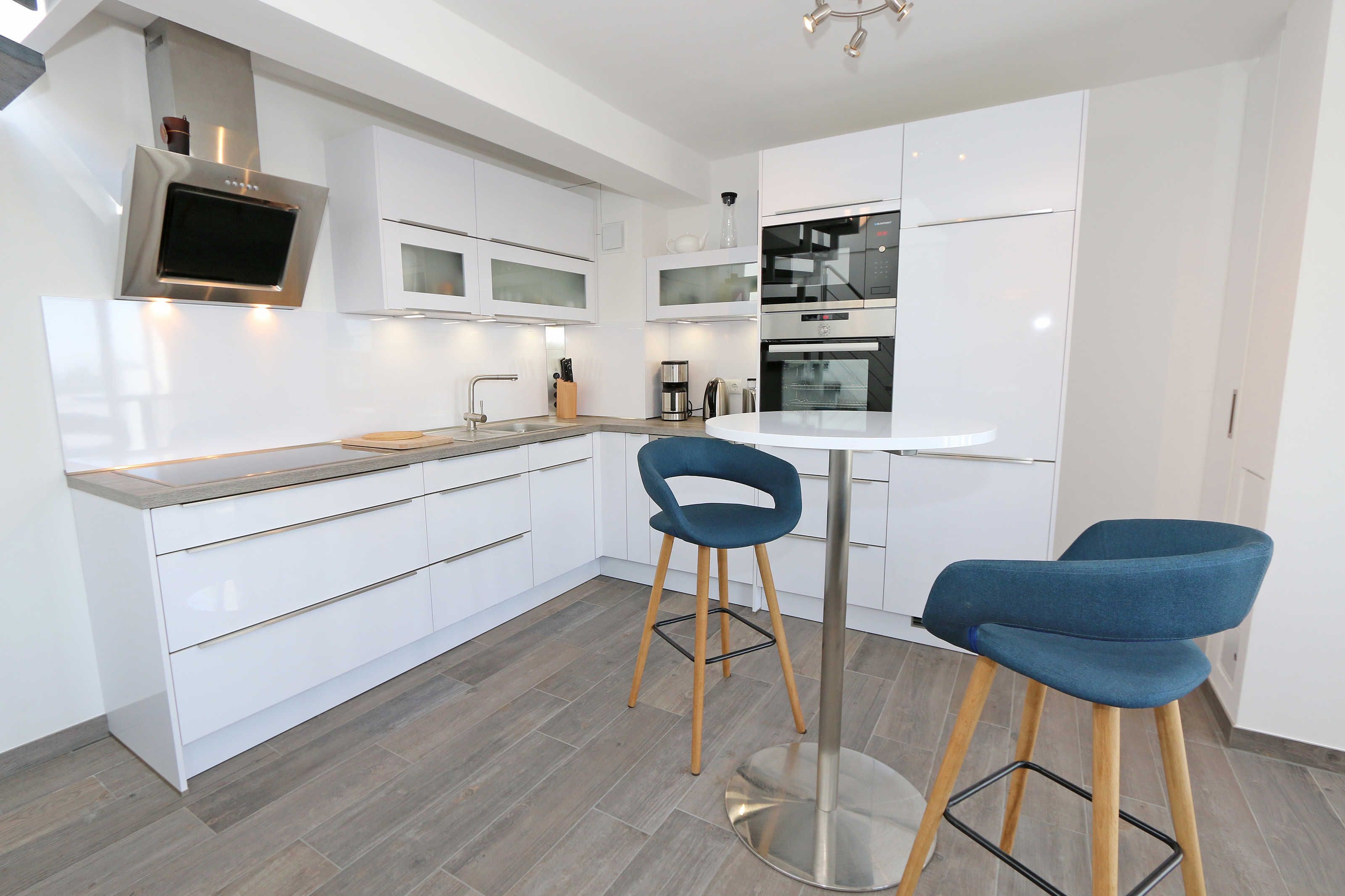 Die ca. 100 m² große 3-Raumferienwohnung (Nichtraucher) bietet Ihnen durch ihre erstklassige, stilsichere Ausstattung mit 2 Balkonen (Seeseite) und einer Dachterrasse beste Voraussetzungen für einen unvergesslichen Urlaub. Der Aufgang „Haus Granitz“ verfügt über einen Fahrstuhl, mit welchem Sie bequem in die Ferienwohnung gelangen. Dank einer gelungenen Raumaufteilung bietet die Wohnung Platz für max. 4 Erwachsene und 2 Kleinkinder bis 3 Jahre im Kinderreisebett. Im großzügigen Wohn-/Essbereich können Sie durch die komfortable Eck-Couch mit Couchtisch, Sideboard, Stehlampe und großem Essplatz gemütliche Tage verbringen. Drei Smart-TVs, Blu-ray Player und eine Mini-Stereo-Anlage mit Bluetooth und USB-Anschluss sowie das in der Wohnung kostenlos zur Verfügung gestellte W-LAN sorgen für Ihre Unterhaltung. Vom Wohnbereich führt Sie eine Treppe auf die große möblierte Dachterrasse mit zusätzlichem Strandkorb, von welcher Sie einen 360° Blick über die eindrucksvolle Landschaft genießen können. Ein Schlafzimmer und der Wohn/Essbereich bieten Zugang zu den bestuhlten Balkonen (Osten) mit einmaligem Blick auf die Ostsee. Die moderne Küchenzeile, welche dem Wohnbereich anpasst bietet Ihnen ein 4-Zonen-Cerankochfeld, Backofen, Spülmaschine, Kühlschrank mit separaten Gefrierfach, Kaffeemaschine, Nespresso Kaffeemaschine, Toaster, Wasserkocher, Mixer sowie diverse Küchenutensilien und lädt so zu gemütlichen Kochabenden ein. Die Schlafzimmer sind mit Boxspringbetten (Doppelbett 1,60m x 2,00m und zwei Betten 0,90m x 2,00m), Nachttischablagen mit Beleuchtung und USB- Anschlüssen sowie Kleiderschränken für Ihre Urlaubsgarderobe ausgestattet. Verdunklungsmöglichkeiten durch Vorhänge sowie Plissees und Insektenschutz erlauben einen geruhsamen Schlaf. Beide Schlafzimmer verfügen über je ein Smart-TV. Beide Bäder sind jeweils mit WC, ebenerdigen Duschen, Kosmetikspiegel, Fön, Handtuchtrockner sowie einem Waschplatz mit großzügigen Spiegeln und Ablageflächen eingerichtet. Das erste Badezimmer lockt zusätzlich mit einer Sauna zur Entspannung ein. Ein Bidet rundet das Erscheinungsbild ab. Im wohnungsinternen Abstellraum finden Sie auch Waschmaschine, Staubsauger und Wäscheständer sowie Bügelbrett mit Bügeleisen. Haustiere, ein kleinerer Hund ist gegen eine Gebühr, gestattet. Ein Stellplatz für Ihren PKW ist auf den gegenüberliegenden Parkplätzen für Sie reserviert. Ihre mitgebrachten Fahrräder können Sie in einem Gemeinschaftsabstellraum unterstellen. Die Erstausstattung eines Wäschepaketes (komplette Bettwäsche, 1 Duschhandtuch, 1 kleines Handtuch) können Sie bis 14 Tage vor Anreise gegen einen Aufpreis dazu buchen oder durch eigene ergänzen. Ab 2 gebuchten Paketen erhalten Sie einmalig 1 Geschirrhandtuch und 1 Duschvorleger hinzu.