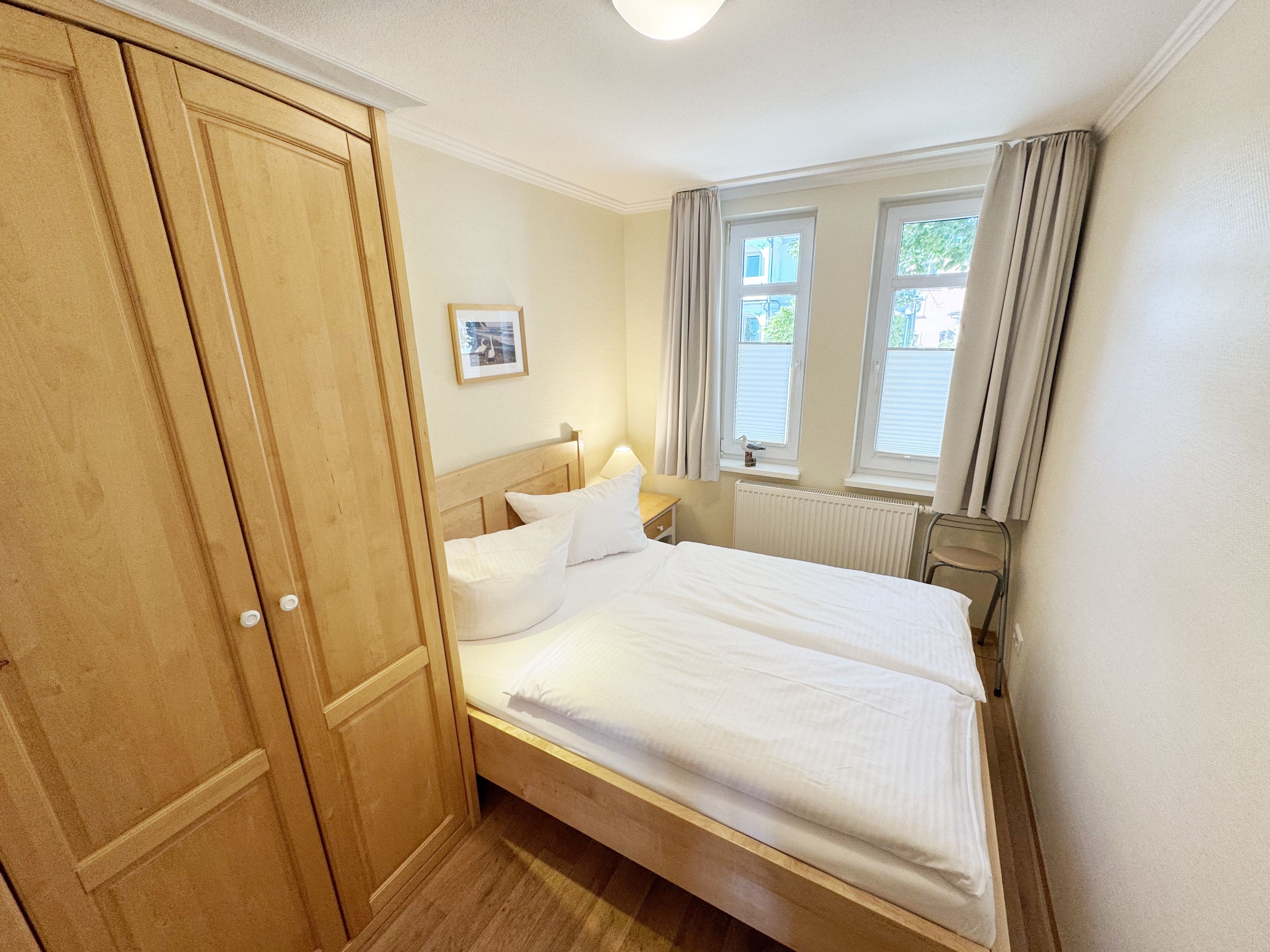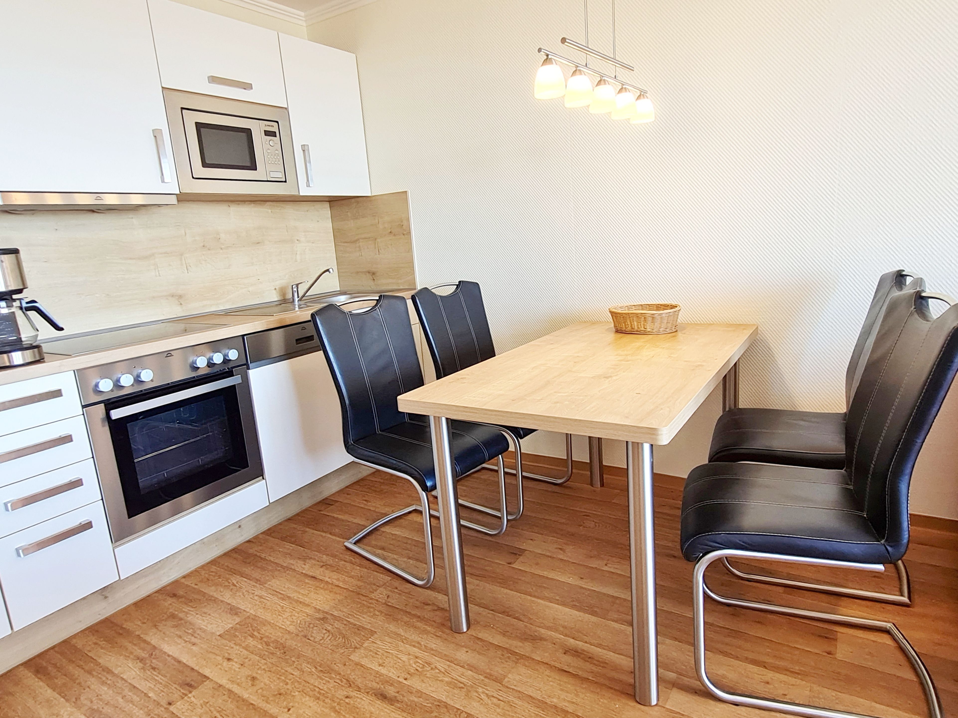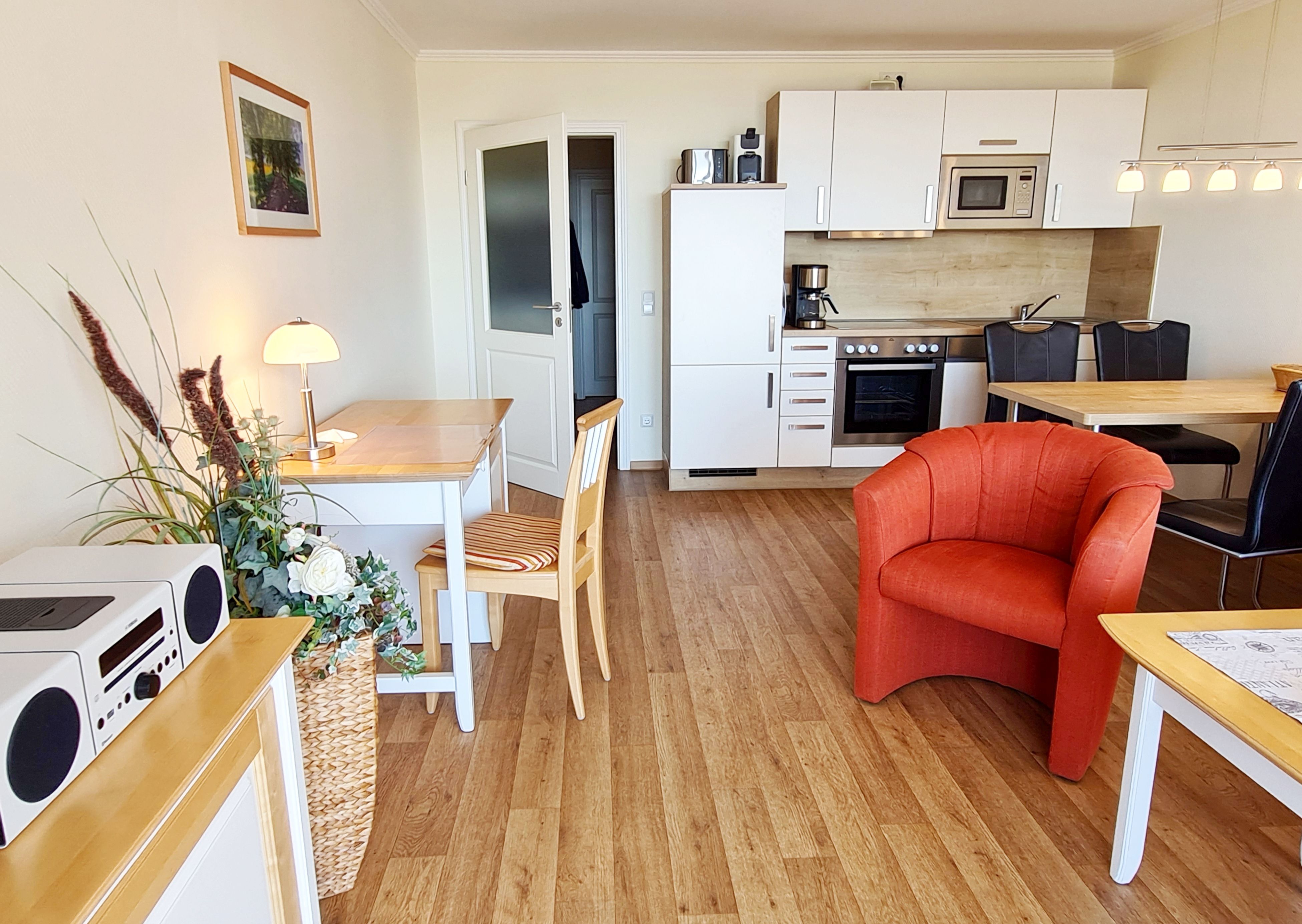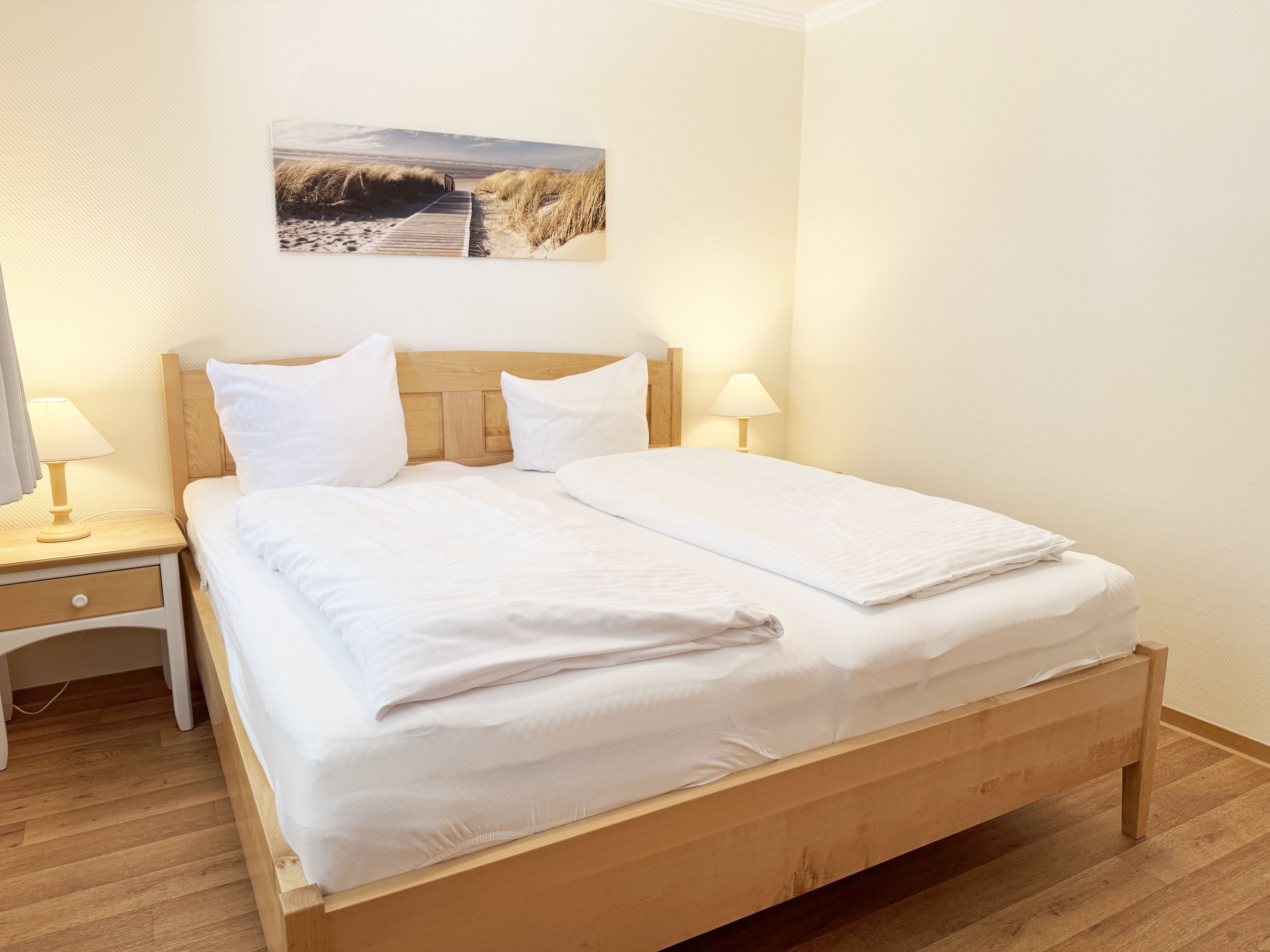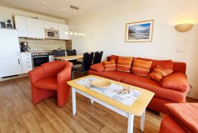 Die vom DTV mit vier Sternen ausgezeichnete Nichtraucherferienwohnung beherbergt max. 4 Erwachsene + 1 Kleinkind bis 3 Jahre im Kinderreisebett bei ca. 61qm und befindet sich im 2. Obergeschoss im Haus Having. Sie ist hell und freundlich eingerichtet, in warmen Tönen gehalten, hochwertig und zugleich funktional ausgestattet und bietet ein niveauvolles Ambiente. Der Flur im Eingangsbereich der Wohnung ist neben einer Garderobe mit Schuhbank und Wandspiegel auch mit einem großen Schrank mit ausreichend Stauraum ausgestattet. Das großzügige Wohnzimmer mit großer Fensterfront ist mit einer gemütlichen Couch, Couchtisch, einen Sessel mit Hocker, einer Leselampe, einen Schreibtisch, einen Smart-TV, einen Blu-Ray Player, eine Yamaha-Mini-Stereoanlage mit Bluetooth und USB-Anschluss, DAB-Radio sowie Lektüre rund um Rügen und Gesellschaftsspielen ausgestattet. Ein WLAN-Anschluss, welcher für Sie inklusive ist, rundet den technischen Bereich ab. Auf dem nach Süden ausgerichteten weitgehend überdachten großen Balkon mit Bestuhlung, einen Sonnenschirm und klappbarer Sonnenliege können Sie ausgiebig sonnenbaden und entspannt frühstücken und dabei eine traumhafte Aussicht über die Ostsee und die Halbinsel Mönchgut genießen. Im Wohnbereich befinden sich eine voll ausgestattete Küchenzeile mit Cerankochfeld, Backofen, Mikrowelle, Geschirrspüler, Kühlschrank mit Gefrierfach, Mixer, Kaffeemaschine, Senseo Pad Kaffeemaschine, Wasserkocher, Toaster sowie diverse Küchenutensilien. Ein bequemer Essbereich mit Lederfreischwingern schließt sich der Küchenzeile an. Im ersten Schlafzimmer finden Sie ein Doppelbett (1,80m x 2,00m/ H2/3) mit verstellbaren Lattenrosten, Nachttischablagen, einen Stuhl, sowie einen großen Kleiderschrank und ein TV-Gerät. Im zweiten und damit etwas kleineren Schlafzimmer befindet sich ein französisches Bett (1,40 x 2,00m, durchgehende Matratze/ H3) mit einer Nachttischablage und einem Kleiderschrank sowie ein Bügelbrett und Bügeleisen. Für einen erholsamen Schlaf finden Sie in beiden Schlafzimmern Verdunklungsmöglichkeiten, Insektenschutzgitter sowie helle Massivholzmöbel. Im innenliegenden Bad mit WC, Waschtisch und Dusche finden Sie zusätzlich einen Fön, einen Kosmetikspiegel, einen Hocker und ausreichend Ablageflächen. Alle Räumlichkeiten sind mit einem Vinylfußboden ausgelegt worden. Haustiere sind nicht erlaubt. Ein eigener PKW-Stellplatz (Nr.36) am Haus, sowie eine abschließbare Fahrradabstellmöglichkeit sind für Sie vorhanden. Hier können Sie auch Ihre E-Bikes problemlos aufladen. Eine Waschmaschine und ein Trockner kann in einem separaten Raum vom Haus Kaming exklusive genutzt werden. Die Erstausstattung eines Wäschepaketes (komplette Bettwäsche, 1 Duschhandtuch, 2 kleine Handtücher) ist inklusive. Ab 2 Paketen erhalten Sie einmalig 1 Geschirrhandtuch und 1 Duschvorleger hinzu. Haustiere sind in der Wohnung nicht erlaubt.
