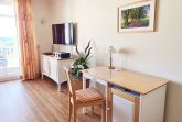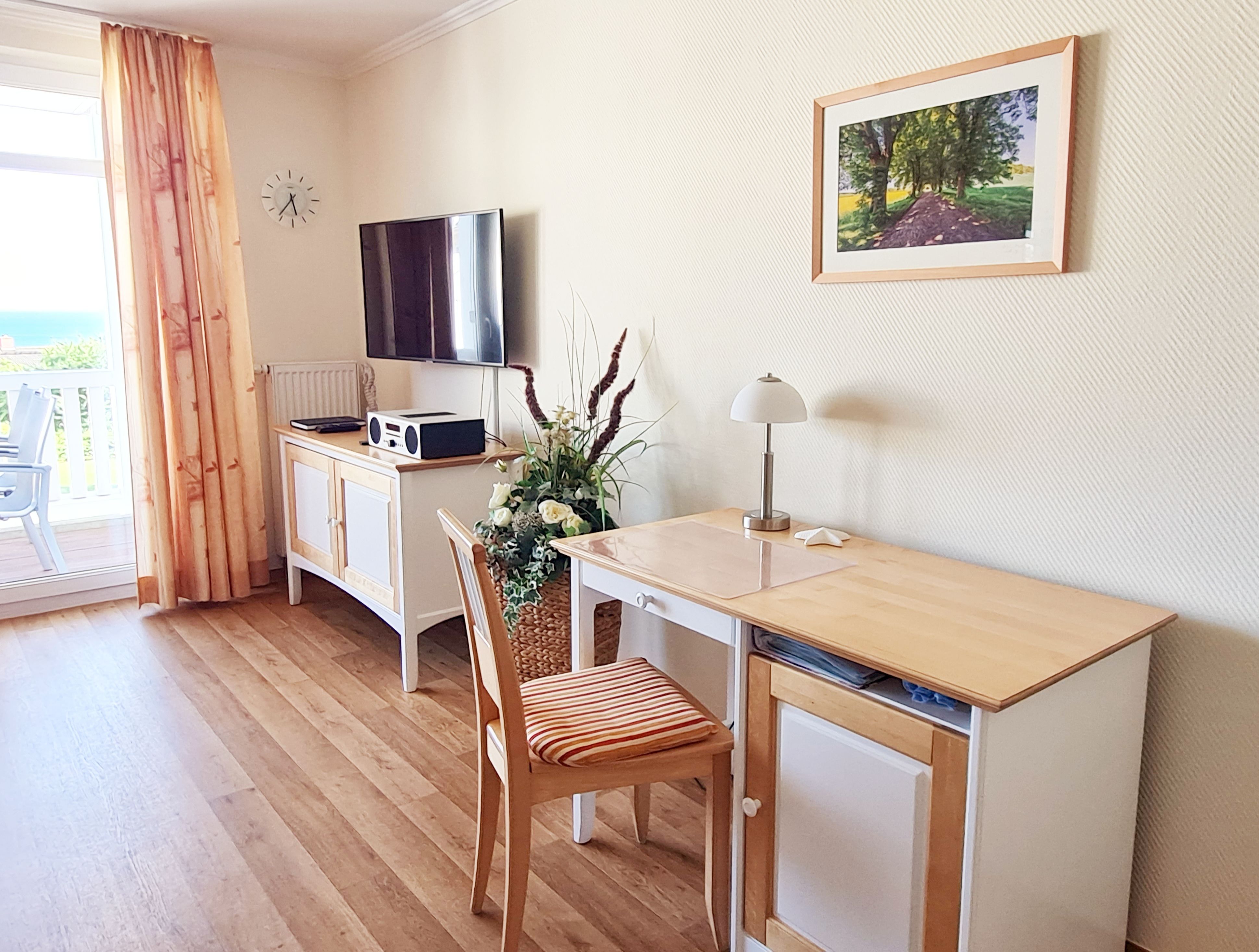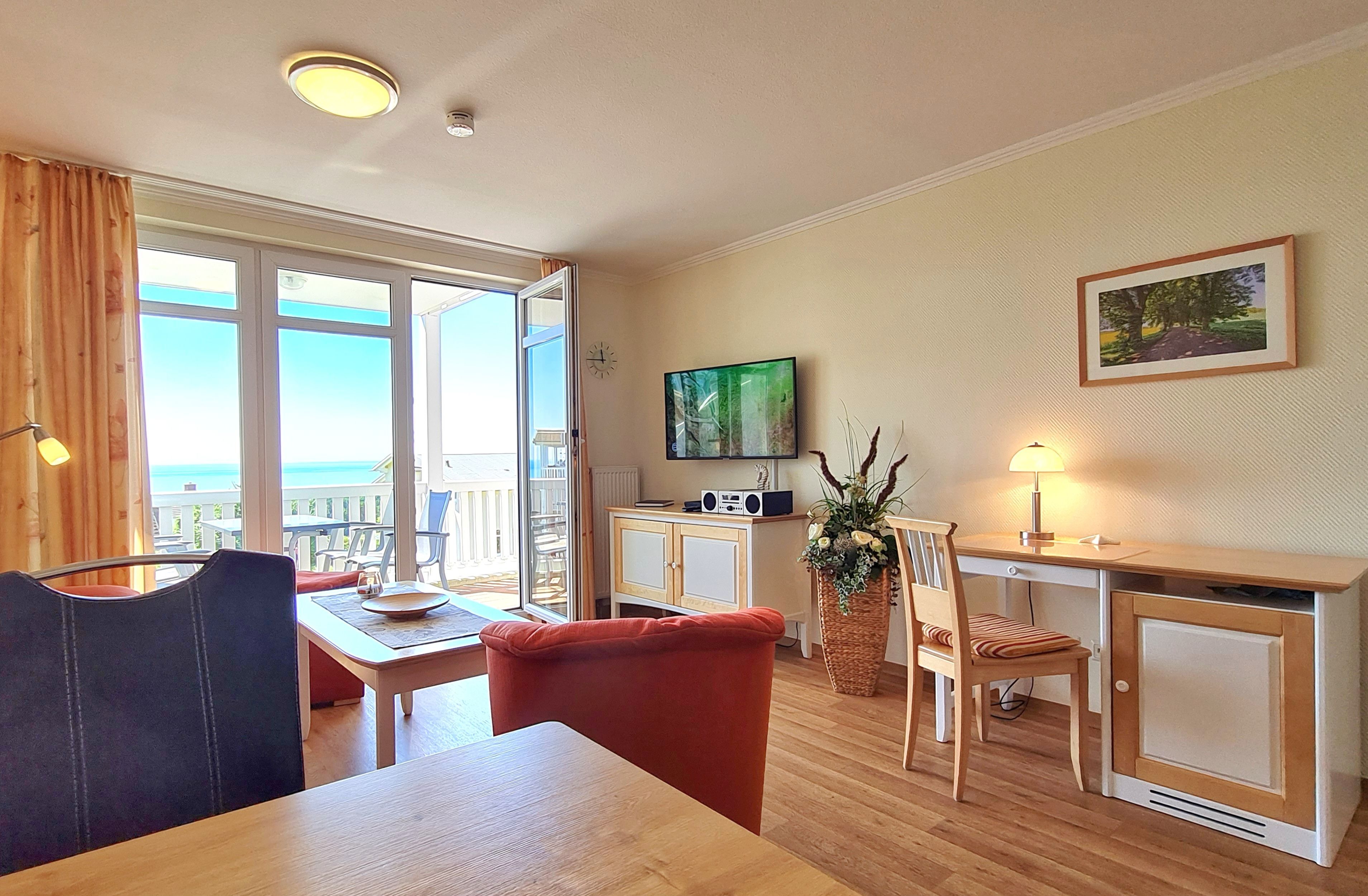 Urlaub an der Ostsee inmitten der traumhaften Naturlandschaft der Halbinsel Mönchgut mit Meeresblick: Unsere hochwertig und komfortabel eingerichtete Drei-Zimmer-Ferienwohnung mit großem Südbalkon bietet einen herrlichen Blick über die Ostsee und den Südosten der Insel Rügen. Die Aussicht auf die einmalige Rügener Naturlandschaft und die in allen Blautönen schimmernde Ostsee bis hin zur Küste der Insel Usedom am Horizont lässt jeden Alltagsstress vergessen. Die ca. 61 m² große Ferienwohnung befindet sich in der zweiten Etage im Haus Having der im modernen Bäderstil erbauten Meeresblick Residenzen auf einem weiträumigen Gartengrundstück am Rande eines Naturschutzgebietes mit freiem Blick auf die Ostsee und die Boddenlandschaft. Trotz der bevorzugten Ortsrandlage in einer ruhigen Nebenstraße im Süden des Ostseebades Göhren ist der Ortskern mit Bushaltestelle, zahlreichen Einkaufsmöglichkeiten und Restaurants in ca. 5 Minuten zu Fuß zu erreichen. Zum naturnahen vier Kilometer langen Südstrand geht man ca. 7 Minuten und zum belebten drei Kilometer langen Nordstrand knapp 10 Minuten. Ob Familienferien, Kneippkuren an der Ostsee, Spaziergänge an den kilometerlangen Stränden und in den Buchenwäldern entlang der Steilküsten, Radtouren, Ausflugsfahrten mit Schmalspurbahn oder Schiff, Aktivurlaub oder einfach nur entspannen, die Ruhe und die einzigartige Natur genießen und die Heilkräfte des Meeres auf sich wirken lassen: Unsere Ferienwohnung im idyllischen Ostseebad und Kneippkurort Göhren bietet viele Möglichkeiten, Ihren Urlaub ganz nach Ihren Bedürfnissen zu gestalten.