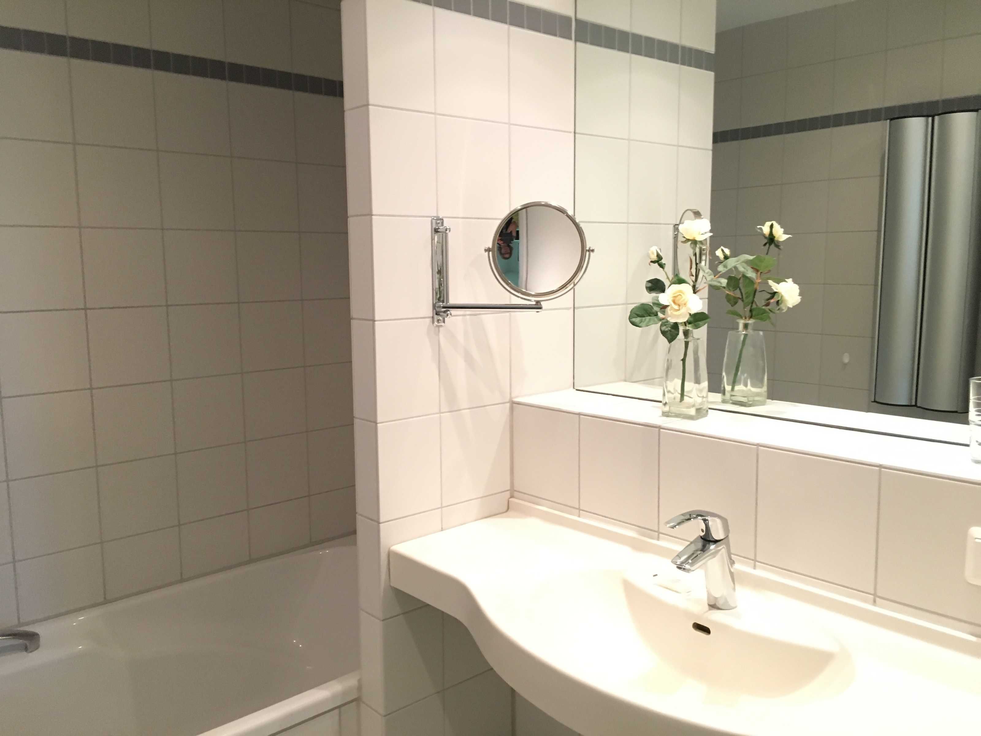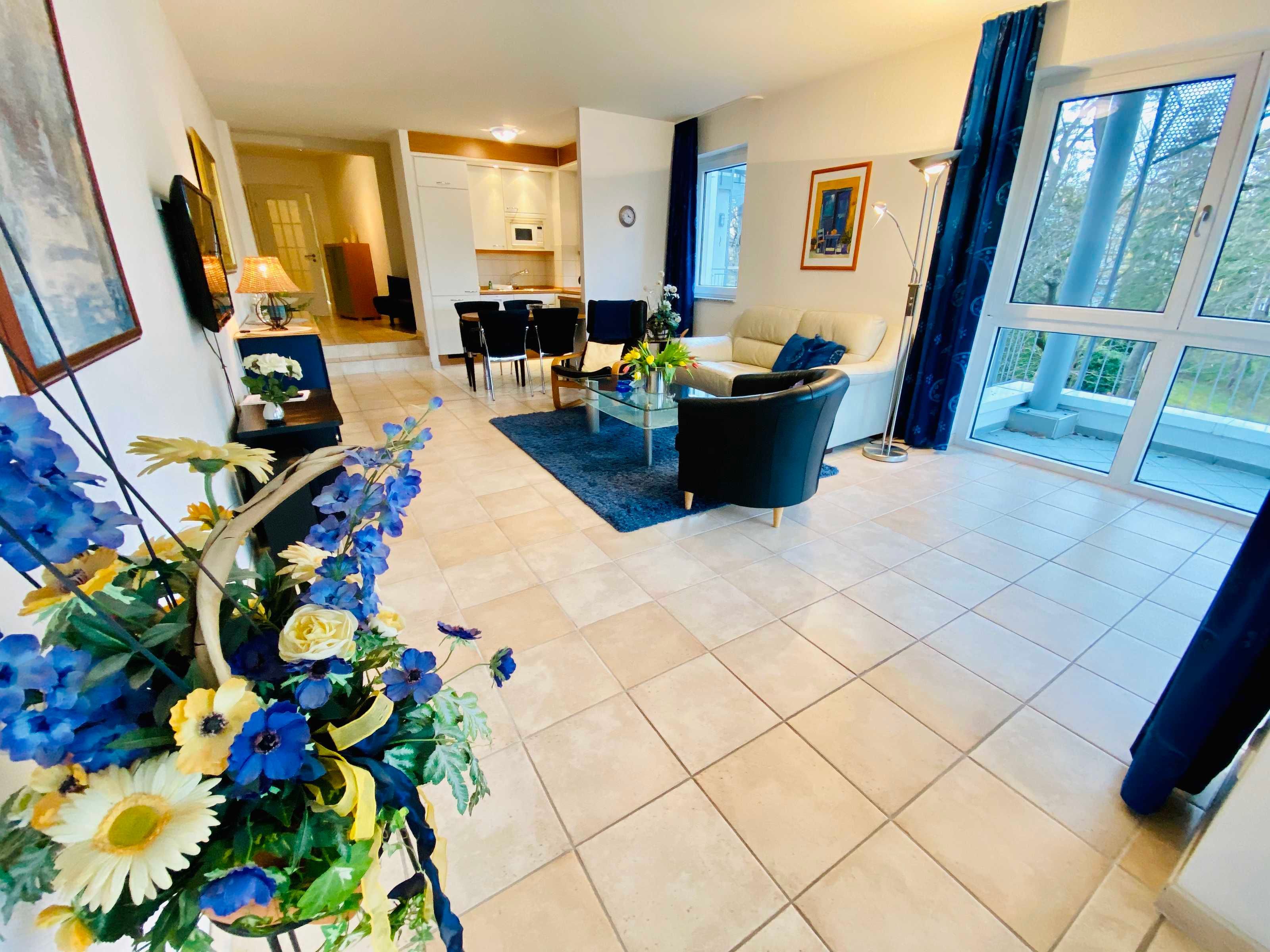 Die exklusive Ferienwohnung 9 im 2. Obergeschoss verfügt über einen großzügigen Wohn-/Essraum mit komplett eingerichteter Küchenzeile, ein Schlafzimmer mit Doppelbett und im Durchgang zum Wohnzimmer befindet sich eine Ausziehcouch für die 3. Person. Moderne Unterhaltungselektronik ist selbstverständlich vorhanden. Zur Ferienwohnung gehören außerdem zwei Badezimmer mit Dusche bzw. Badewanne und ein überdachter Balkon mit Blick auf die Promenade/ bewaldete Düne. Die gemütliche Ferienwohnung ist gefliest und im Schlafzimmer mit Parkett ausgelegt. Parkplatz am Haus