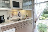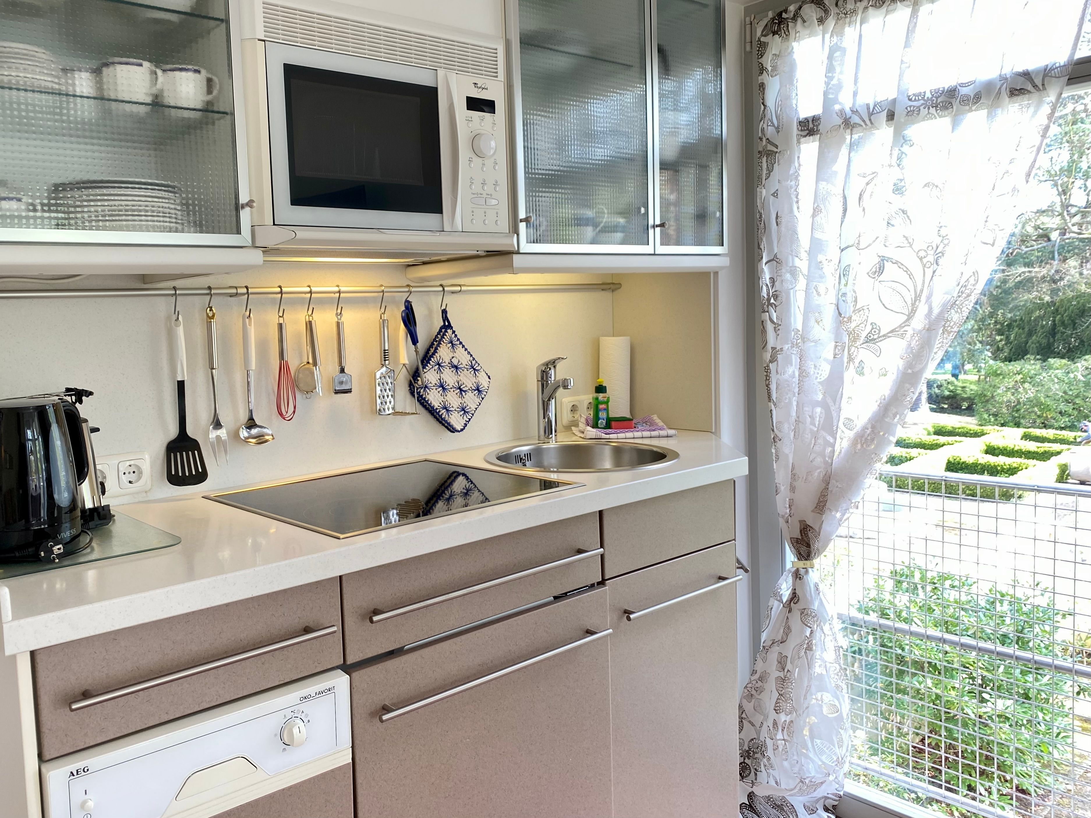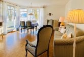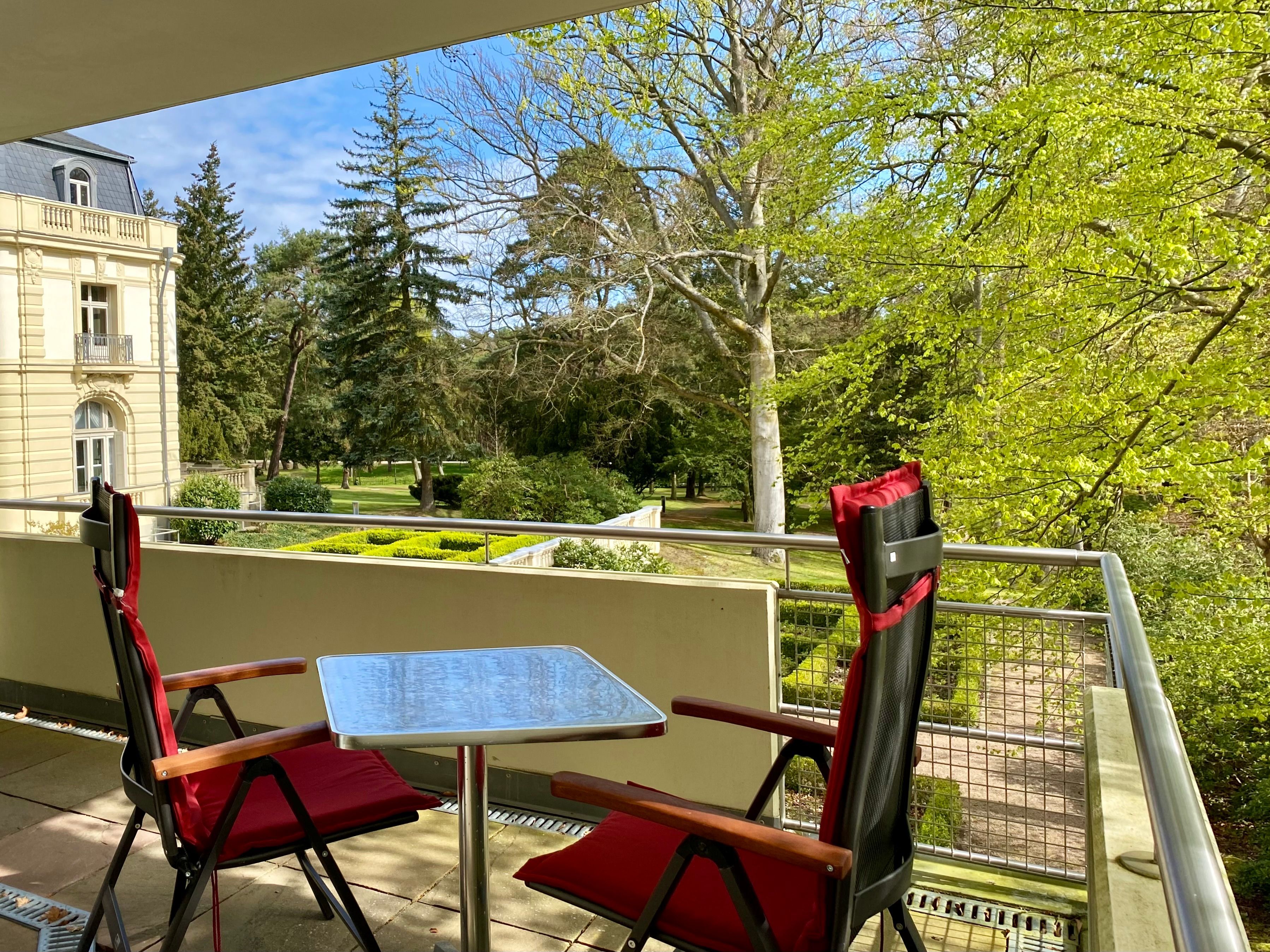 Ferienwohnung 28 ist eine schöne, wohnliche 3-Raumwohnung im 1.OG der Villa Rosengarten und mit Fahrstuhl erreichbar. Das Apartment besteht aus einem kombinierten Wohn- Essraum mit Küchenzeile ( Geschirrspüler, Mikrowelle, Ceranfeld), einem Schlazimmer mit Doppelbett und genügend Stauraum für Ihre Kleidung, einem kleinen Schlafzimmer mit 160er Schlafcouch und einem Bad mit Dusche. Die Wohnung hat zwei moderne Flachbildfernseher (Kabel-TV) sowie jede Menge Bücher, Spiele, CDs. Zu ihr gehört auch ein überdachter Balkon mit Möbeln, von dem Sie den Blick in den Park und Rosengarten genießen können.