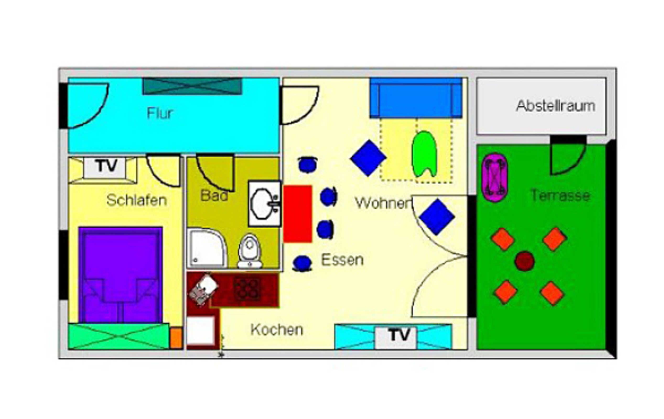 Ferienwohnung 52 m² mit Terrasse im Hochparterre für bis zu 4 Personen