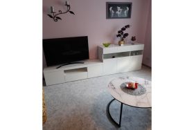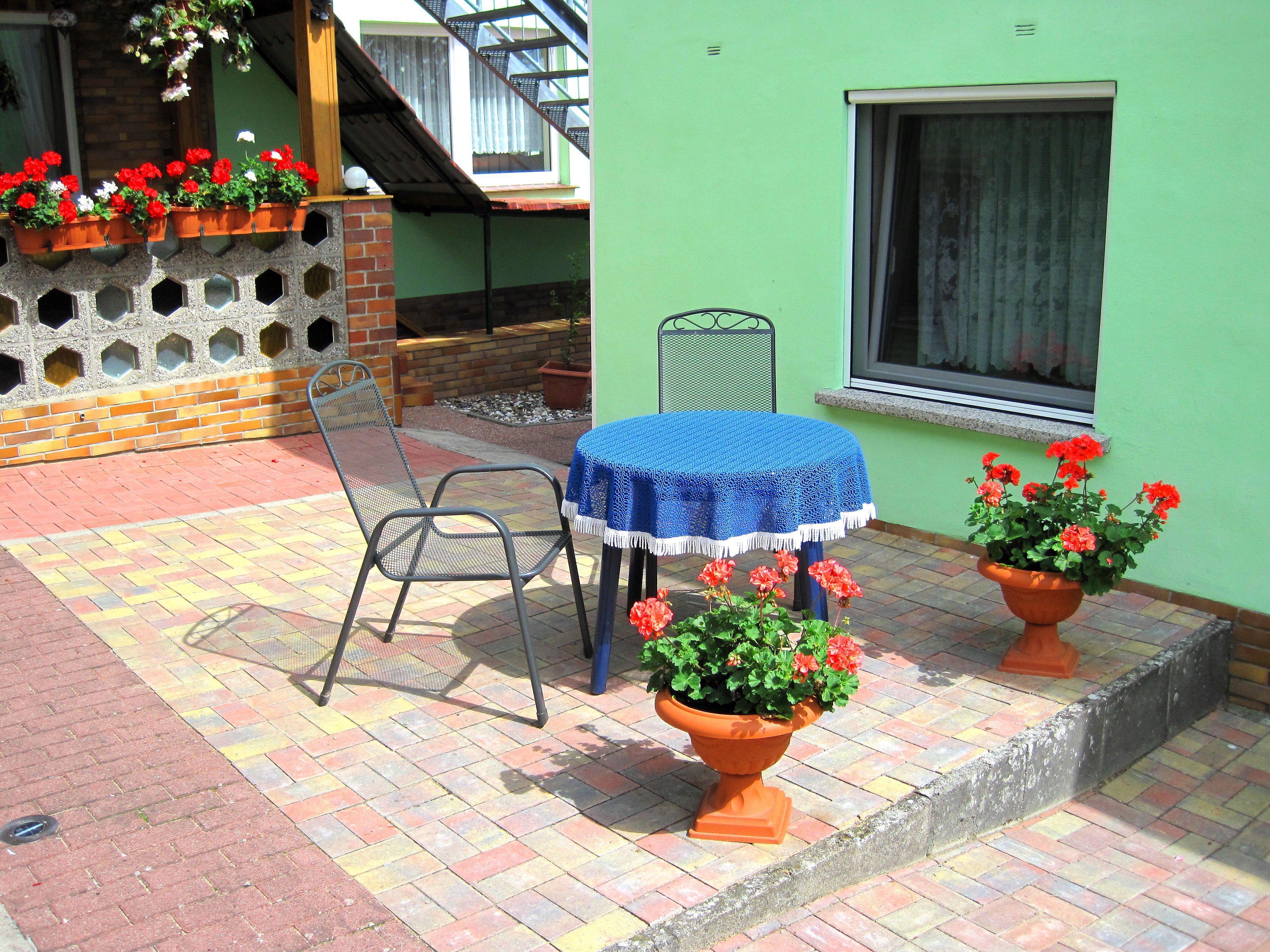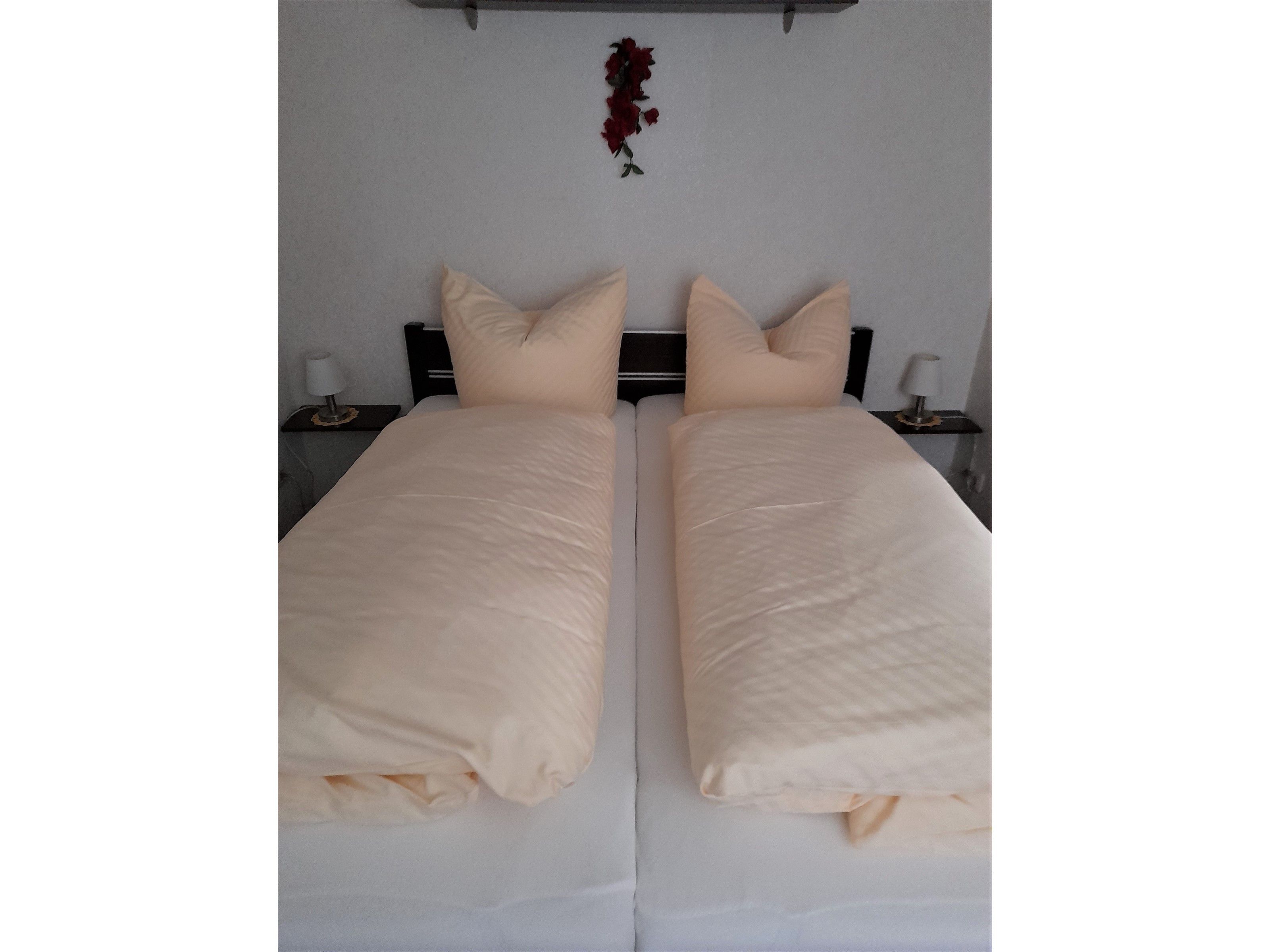 Die gepflegte, moderne 2- Raum-Ferienwohnung ist ca. 50 qm groß, mit separatem Eingang und befindet sich im Erdgeschoss. Die Wohnung verfügt über eine Küchenzeile mit 4-Platten-Induktionsherd, Kühlschrank mit Gefrierfach, Backofen, Kaffeemaschine, Wasserkocher, Toaster, Geschirr etc. sowie einem Esstisch mit zwei Stühlen & WLAN-Radio. Der Wohnraum ist mit Teppichboden, Sat-TV sowie Couchtisch mit Sitzgruppe/Couch ausgestattet. Der separate Schlafraum bietet Platz für 2 Personen und verfügt über Doppelbett (Polsterbett 1,80 x 2,00 m) , einen Kleiderschrank und zwei Nachttische. Das Badezimmer ist mit DU/WC, Waschtisch, Spiegel und Fön ausgestattet.WLAN ist kostenfrei vorhanden.