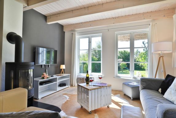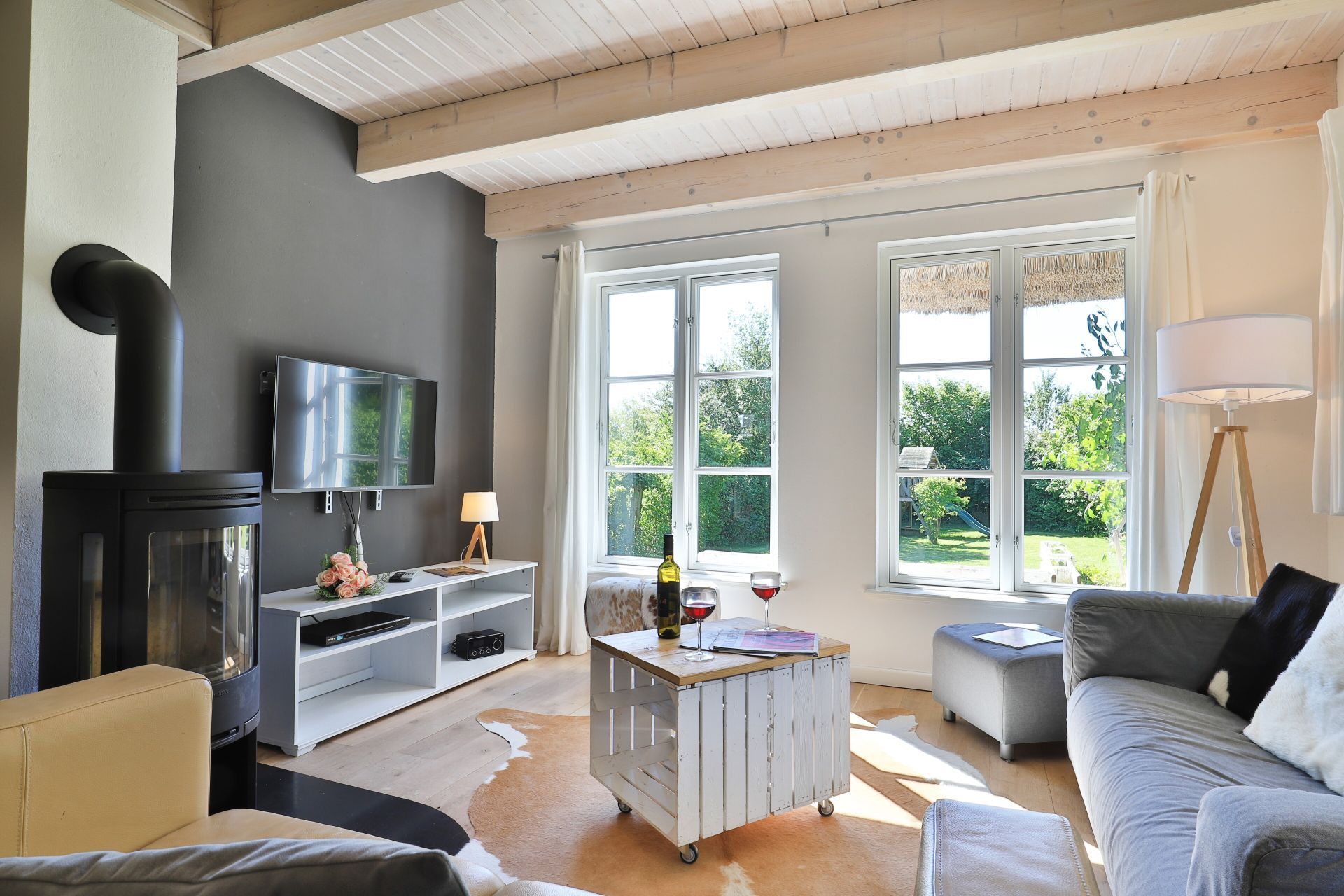 Nur 500 Meter zum Strand von Groß Schwansee. Familien werden sich Wohlfühlen, in diesem ruhig gelegenen Reetdachhaus- Fritid- mit großem Gartengrundstück und Spielmöglichkeiten sowie Terrasse mit Strandkorb. Das geräumige Ferienhaus bietet drei separate Schlafzimmer sowie 2 Bäder.