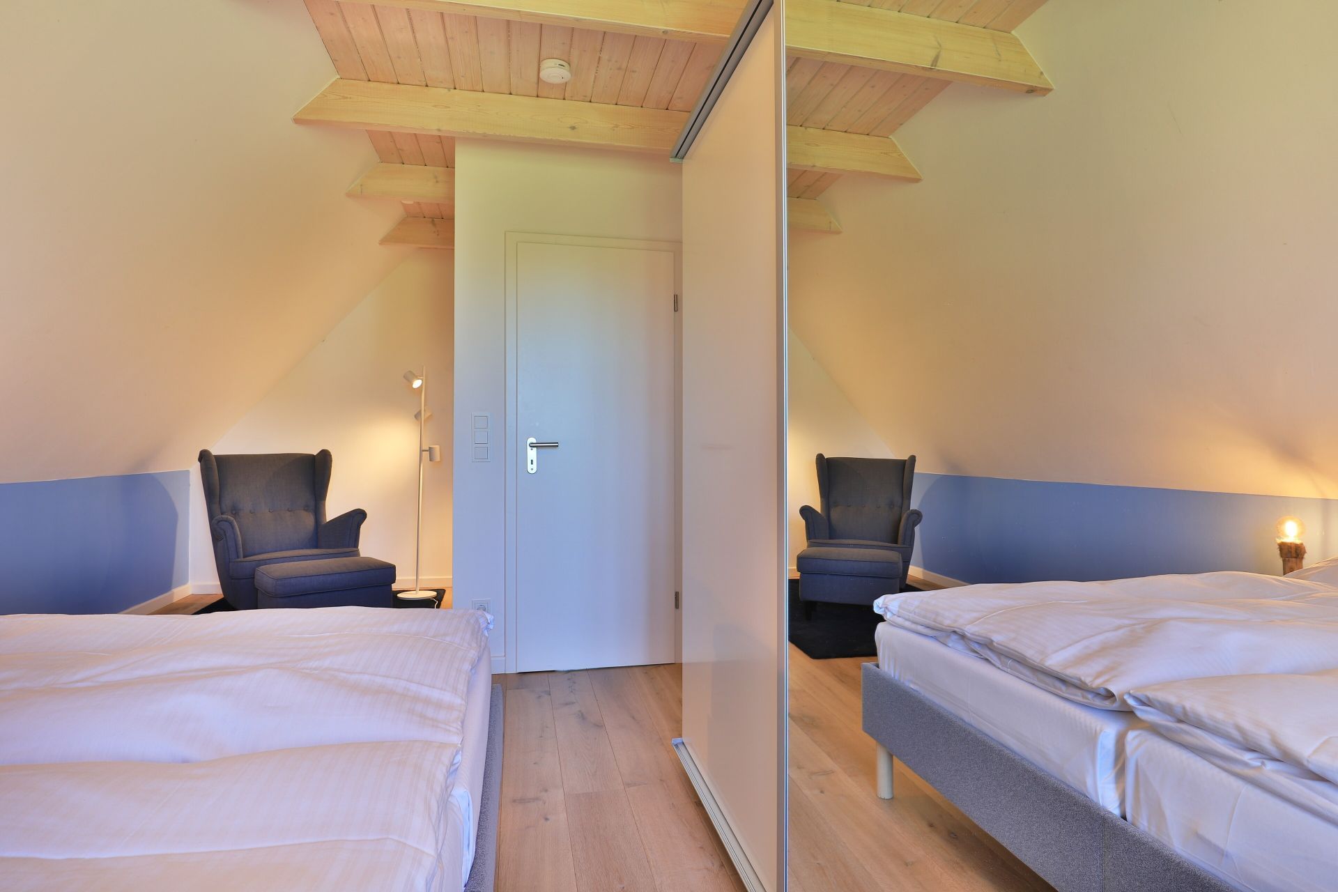 Sehr komfortabel und nur 500 Meter zum Strand ist dieses Feriendomizil vor allem für Familien bestens geeignet. Der großzügige Garten erfreut Kinderherzen mit Rutsche und Klettergerüst. Auch an Bollerwagen, Spielsachen, Kinderreisebett und Kinderhochstuhl wurde gedacht. Urlaub umgeben von Natur und Meer. Auf 113 m² Wohnfläche unterteilt sich das Haus in einen schicken Wohnbereich ? Fernseher und DVD Player- Kaminofen mit Kinderschutzabsperrung, bequemen Sitzmöbeln sowie einen Essbereich mit großem Esstisch für 6 Personen, an den die integrierte sehr gut ausgestattete Küchenzeile mit Geschirrspüler, Ceranfeldherd, Backofen, Kühlschrank & Gefrierschrank grenzt. Nach Herzenslust können Sie hier leckere Mahlzeiten zubereiten. Auch ein modernes Duschbad und ein Hauswirtschaftsraum mit Waschmaschine befinden sich im Erdgeschossbereich. Vom Wohnzimmer aus gelangen Sie auf die schöne Terrasse, wo Sie herrlich Entspannen können. Über eine Holztreppe erreichen Sie das Obergeschoss mit drei separaten Schlafzimmern 1x Doppelbett 1,60m x 2,00m ? 1x Doppelbett 1,40m x 2,00m- zwei Einzelbetten 0,90m x 2,00m- sowie dem großzügigen Vollbad mit Badewanne, Dusche und zwei Waschtischen. Bei diesem Angebot handelt es sich um ein Haus für Nichtraucher ohne Haustiere. Für Ihren PKW steht ein kostenfreier Stellplatz direkt am Haus bereit.