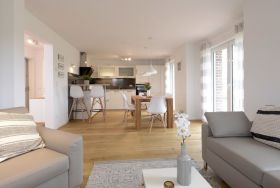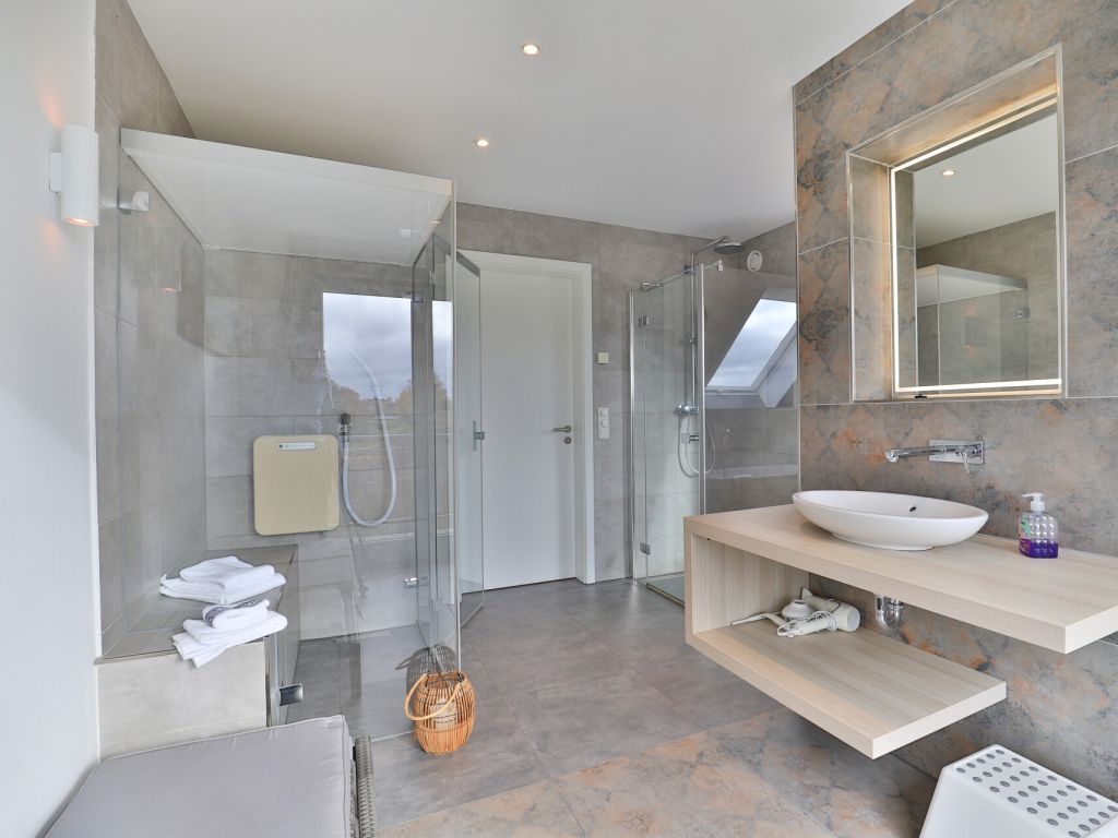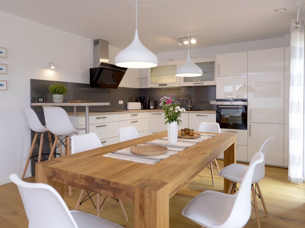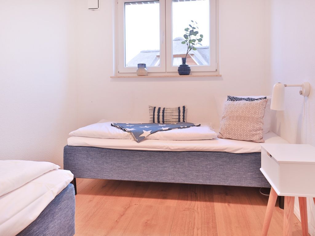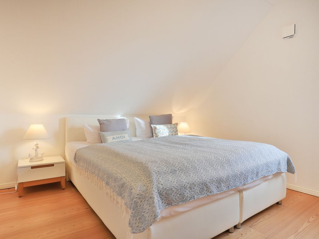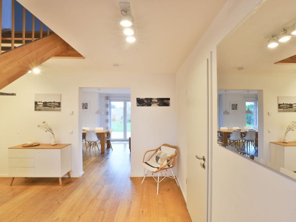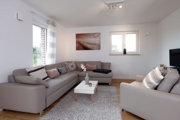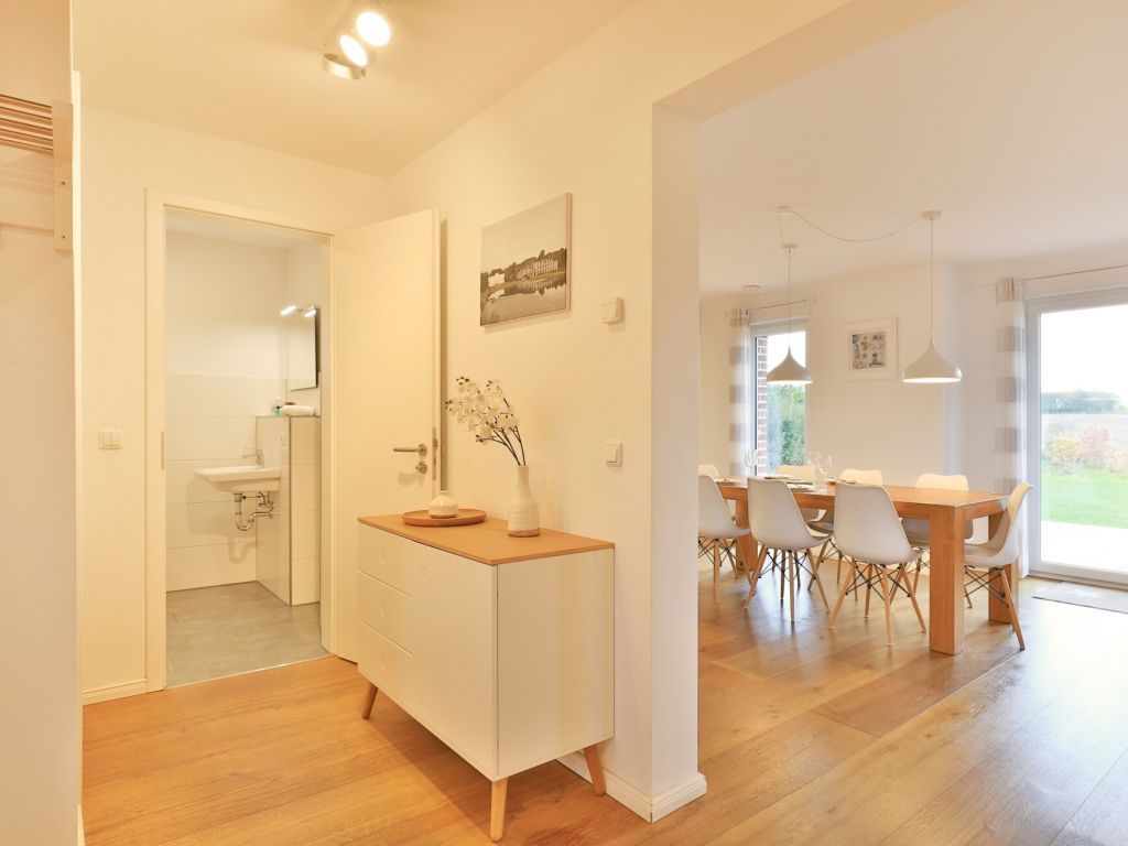 Für unsere Gäste, die sich einen ganz besonderen Urlaub wünschen, bieten wir dieses außergewöhnlich schöne Ferienhaus für bis zu 8 Personen ? max. 6 Erwachsene- Die lichtdurchflutete Wohnfläche von 136 m² ist perfekt unterteilt in einen sehr modernen Wohnbereich mit Komfortsofa, Fernseher, Musikanlage, Telefon und angrenzender offener Küchenzeile, mit neuester Technik ? Geschirrspüler, Induktionsherd, Backofen, Dunstabzug, Mikrowelle, Kühlschrank mit Gefrierfach u.v.m. Der große Esstisch lädt zu gemeinsamen Mahlzeiten ein und Sie blicken von dort in den schönen, durch eine Hecke blickgeschützten Garten. Das Highlight ist der Spa-Bereich im 1. Obergeschoss mit einem geräumigen Wellness-Bereich mit Ruheliege, in dem Sie die Sauna sowie das separate Dampfbad, eine Rain-Dance Dusche und auch einen Kneippschlauch für gesunde Anwendungen nutzen können. Des Weiteren befinden sich vier separate Schlafzimmer im Obergeschoss 2x mit Doppelbett und 2x mit jeweils 2 Einzelbetten. In dem familienfreundlichen Feriendomizil sind selbstverständlich auch ein Bollerwagen, Kinderhochstuhl und Kinderreisebett sowie eine Waschmaschine vorhanden. Wlan steht kostenfrei zur Verfügung. Zwei PKW Stellplätze befinden sich direkt am Ferienhaus 3 Meeresperlen. In dem Nichtraucher- Traumferienhaus sind Haustiere nicht gestattet. Es wird eine Kaution von 250,00 Euro erhoben. Strom und Heizung werden nach Verbrauch gegen Gebühr abgerechnet.