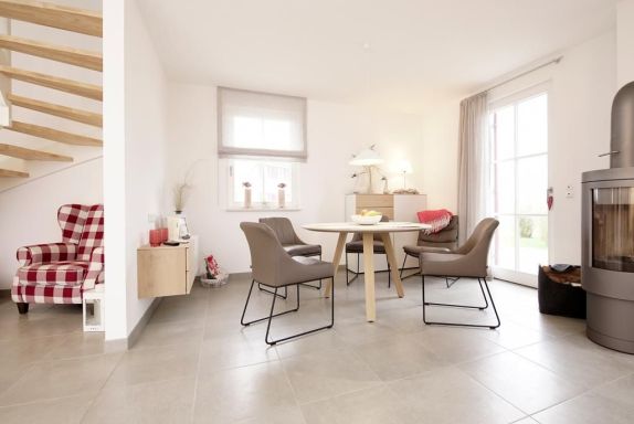 Modern und komfortabel verbringen Sie einen traumhaften Urlaub in diesem besonders hochwertig ausgestatteten Reetdach-Ferienhaus mit Kaminofen und hauseigener Sauna. Das schicke Domizil bietet für bis zu 4 Personen geräumigen Wohnraum von 106qm und ist unterteilt in einen hellen Wohn-/Essbereich mit voll ausgestatteter Küchenzeile sowie einem großen Esstisch mit 4 Sitzplätzen und Blick auf die Terrasse mit Strandkorb. Selbstverständlich sind Flachbild- TV, Musikanlage vorhanden und WLAN können Sie kostenfrei nutzen. Machen Sie es sich so richtig gemütlich auf der bequemen Couch oder im Lesesessel. Die Küchenzeile verwöhnt mit allem, was zur Zubereitung der Urlaubsmahlzeiten benötigt wird ? Geschirrspüler, Ceranfeld-Herd mit Backofen, Dunstabzugshaube, Mikrowelle, Kaffeemaschine, Wasserkocher, Toaster u.s.w. Ein helles Duschbad mit Sauna ist ebenso im Erdgeschoß des Hauses vorhanden. Drei separate Schlafzimmer befinden sich im Obergeschoss, das Sie über eine Holztreppe erreichen. 1x mit einem Doppelbett, Kleiderschrank, Schreibtisch und 2x mit jeweils einem Einzelbett. Sehr großzügig ist auch das schicke Vollbad im Obergeschoss mit Badewanne, Dusche, WC und Tagesfenster. Gäste mit Hund (5?/Tag) sind im Haus ?Roter Milan? herzlich willkommen. Brötchenlieferservice möglich. Ihren PKW parken Sie kostenfrei auf dem Außenstellplatz. Kaution in Höhe von 200? ist zu zahlen.