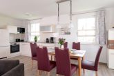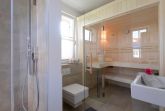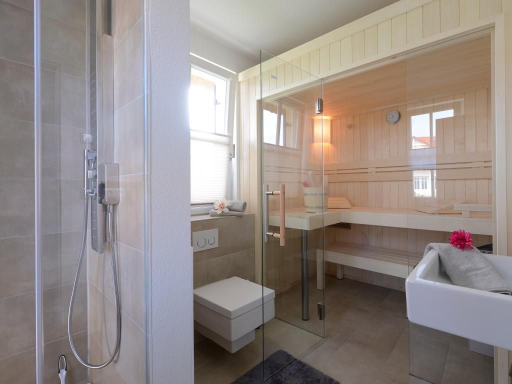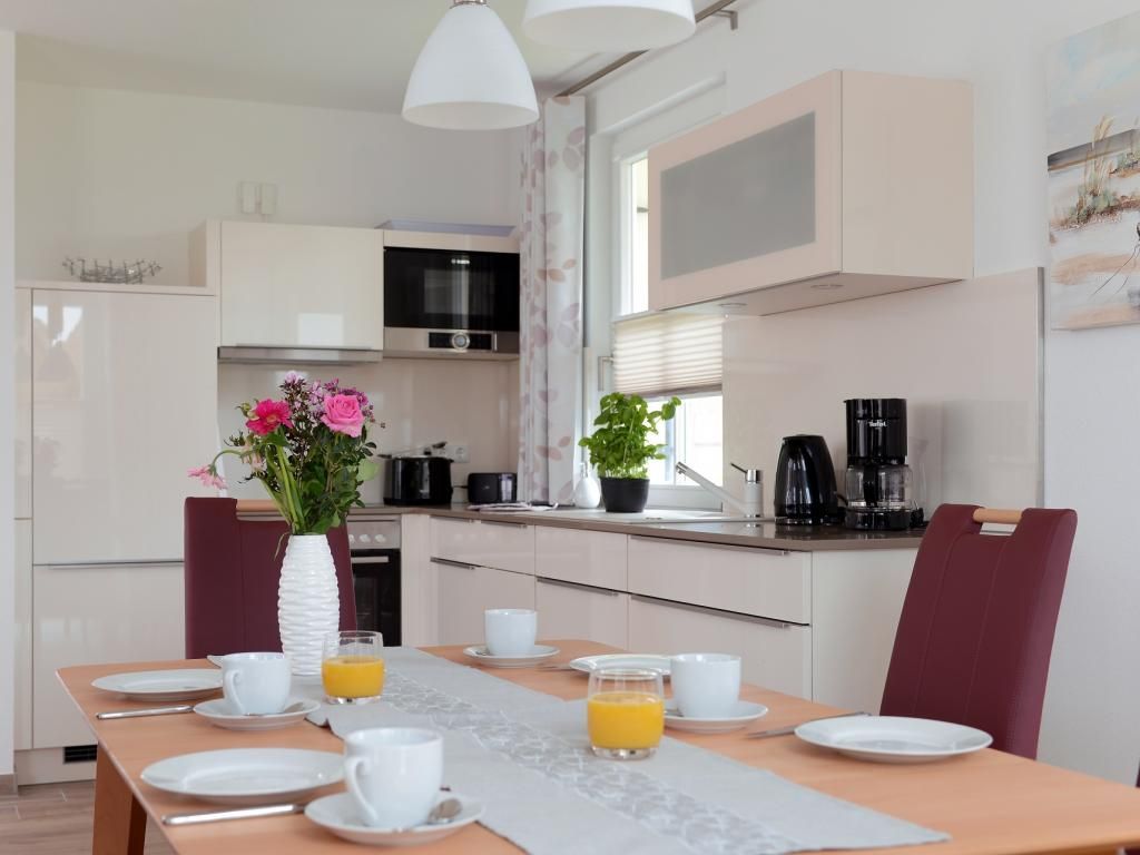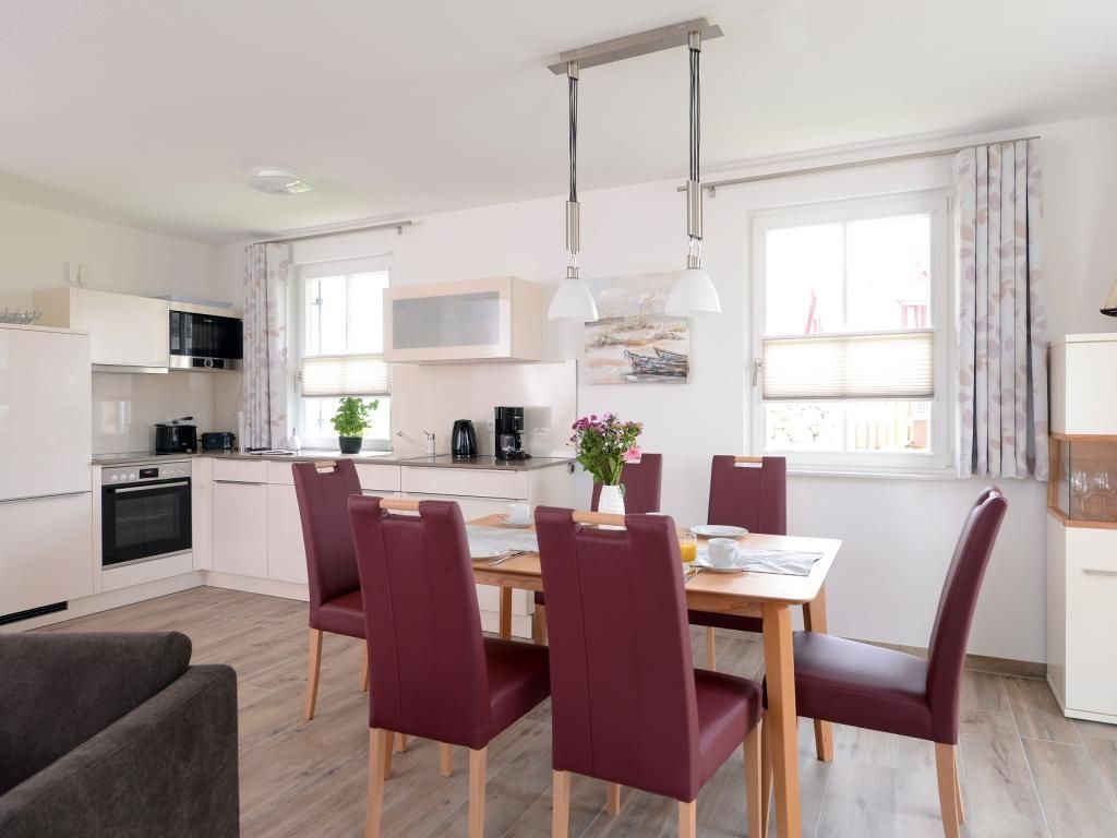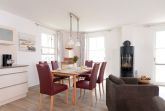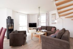 Hier begrüßt Sie ein wahres Traumhaus unter Reet. Bis zu 5 Erwachsenen + 1 Kleinstkind bietet das exklusive Domizil eine Wohnfläche von 88qm die sich unterteilt in einen sehr geschmackvoll, farblich behaglich eingerichteten Wohnbereich mit schicker Sofalandschaft (auch Schlaffunktion für 1 Person), Kamin, Flachbild TV, Musikanlage, WLAN Nutzung kostenfrei. Die integrierte Wohn-/Küchenzeile bietet allen Komfort, den Sie sich wünschen, um Ihre Urlaubsmahlzeiten bequem zu bereiten zu können. Geschirrspüler, Ceranfeldherd, Kühl-/Gefrierkombination, Mikrowelle, Toaster, Kaffeemaschine u.v.m. Ihre gemeinsamen Mahlzeiten nehmen Sie am großen Esstisch ein, oder wenn es das Wetter erlaubt, auf der wunderschönen Außenterrasse mit Blick in den Garten. Entspannen sie hier im Strandkorb, oder schweben Sie entspannt in der Seelenwiege. Auch ein Kamingrill befindet sich auf dem 700qm großen Gartengrundstück. Ebenso befindet sich im Erdgeschossbereich ein sehr modernes Duschbad mit Saunakabine. Das Haus verfügt im Obergeschoss über 2 separate Schlafzimmer 1x mit Doppelbett, Kinderbett, Fernseher sowie Kleiderschrank. 1x mit zwei Einzelbetten wovon eines einen zusätzlichen Schlafplatz per Auszugsfunktion ermöglicht. Auch ein weiteres Badezimmer mit Badewanne und Dusche ist in der oberen Ebene. Alle Schlafräume sind mit Verdunkelungsgardinen ausgestattet und im ganzen Ferienhaus sorgt eine Fußbodenheizung für wohlige Wärme. Waschmaschine und Wäschetrockner sind vorhanden. Insbesondere wurden Kinder als Gäste berücksichtigt mit Hochstuhl, Kinderbett, Treppenschutzgitter, Kindergeschirr und Bollerwagen. Für selbst mitgebrachte Fahrräder nutzen Sie gerne das Gartenhaus. Am Anreisetag ist eine Kaution in Höhe von 200 Euro in bar zu hinterlegen.