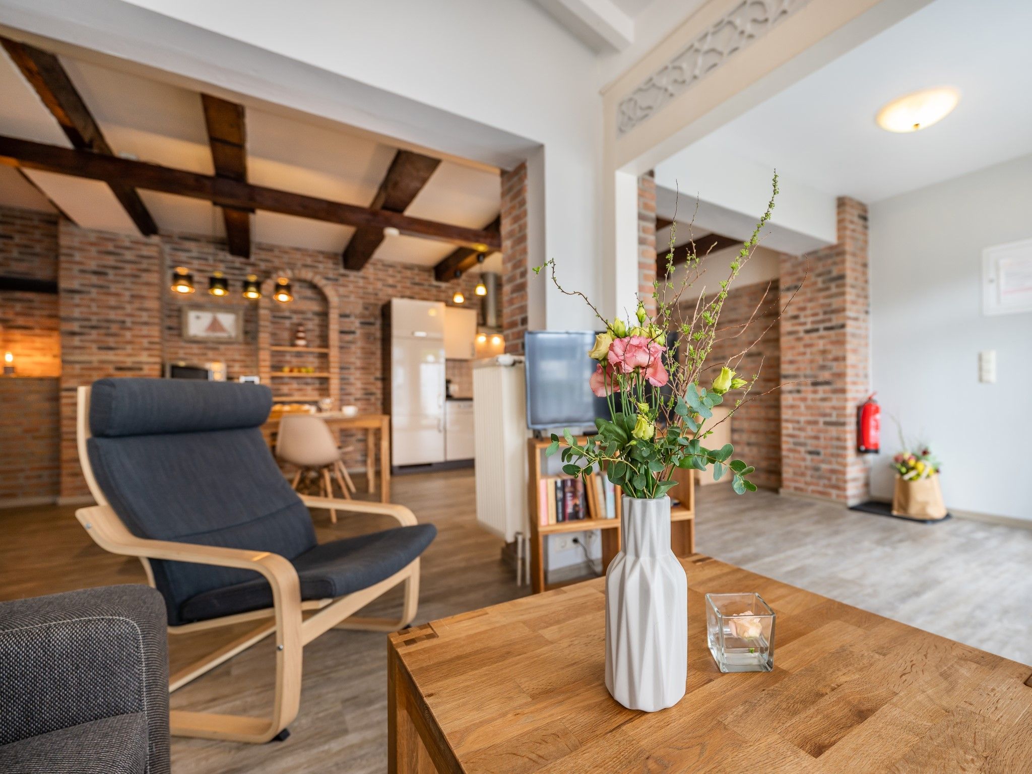 • Flachbildfernseher, Radio, CD, Kamin (Ethanol)