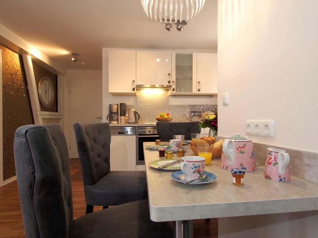 Als Unterhaltungstechnik bieten insgesamt 2 Fernseher, eine DVD-Player sowie Musikanlage, WLAN ohne Gebühr etwas Abwechslung. Auch ein Esstisch ist im Wohnbereich vorhanden. Für die perfekte Eigenversorgung ist die integrierte Wohnküche bestens ausgestattet: Ceranherd, Backofen, Mikrowelle, Dunstabzug, Kühlschrank mit integr. Gefrierfach, Geschirrspüler, Kaffeemaschine, Wasserkocher, Toaster usw.
