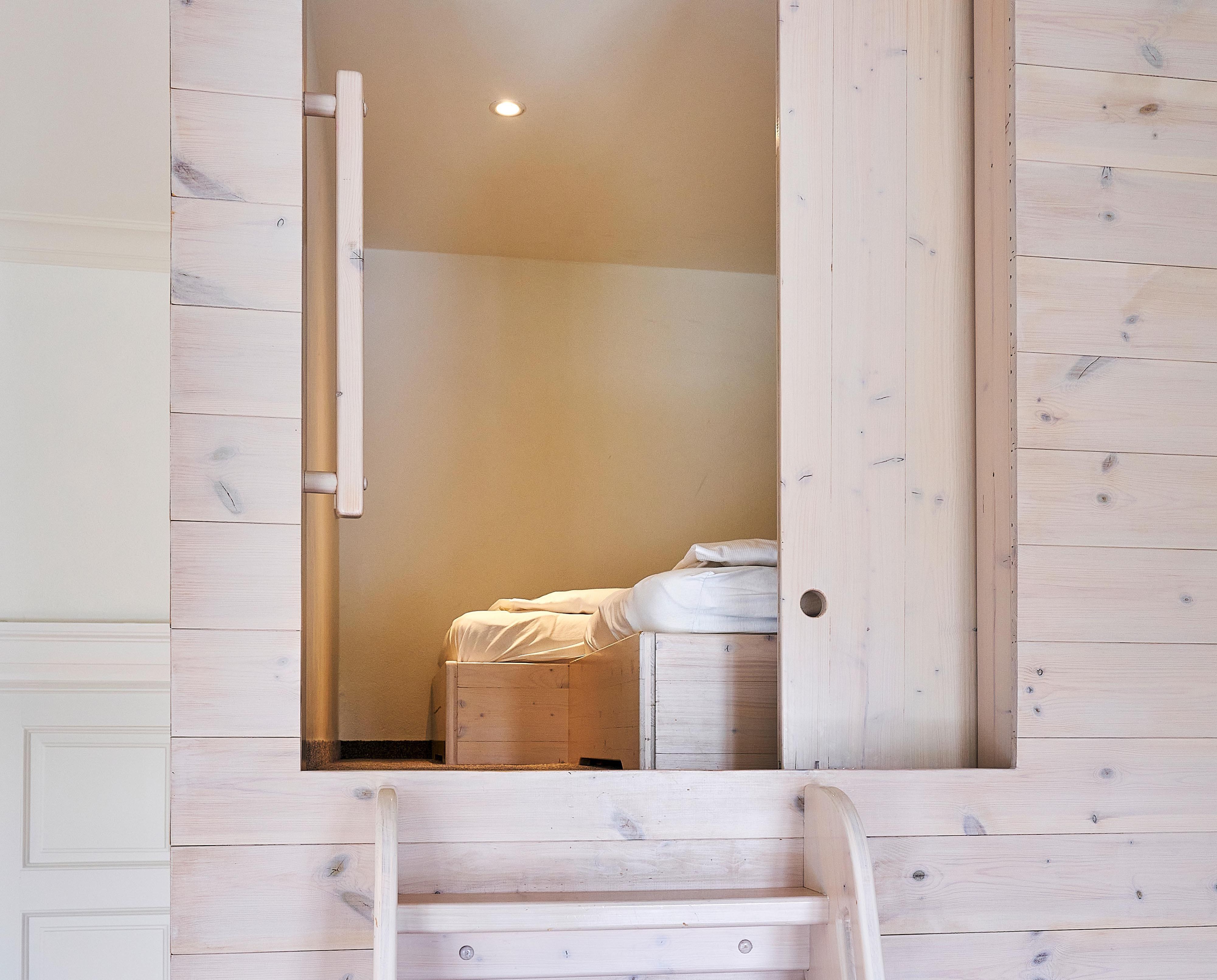- Hems/Schlafboden mit 2 bodennahen Einzelbetten (Matratzen auf eingerahmtem Lattenrost); Bettwäsche