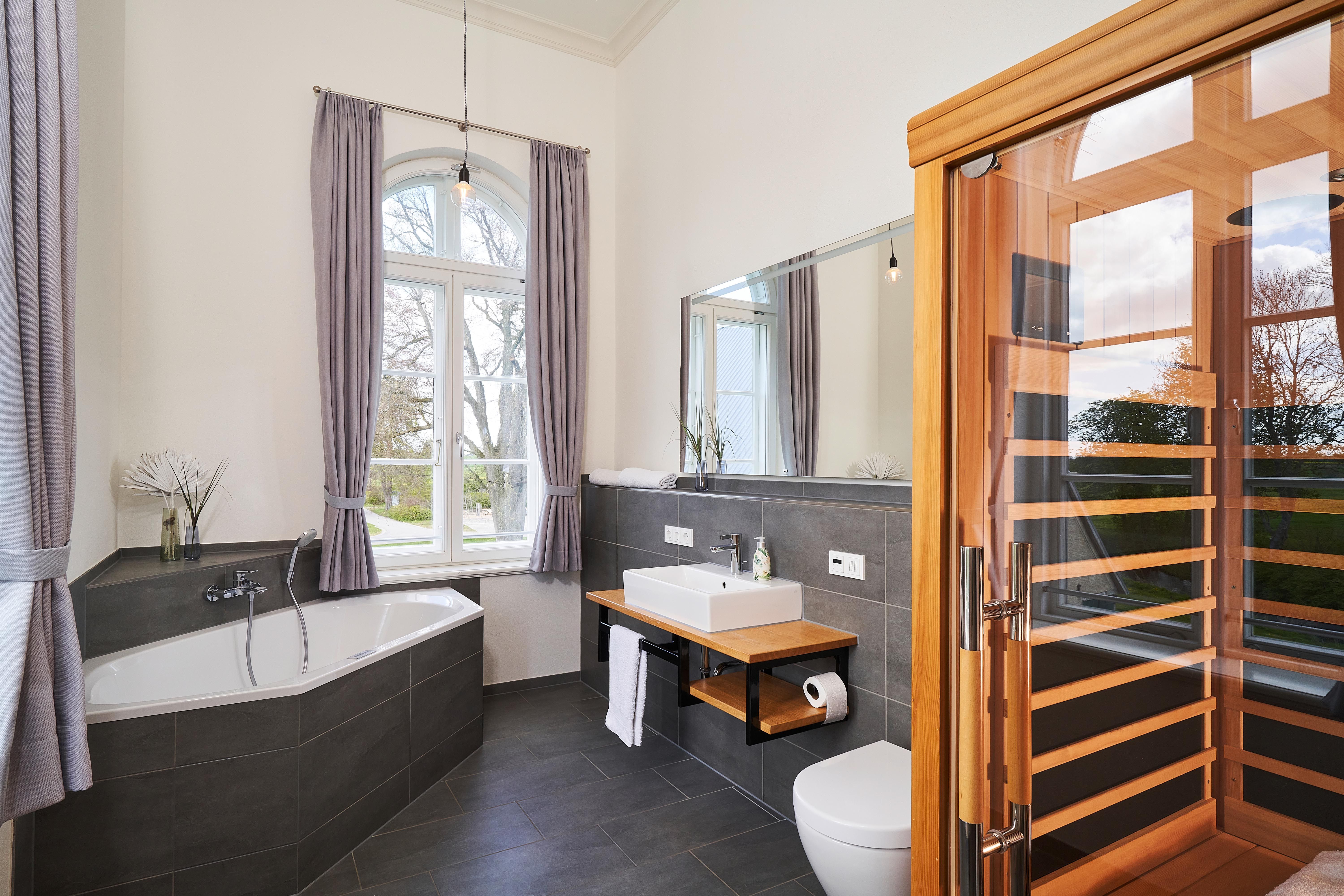 - Vollbad mit Infrarotkabine, Whirlbadewanne und Dusche; Handtücher inklusive