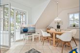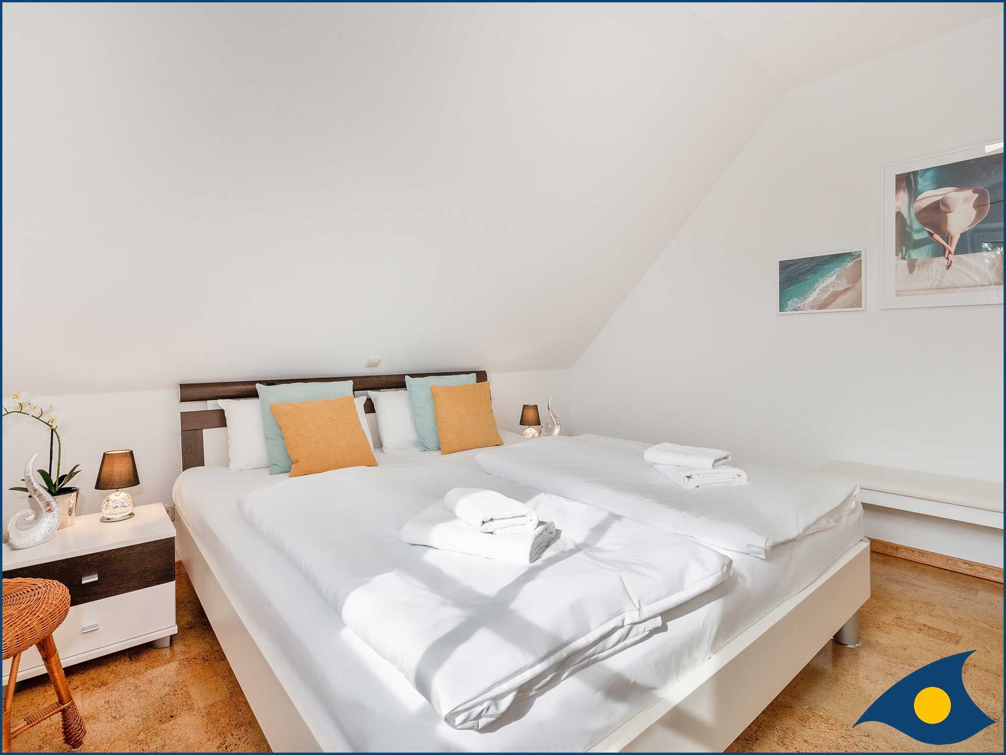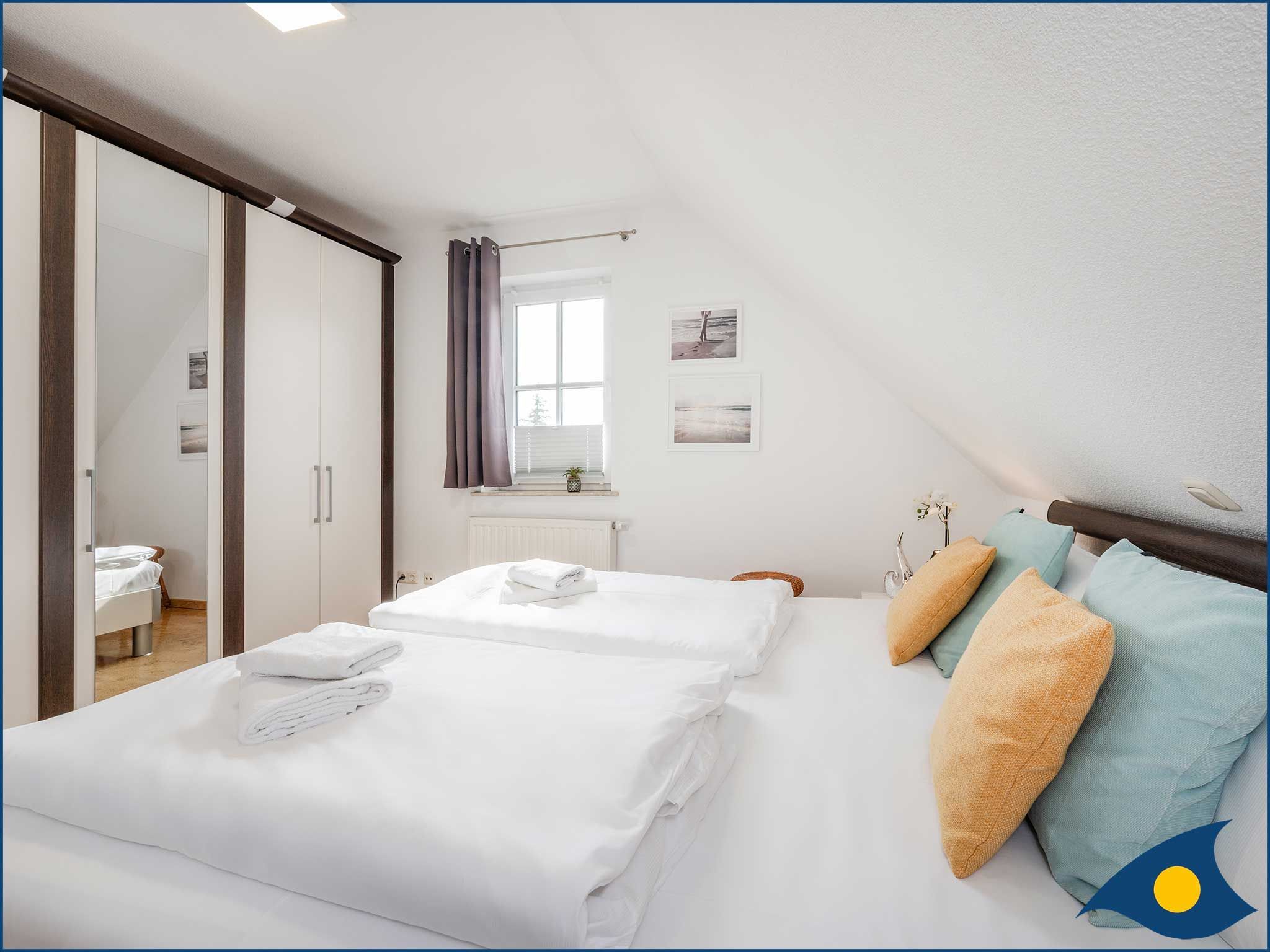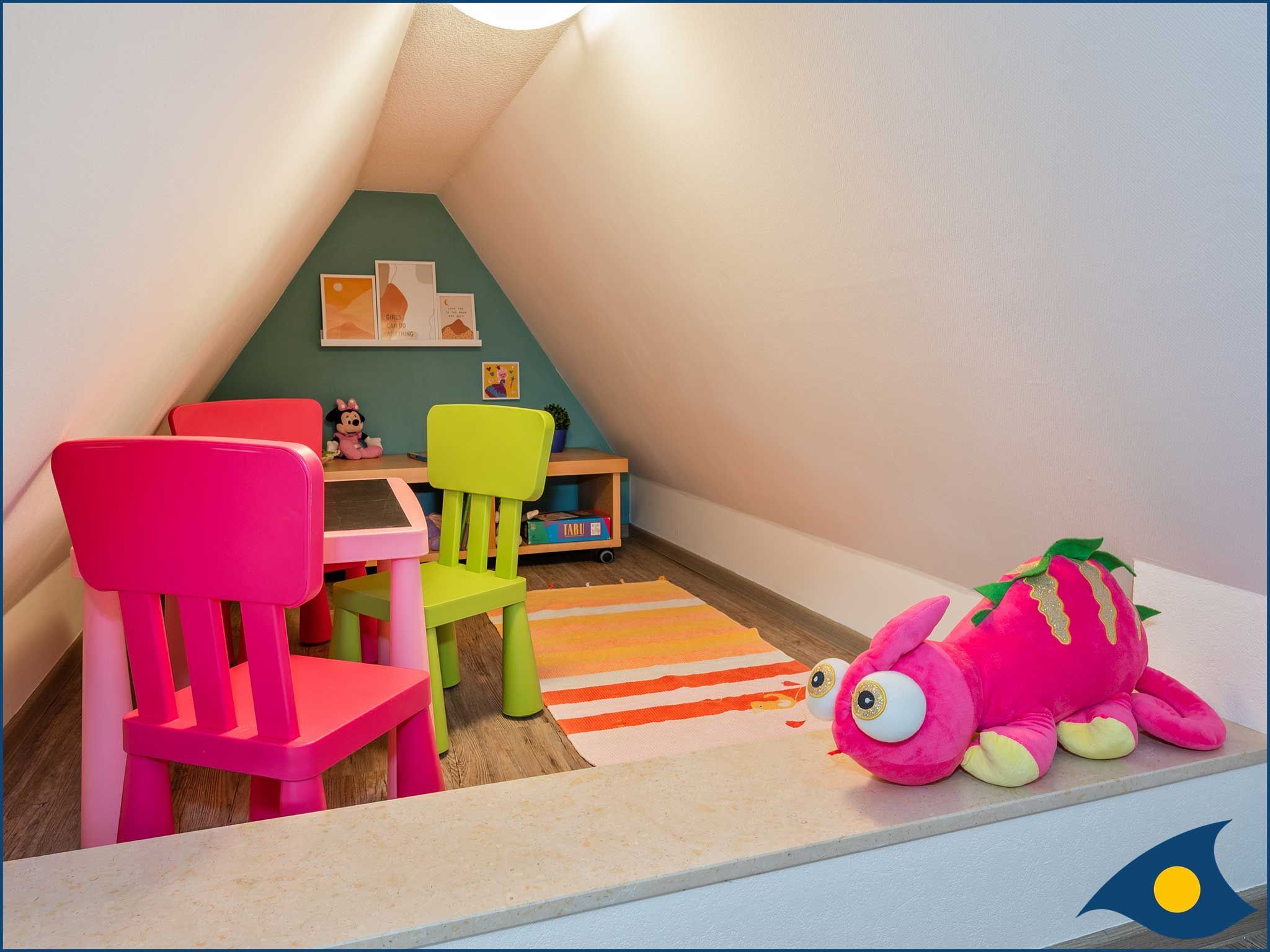 Die Ferienwohnung HUGO bietet mit ihren ca. 65 qm Platz für 2 4 Personen im Obergeschoss rechts des FRÄULEIN LODDIN. Zwei Personen finden ihren Schlafplatz im gemütlichen, ausgebauten Spitzboden mit separater Sitzecke und Spielzimmer. Die Erstausstattung Bettwäsche und Handtücher sind inklusive.