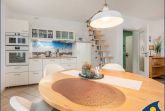 Über den komfortablen Wohn- / Essbereich mit voll ausgestatteter Küchenzeile gelangt man auf den Balkon mit Gartenblick. Entspannen können Sie auch im Garten oder nutzen Sie die Grillterrasse.