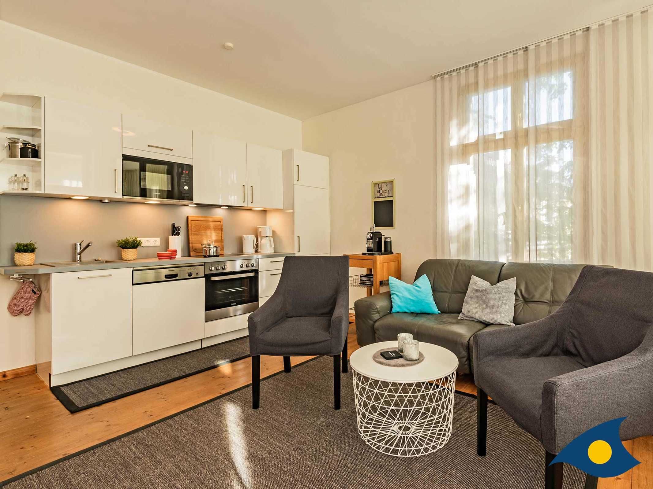 Die hochwertige, geschmackvolle Einrichtung sowie der überdachte Balkon laden zum Urlauben und Wohlfühlen ein. Für Ihr Fahrzeug steht ein kostenloser Pkw-Stellplatz am Haus zur Verfügung. Eine Waschmaschine und der Trockner sind gegen ein kleines Entgelt im Nachbarhaus Solaris nutzbar.