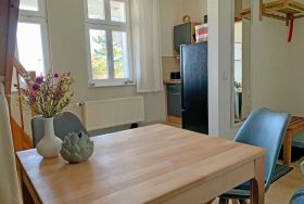 Die 2-Raum-Maisonette-Ferienwohnung hat einen schönen Ostseeblick von allen Zimmern aus. Sie ist ca. 70 qm groß, hat Platz für maximal 4 Erwachsene und 1 Kind bis 3 Jahre im Kinderreisebett. Die Wohnung wurde modern und komfortabel eingerichtet und verfügt auch über einen WLAN-Internetanschluss.