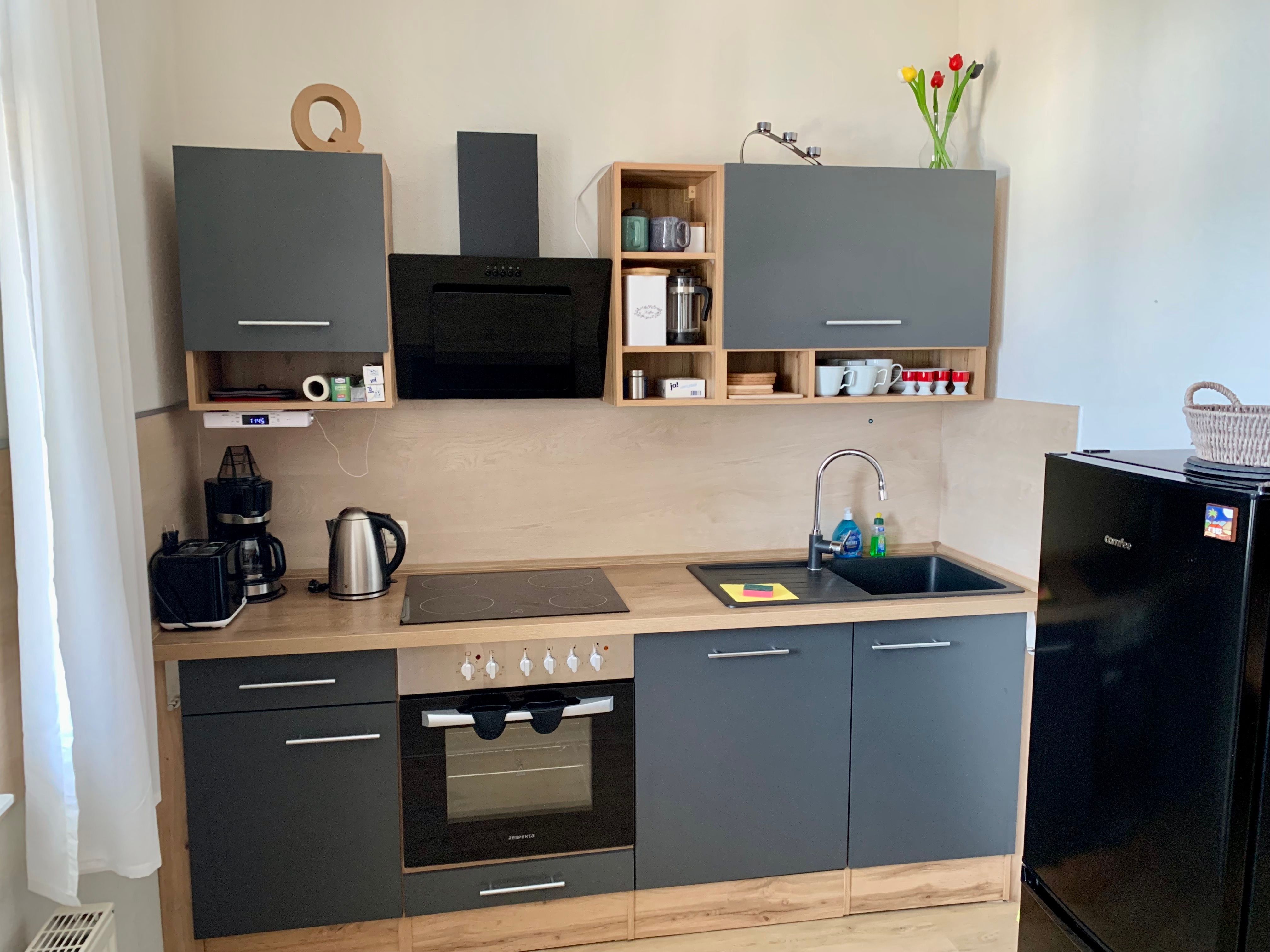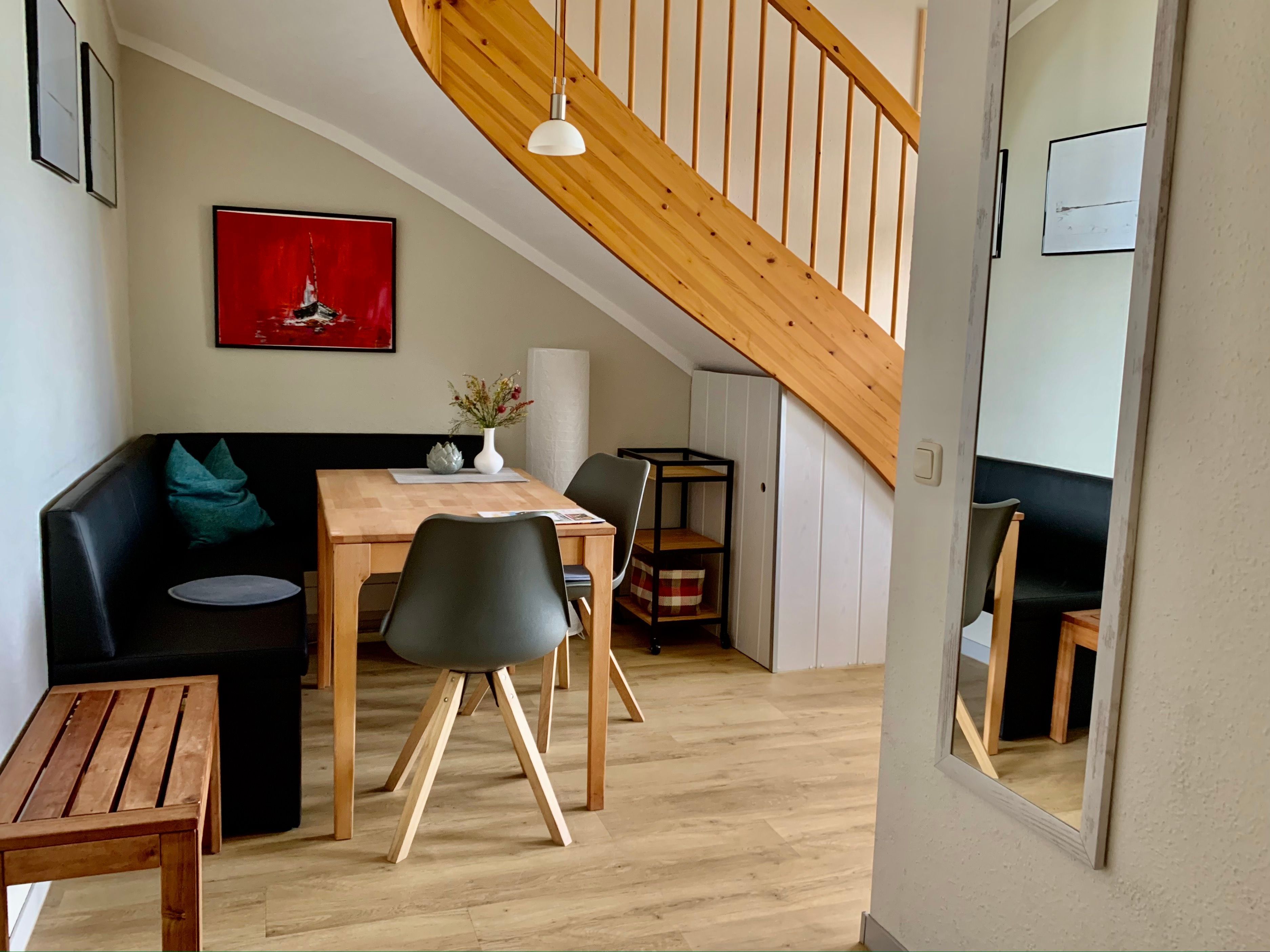 Die Nichtraucher-Ferienwohnung (separater Eingang, 70 qm, 1 Wohnzimmer, 1 Schlafzimmer, Küchenzeile, Bad mit Dusche und WC, WLAN-Internet, max.  4 erwachsene Gäste und ein Kind im Kinderreisebett) ist modern und komfortabel eingerichtet.