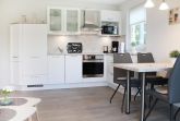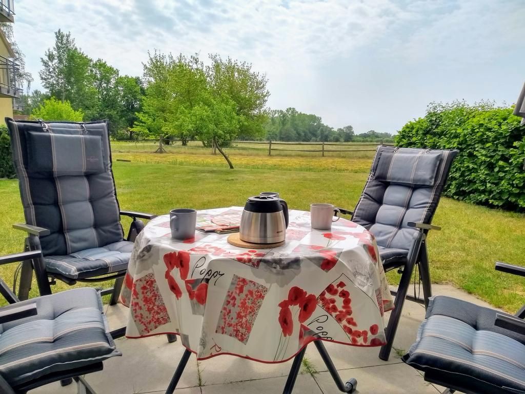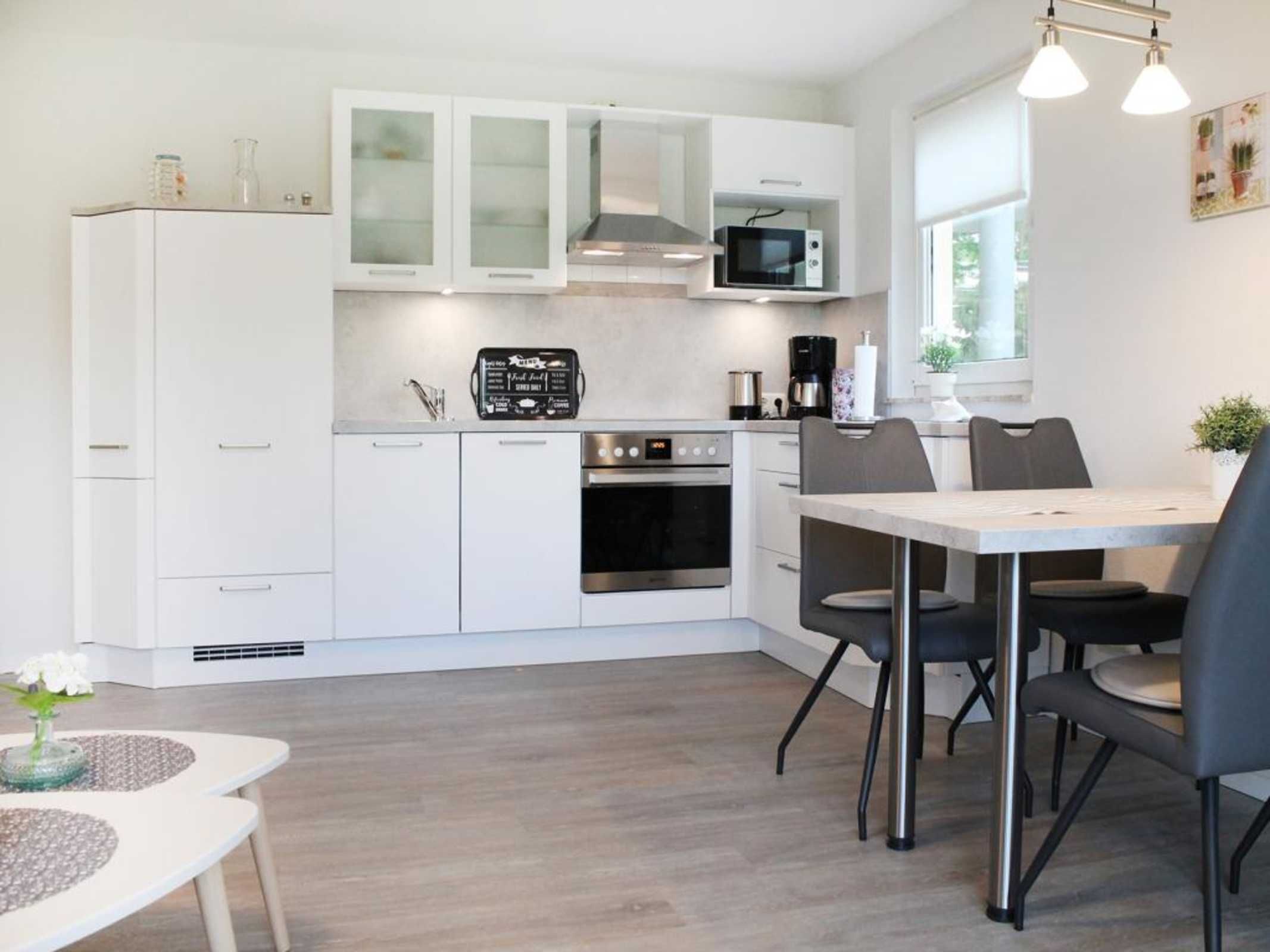 Entspannte Ferien verbringen Sie mit bis zu 4 Personen und gerne auch mit Hund (gegen Gebühr) in dem modernen Feriendomizil -Godewind1- . Die Wohnfläche umfasst 52qm und ist unterteilt in einen sehr geschmackvoll und hochwertig eingerichteten Wohn-/Essbereich mit gemütlichem Sofa, Ruhesessel mit Fußhocker, Flachbild-TV, DVD, Musikanlage, WLAN. Die bestens ausgestattete offene Küchenzeile bietet Ceranfeldherd, Backofen, Dunstabzug, Mikrowelle, Geschirrspüler, Kühlschrank mit Gefrierfach, Kaffeemaschine, Toaster, Wasserkocher u.v.m. Gemeinsam Speisen können Sie an dem großen Esstisch. Vom Wohnzimmer aus gelangen sie auf die sonnige Terrasse mit Blick über die Wiesen, Pferdekoppeln bis hin zum Tarnewitzer Wald. Das 1. Schlafzimmer ist komfortabel eingerichtet mit Boxspringbett (1,80x2,00m), Kleiderschrank und einem TV Gerät. Das 2. Schlafzimmer bietet ein Etagenbett sowie Kleiderschrank. Hell gefliest ist das geräumige Duschbad und ist zudem mit Fön und Waschmaschine ausgestattet. Zum Appartement -Godewind 1- gehört ein kostenfreier PKW-Stellplatz. Ihre mitgebrachten Fahrräder können Sie in einem abschließbaren Abstellraum einstellen. Das farblich dezent aufeinander abgestimmte Nichtraucher Ferienapartment lädt ganzjährig zu Wohlfühlmomenten ein. In nur 180 Meter erreichen sie den feinsandigen Strand. Herrliche Spazierwege beginnen sozusagen vor der Haustür.