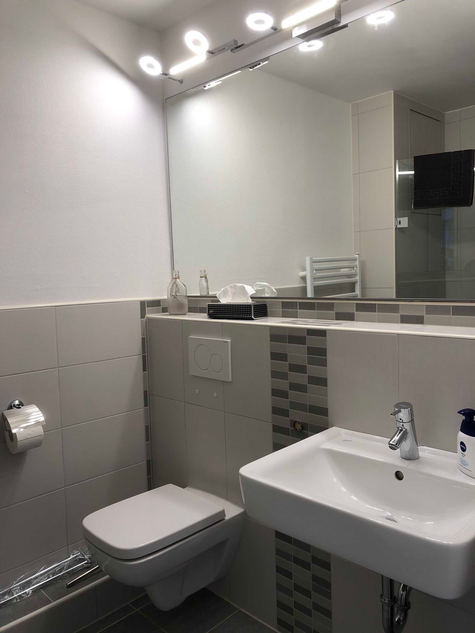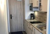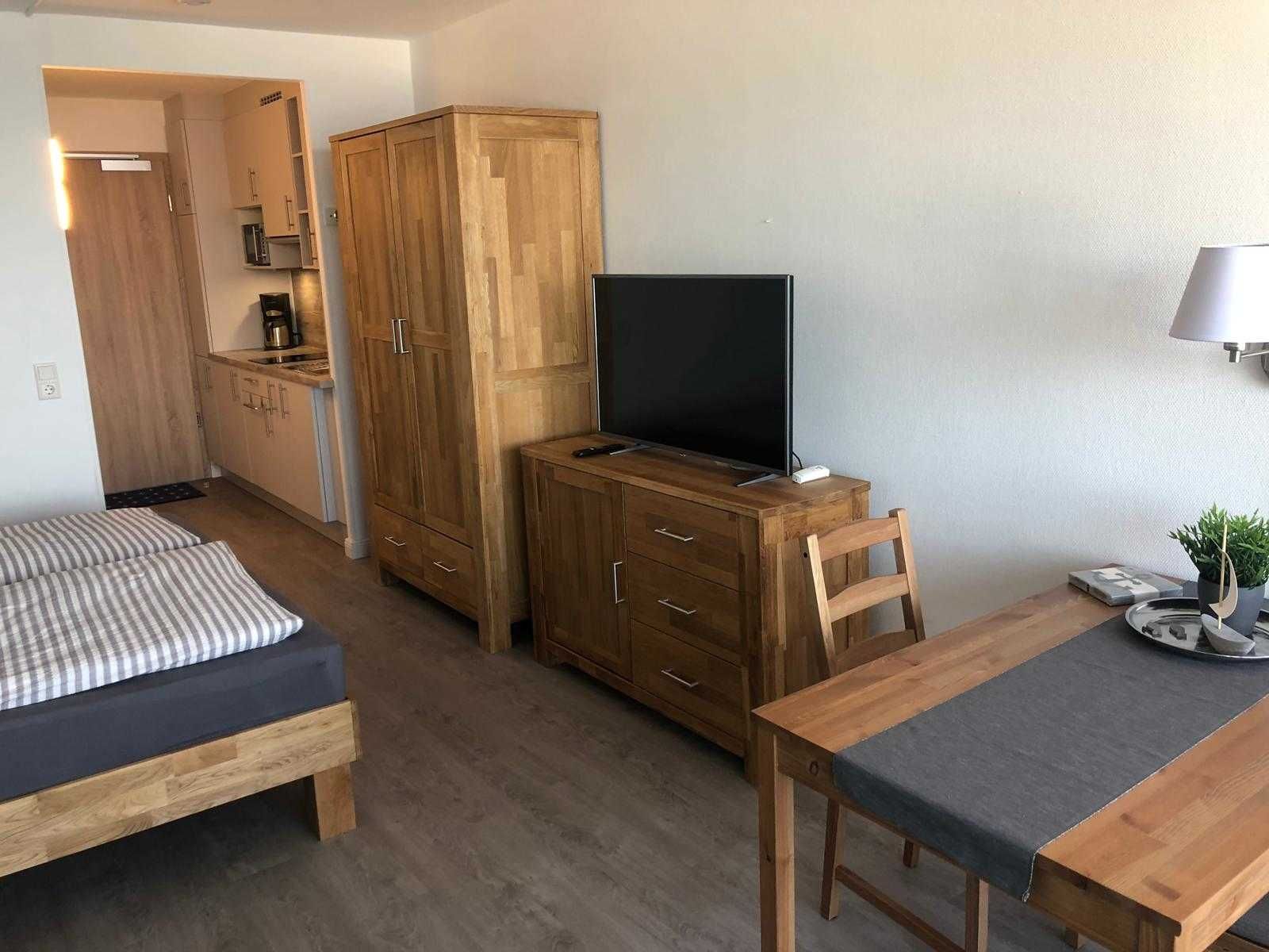 Komplett neu renoviertes 1-Zimmer-Appartement (3. OG) für 2 - 3 Personen mit Duschbad, Küchenzeile, Balkon und Meerblick.