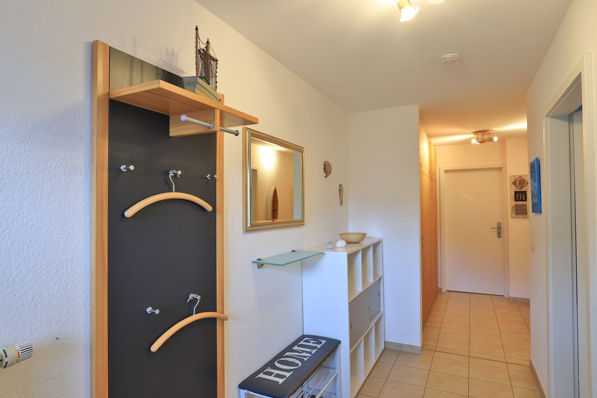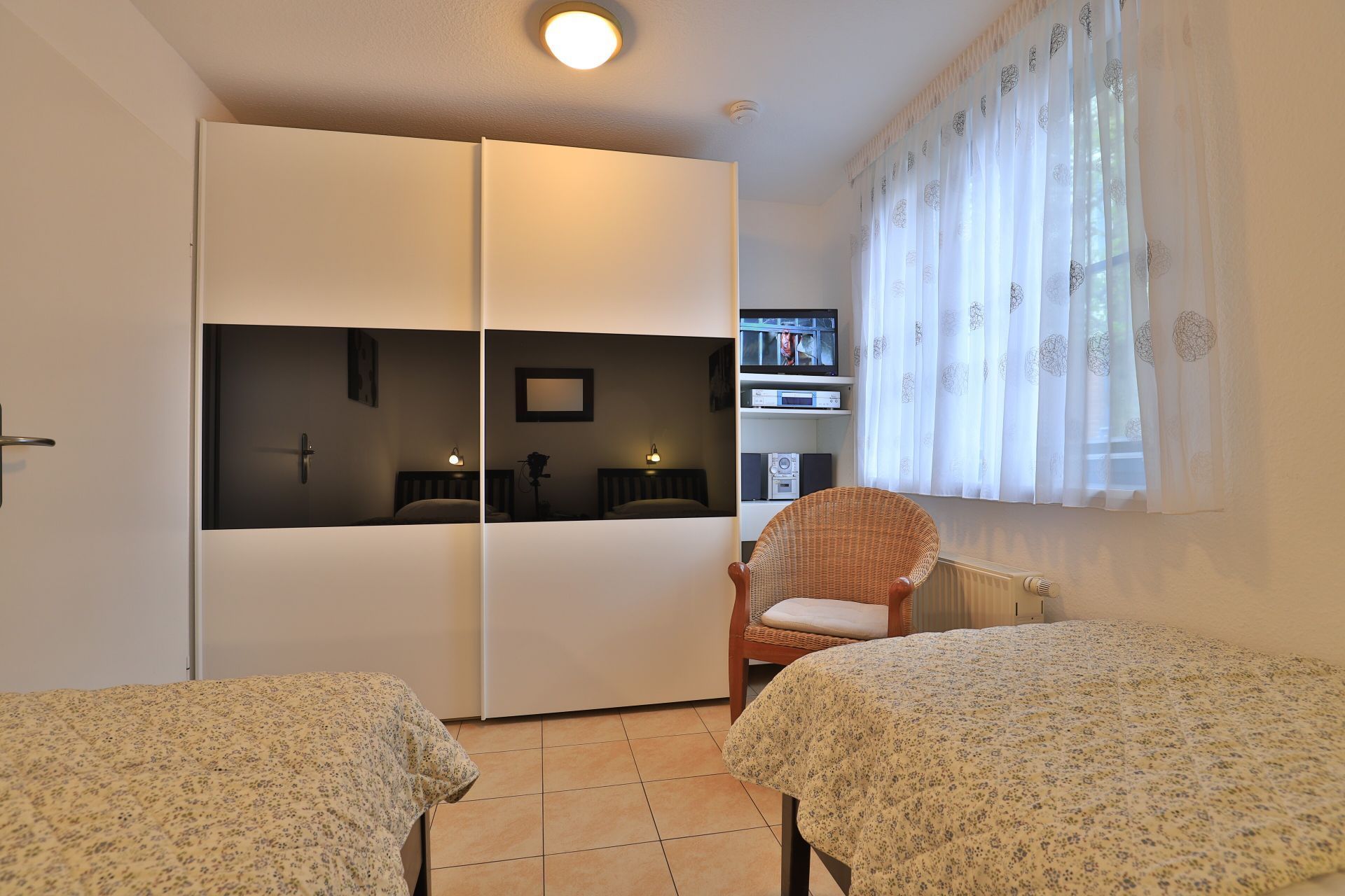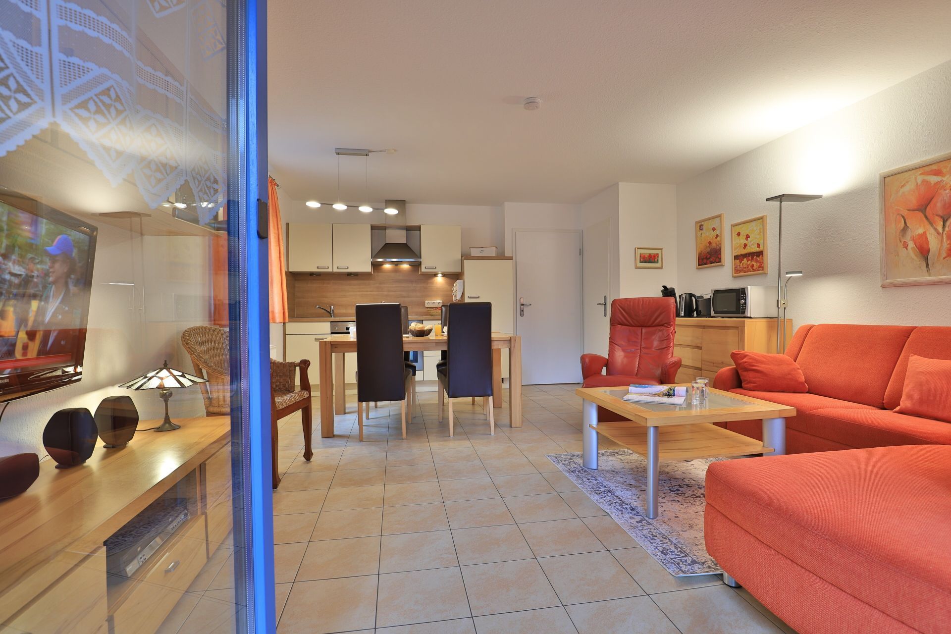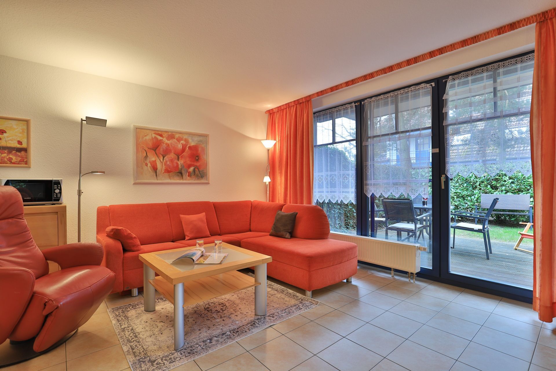 Die 2- Zimmer Ferienwohnung Papillon 12- ist behaglich möbliert und insgesamt gut ausgestattet. Die Wohnfläche beträgt von 55qm und kann mit bis zu 4 Personen bewohnt werden. Der Wohn-/Essbereich ist mit einem Sofa, das auch als Schlafsofa für zwei Personen nutzbar ist, eingerichtet und weitere Sitzmöglichkeiten sowie ein Relax Sessel, Fernseher, DVD-Player, Musikanlage, kostenfreie WLAN-Nutzung sind vorhanden. Die saisonal möblierte Süd- Terrasse lädt zum Entspannen ein. Ein Elektrogrill ermöglicht Grillen auf der Terrasse. In der modernen Wohnküche stehen Ceranherd, Backofen, Mikrowelle, Dunstabzug, Geschirrspüler sowie Kühlschrank mit integr. Gefrierfach, Kaffeemaschine, Toaster und Wasserkocher bereit. Ihre Mahlzeiten nehmen Sie am Esstisch zu sich. Das separate Schlafzimmer empfängt Sie mit zwei Einzelbetten, Kleiderschrank und 2.Fernseher. Das teilweise modernisierte Tageslicht Duschbad ist mit Waschtisch, Föhn, WC ausgestattet. Gegen Gebühr können Sie im Untergeschoß des Hauses Waschmaschine und Wäschetrockner nutzen. Bügeleisen und Bügelbrett sowie ein Kinderhochstuhl, Kinderbett, Bollerwagen sind ebenso vorhanden. Ihren PKW parken Sie kostenfrei auf dem wohnungseigenen Außenstellplatz. Bitte beachten Sie, dass es sich um eine Nichtraucherwohnung handelt. Kleine Hunde sind gegen eine Gebühr in Höhe von 10 Euro/Tag herzlich willkommen. Zur Ostsee gelangen Sie in nur ca. 250 Meter.