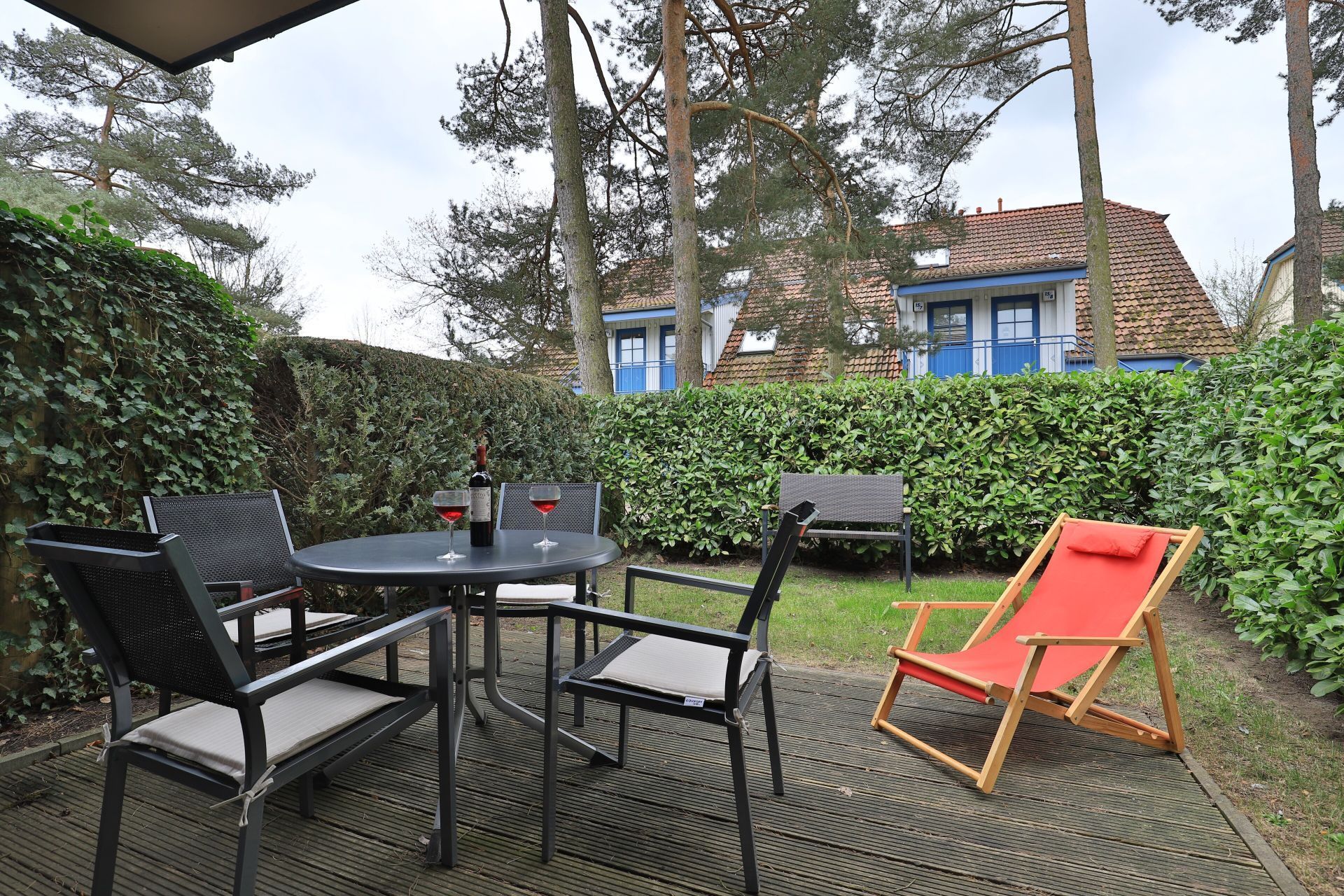 Nur 250 Meter zur Ostsee liegt die Ferienanlage Papillon. Als ideales Reiseziel für Familien, ist diese naturnahe Wohnanlage umgeben von altem Baumbestand, wo sich Kinder frei entfalten können. Nach einem kurzen Spaziergang gelangen Sie an den feinsandigen Strand mit guten Bademöglichkeiten, der während der Hauptsaison DLRG überwacht ist. Einkaufsmöglichkeiten sind ebenfalls in Kürze erreichbar. Die Anlage Papillon besteht insgesamt aus 18 Häusern, in denen sich jeweils 8 individuell eingerichtete Wohnungen befinden und jede Wohneinheit über eine Terrasse oder einen Balkon verfügt. Jede der Einheiten besitzt einen separaten Eingang, wobei die oberen Wohnungen über eine Außentreppe erreichbar sind. Die hier beschriebene 2- Zimmerwohnung Papillon 12-4 befindet sich im Erdgeschoss und verwöhnt mit einer Terrasse. Die Wohnfläche beträgt 55qm und kann mit bis zu 4 Personen bewohnt werden. Eine moderne Küchenzeile ist vorhanden. Separates Schlafzimmer. Duschbad mit WC. Waschmaschine und Wäschetrockner gegen Gebühr. Kinderhochstuhl, Kinderreisebett. WLAN kostenfrei. Ein PKW-Außenstellplatz. Nichtraucher, Haustiere willkommen.