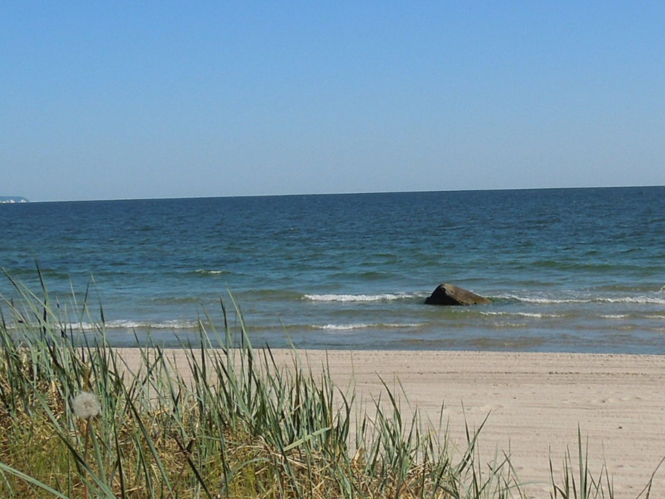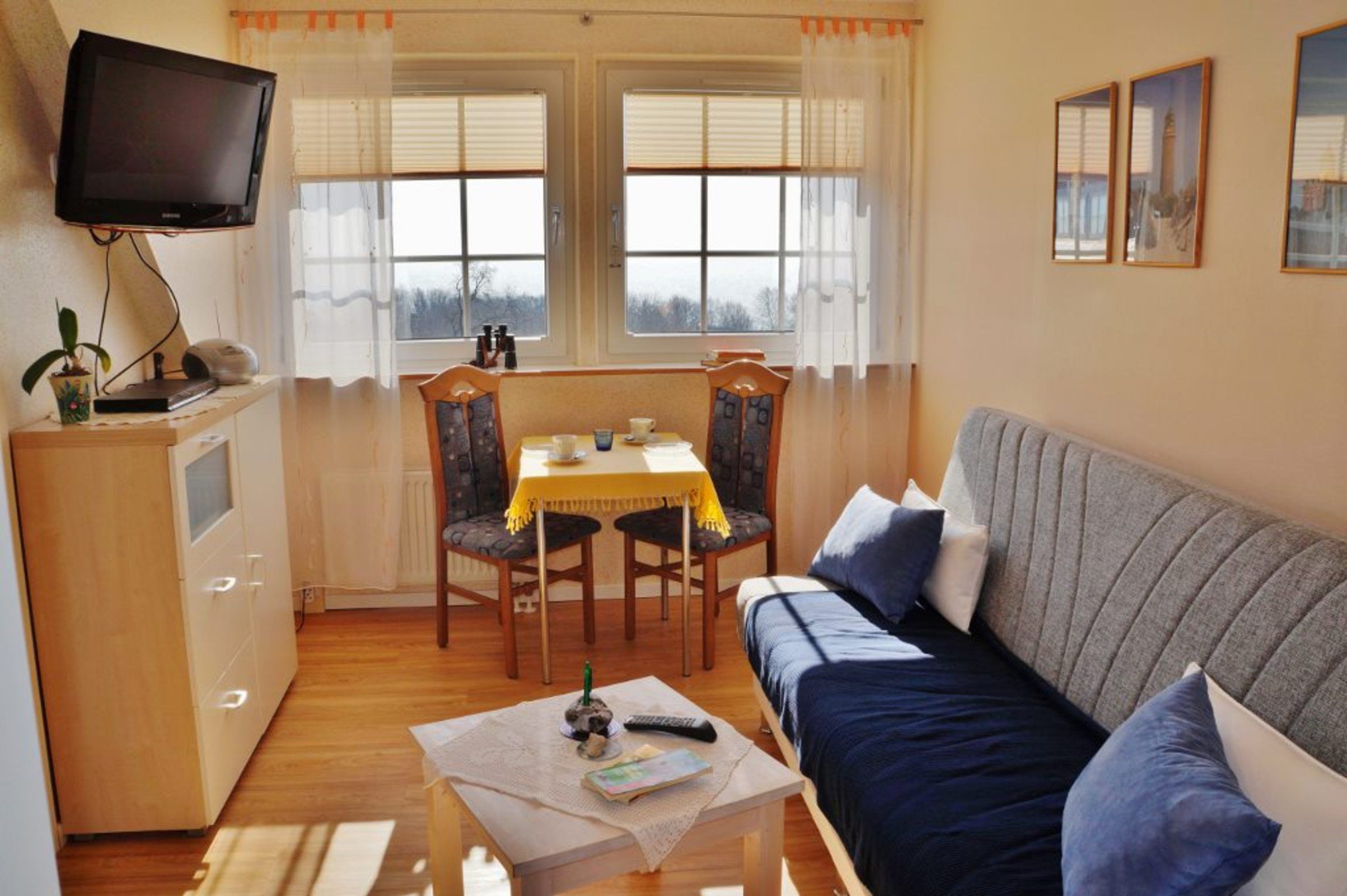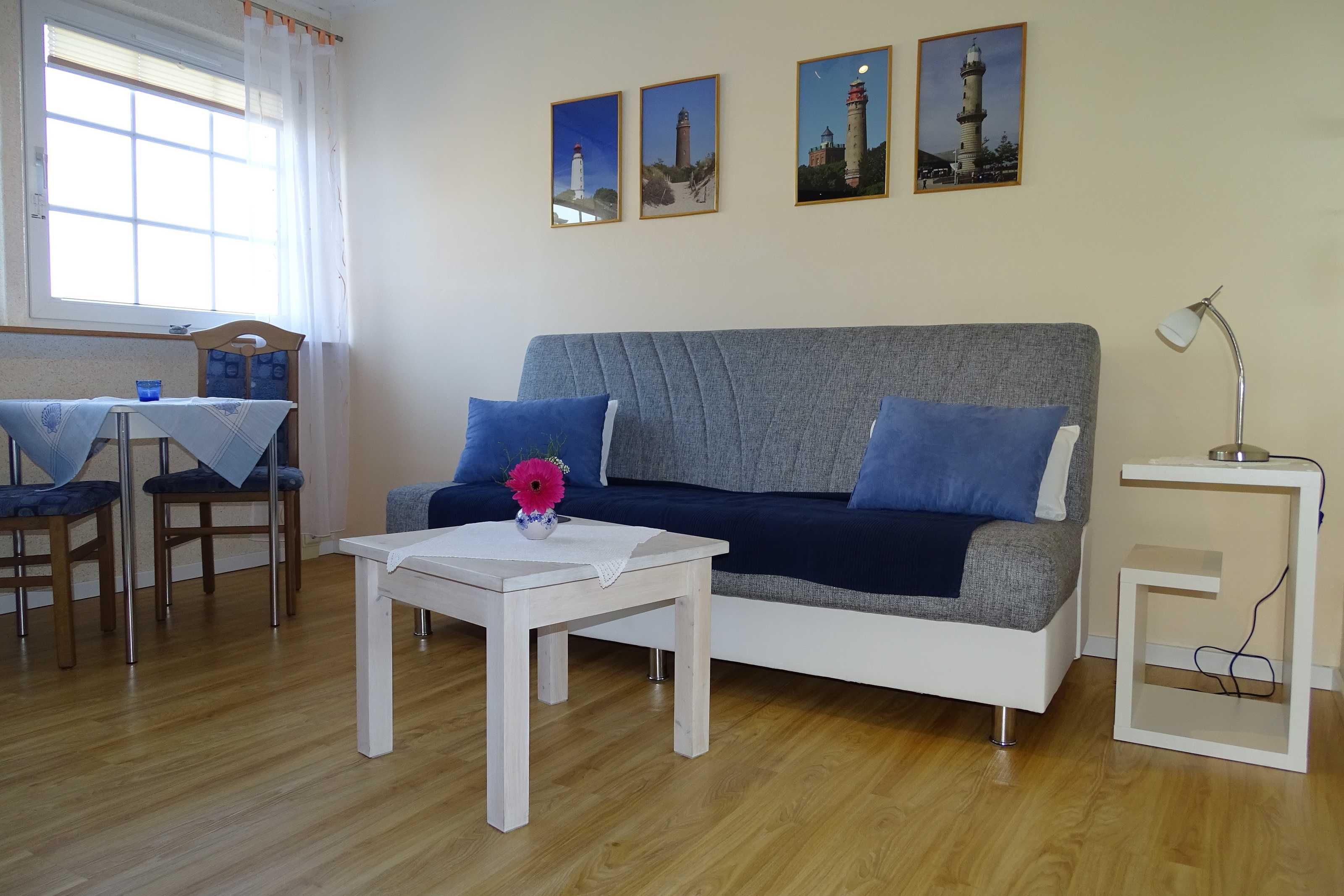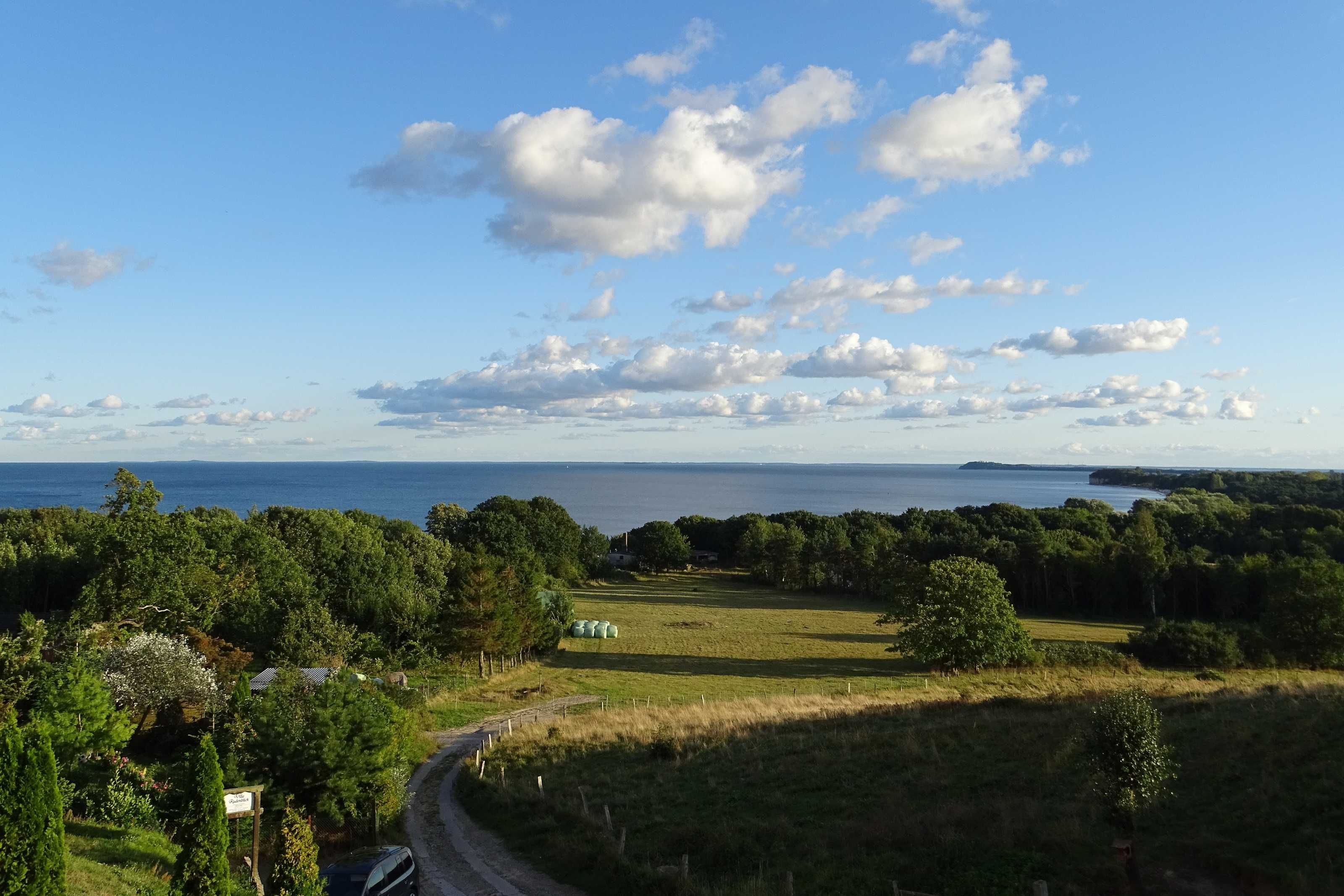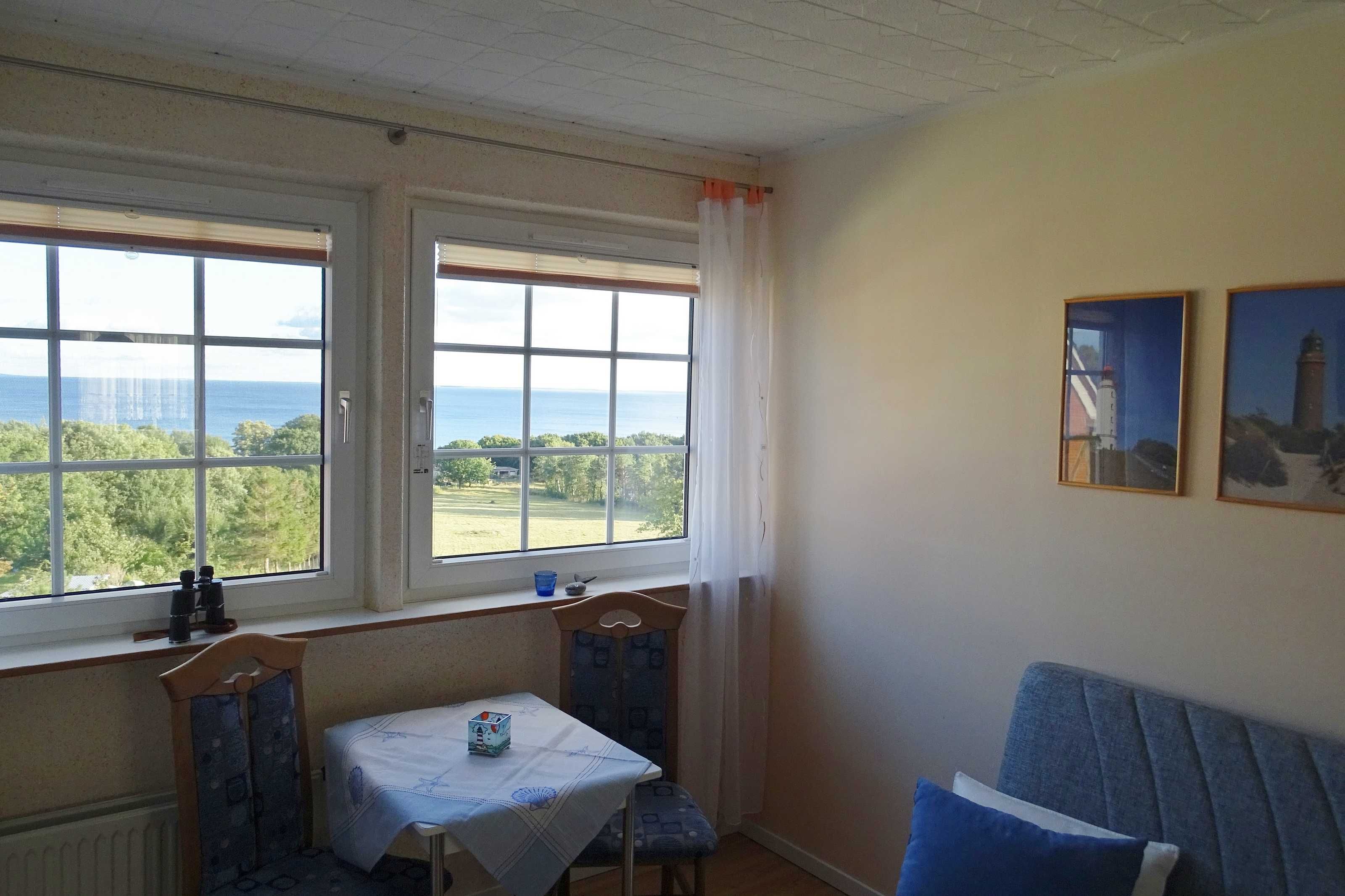 Vom Wohnzimmer haben Sie direkten (unverbauten) Blick auf den Südstrand und das Mönchguter Land.