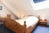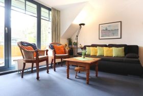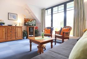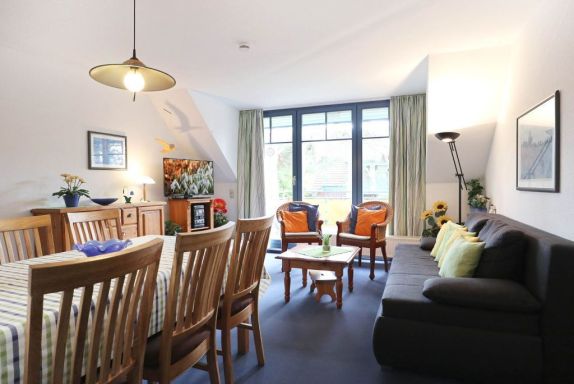 Die 4- Zimmer Maisonetten Ferienwohnung Papillon 11-7 ist ein familienfreundliches Appartement mit einer Wohnfläche von 65qm. Mit bis zu 8 Personen können Sie hier einen günstigen Urlaub verbringen. Wir empfehlen eine max. Belegung mit bis zu 6 Gästen. Der großzügige Wohn-/Essbereich ist mit einem Sofa, ausziehbar als Schlafsofa mit zwei weiteren Schlafgelegenheiten sowie weiteren Sitzmöglichkeiten und einem großen Esstisch möbliert. Ein Fernsehgerät, DVD-Player, Musikanlage und kostenfreie WLAN- Nutzung bieten Abwechslung. Vom Wohnbereich betritt man den saisonal möblierten Süd-Balkon. In der Wohnküche stehen Herd, Backofen, Geschirrspüler sowie Kühlschrank mit integr. Gefrierfach, Kaffeemaschine, Toaster und Wasserkocher bereit. Auch eine Mikrowelle ist vorhanden. Ebenso befinden sich auf dieser Wohnebene ein separates Schlafzimmer mit zwei Einzelbetten, und Kleiderschrank. Das Duschbad ist mit zwei Waschtischen und WC ausgestattet. Über eine Treppe im Wohnbereich gelangen Sie in die obere Ebene mit zwei weiteren Schlafzimmern. Eines mit Doppelbett 1,60m mal 2,00m und Kleiderschrank. Das dritte Schlafzimmer mit Doppelbett 1,80m mal 2,00m, Kleiderschrank und Fernseher. Gegen Gebühr können Sie im Untergeschoß des Hauses Waschmaschine und Wäschetrockner nutzen. Ein Kinderhochstuhl sowie ein Kinderreisebett stehen ohne zusätzliche Gebühr bereit. Ihren PKW parken Sie kostenfrei auf dem wohnungseigenen Außenstellplatz. Bitte beachten Sie, dass es sich um eine Nichtraucherwohnung handelt. Haustiere sind nicht gestattet. Zur Ostsee gelangen Sie in nur ca. 250 Meter.