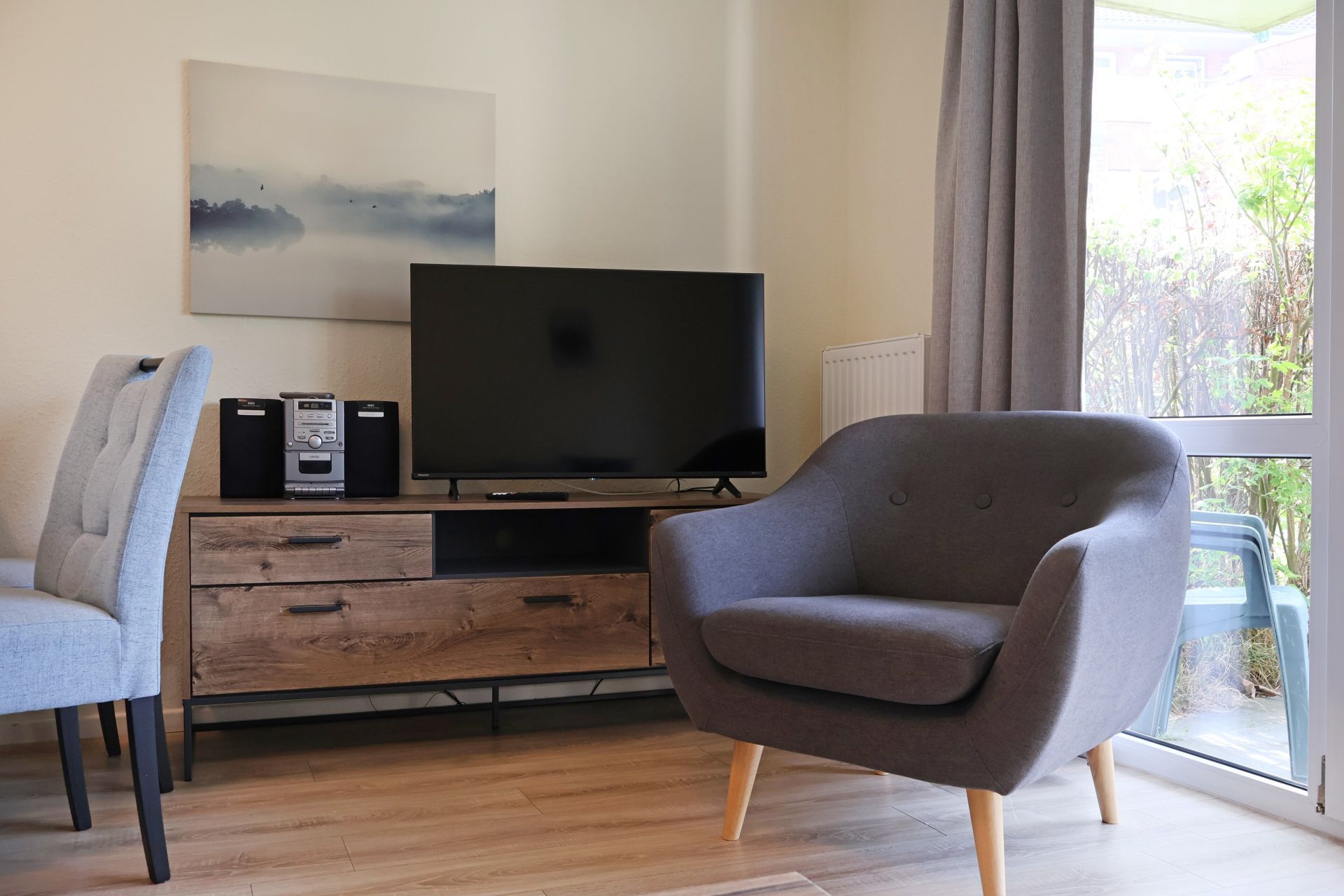 Das Nichtraucherappartement liegt nur 180 Meter zum Strand und besitzt eine Wohnfläche von 54qm und ist mit bis zu 3 Personen buchbar. Es ist gemütlich eingerichtet und Sie können auch auf der ? saisonabhängig möblierten - Terrasse entspannen. Der freundliche Wohn-Essbereich lädt zum verweilen ein und ist mit einem Sofa, Sesseln, Kommode, Esstisch, Fernseher sowie Musikanlage eingerichtet. Die integrierte, offene Küchenzeile verfügt über einen Herd mit Backofen, Mikrowelle, Kaffeemaschine usw. Das separate Schlafzimmer lädt mit Doppelbett und Kleiderschrank zu ruhigen Nächten ein. Zur Wohnung gehört ein zweites etwas kleineres, Schlafzimmer mit Einzelbett. Ebenso befindet sich ein Duschbad in der Ferienwohnung. Für kleine Kinder steht ein Kinderhochstuhl bereit. Ihren PKW parken Sie kostenfrei am Haus und auch ein Fahrradabstellraum ist zugehörig. Einkaufsmöglichkeiten sind fußläufig gut erreichbar. Den Ortskern von Boltenhagen erreichen Sie in ca. 10 Gehminuten. Bitte beachten Sie, dass Rauchen nicht gestattet ist. Haustiere sind gestattet.