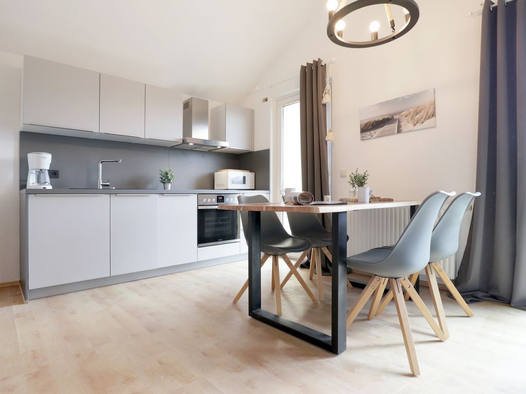 Die modern eingerichtete Dachgeschosswohnung mit Balkon in östliche Richtung ist eine 53qm geräumige 3- Zimmer Ferienwohnung mit 2 separaten Schlafzimmern. In der familienfreundlichen Unterkunft sind Haustiere herzlich willkommen. In nur 180 Meter gelangen Sie an die Ostsee. Das attraktive Domizil ist für bis zu 5 Personen geeignet. Der Fußbodenbelag ist mit Laminat verlegt. Hochwertig empfängt der schicke Wohn-/Essbereich mit einem bequemen Sofa, Esstisch, Vitrine, Flachbild- Fernseher, Musikanlage, Wlan kostenfrei. Die in den Wohnraum integrierte Küche ist ausgestattet mit Herd, Backofen, Mikrowelle, Kühlschrank sowie Kaffeemaschine, Geschirr usw. In einem der Schlafzimmer befinden sich ein Doppelbett und Kleiderschrank. Das weitere Schlafzimmer bietet 3 Schlafplätze mit Doppelbett (1,40 x 2,00m), einem zusätzlich ausklappbaren Einzel- Reservebett und Kinderspieltisch. Ein gepflegtes Duschbad ist vorhanden. Wir empfehlen die Belegung mit max. 4 Personen. Rauchen innerhalb der Wohnung ist nicht gestattet. Haustiere sind gegen Gebühr 5,00 Euro pro Tag) gestattet. Ihren PKW parken Sie kostenfrei am Haus. Einkaufsmöglichkeiten erreichen Sie in wenigen Gehminuten.