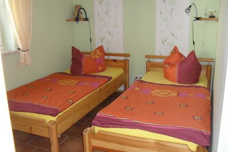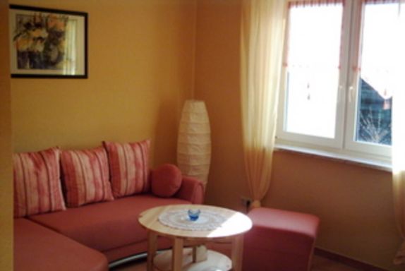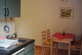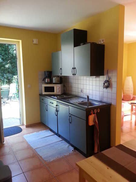 Die Ferienwohnung besteht aus einem Wohnraum mit Sitzgruppe (ausziehbare Couch für Aufbettung), TV, Radio und integrierter Küchenzeile mit Essecke. Schlafraum mit zwei Einzelbetten, Babybett möglich. Bad mit Dusche und WC. Fußbodenheizung in der gesamten Wohnung. Elektrische Rolläden zur Verdunklung in allen Räumen.Terrasse mit Sitzmöbeln und Grillmöglichkeit. Parkplatz für den PKW am Haus.