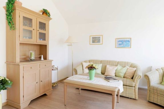 Die 3-Zimmer Dachgeschoss Ferienwohnung ?Godewind 32? mit Balkon in Süd-/West Richtung, bietet eine Wohnfläche von 55qm und ist mit bis zu 4 Personen buchbar. In dem ruhig gelegenen Apartment verbringen Sie einen naturnahen Urlaub und wohnen gleichzeitig zentral. Im freundlich eingerichteten Wohn-/Essbereich empfängt Sie eine Couch (ausziehbar für einen Schlafplatz) mit Sessel, ein Fernsehgerät, Musikanlage und ein Esstisch. Die in den Wohnbereich integrierte Küchenzeile ist ausgestattet mit Herd, Backofen, Kühlschrank, Mikrowelle, Geschirrspüler, Kaffeemaschine sowie Töpfe und Geschirr uvm. Für entspannte Nächte sorgen zwei separate Schlafzimmer 1x Doppelbett und Kleiderschrank, 1x Einzelbett und Schreibtisch. Zugehörig ist ein Duschbad. Für Ihren PKW steht ein kostenfreier Stellplatz zur Verfügung. Den Strand erreichen Sie in ca. 5 Gehminuten. Haustiere sind in der Ferienwohnung nicht gestattet. Es handelt ich um ein Angebot für Nichtraucher.