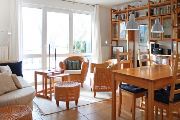 In der Ferienwohnung - Godewind 13- genießen Sie einen wunderbaren Aufenthalt nur 180 Meter zum feinsandigen Ostseestrand. Die charmant eingerichtete Erdgeschoss Wohnung bietet eine Wohnfläche von 55qm sowie eine sonnige Terrasse mit Blick auf die Pferdewiesen. Behaglich und geschmackvoll empfängt Sie der helle Wohnbereich mit einem bequemen Sofa, Rattansessel, Flachbildfernseher, Musikanlage, DVD, Regalwände, Esstisch, sowie einer offenen Küche, welche in den Wohnbereich integriert ist. Zur Zubereitung Ihrer Urlaubsmahlzeiten ist in der Küchenzeile alles vorhanden, so auch z.B. Ceranfeldherd, Backofen, Mikrowelle, Dunstabzug, Kühlschrank, Kaffeemaschine, Toaster, Töpfe und Geschirr usw. Zwei separate Schlafzimmer bieten Schlafmöglichkeiten für bis zu 4 Personen.