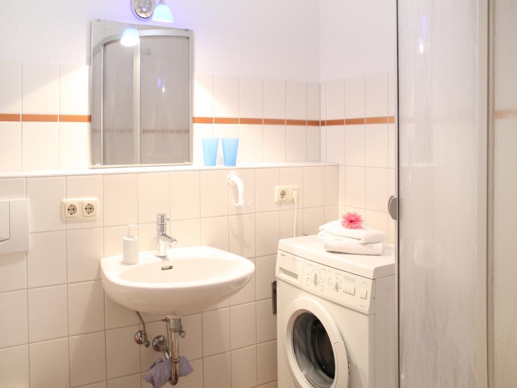 Das 1. Schlafzimmer ist geräumig und mit einem Doppelbett und Kleiderschrank ausgestattet. Das 2. Schlafzimmer dient sozusagen als Kinder-/Gästezimmer mit Etagenbett. Im zugehörigen Duschbad können sie auch eine Waschmaschine nutzen. Für Ihren PKW ist ein Außenstellplatz reserviert. Abstellmöglichkeiten für mitgebrachte Fahrräder sind vorhanden. Einkaufsmöglichkeiten befinden sich nur 100 Meter von der Anlage Godewind.